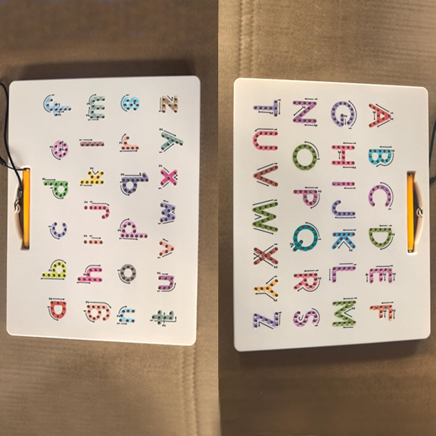 Gioco Educativo Coinvolgente: Unisce l'uso di magneti a sfide di ricalco, stimolando un gioco interattivo che rende piacevole l'apprendimento e ispira curiosità nelle giovani menti. Doppia Faccia: Lavagna magnetica alfabeto con superficie scrivibile su entrambi i lati per massimizzare la pratica di scrittura e garantire l'apprendimento della formazione delle lettere. La penna magnetica rinforza la memoria muscolare durante l'uso, rendendo l'apprendimento coinvolgente ed efficace per i bambini. Design Intelligente Penna: La penna magnetica si fissa saldamente alla lavagna, promuove la pratica assicurando facile riporlo e accesso per un allenamento di apprendimento continuo. Regalo per Progressi:Fonde divertimento e funzionalità per incoraggiare la crescita cognitiva, eccellente opzione regalo per bambini che progrediscono nelle tappe di apprendimento. Struttura : Costruito con materiali resistenti all'usura e bordi arrotondati per proteggere le mani, garantendo che la lavagna magnetica conservi la sua forma originale durante manipolazioni frequenti.