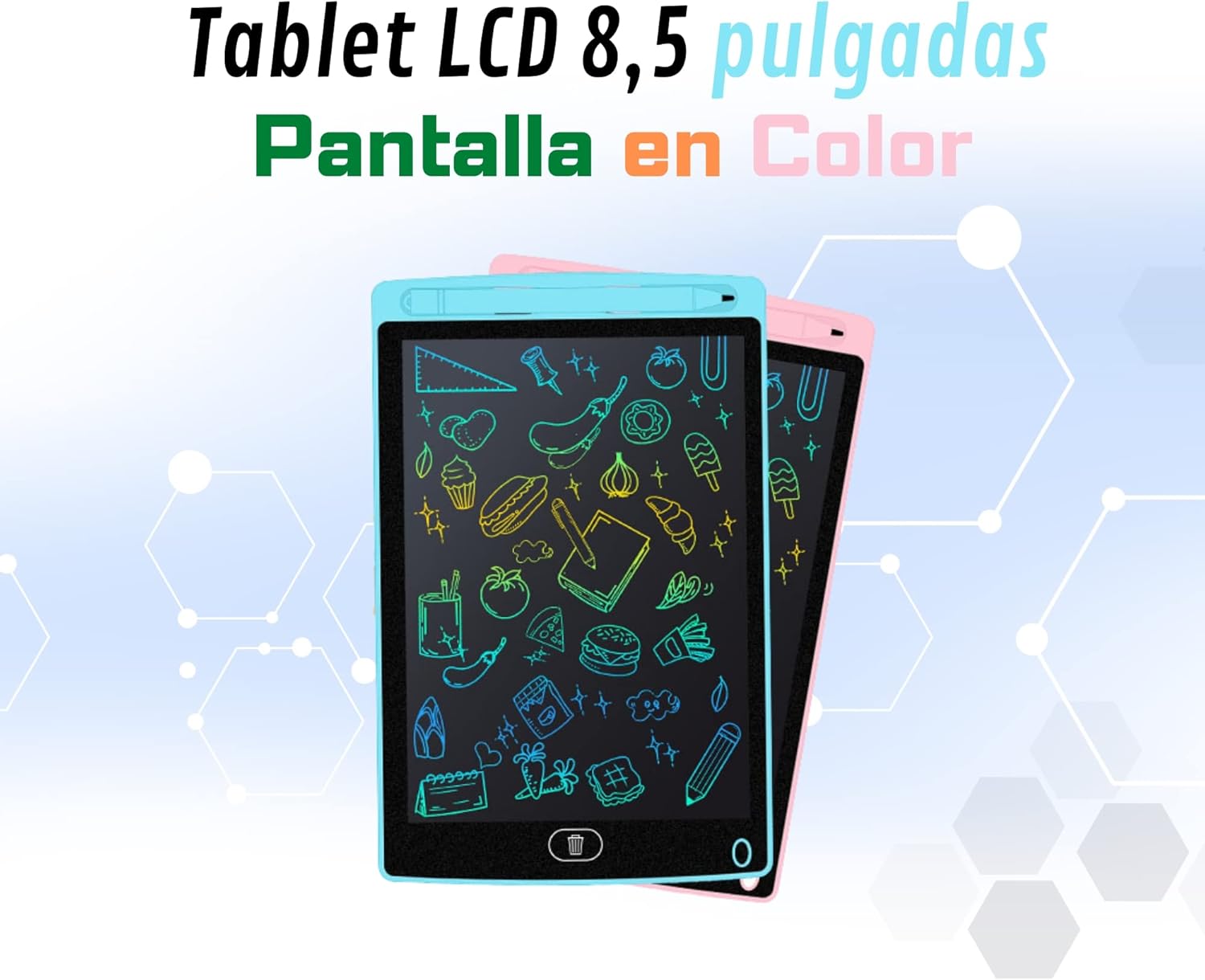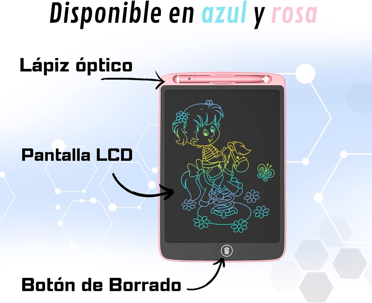 ✅ Tablet per ragazzi e ragazze disponibile in blu e rosa: il nostro tablet è ideale per sviluppare la loro immaginazione disegnando e scrivendo ✅ Schermo LCD a colori di alta qualità: la nostra lavagna magica è un giocattolo educativo che li aiuterà a migliorare la loro calligrafia, facendoli divertire per ore. ✅ Tablet per scrivere e disegnare da 8,5 pollici: il nostro tablet per bambini ha le dimensioni perfette da portare ovunque. I tuoi bambini si divertiranno viaggiando in macchina, in treno o in aereo. ✅ Batteria inclusa: il nostro prodotto include una batteria che dura due anni. In tutta sicurezza, utilizza le stesse batterie dei giocattoli dei tuoi bambini! ✅ Ideale per bambini e bambine dai 3 anni in su. È molto facile da usare per i più piccoli: prendi lo stilo e inizia a disegnare o scrivere. Esercitati anche in matematica! ✅ Pulsante Elimina e Pulsante Anti-Eliminazione: quando si stancano di riempire lo schermo di disegni, possono eliminare ciò che hanno fatto. E se vuoi impedirne la cancellazione, hai un pulsante anti-cancellazione. ✅ Ecologico! : Non sprecare carta. I nostri tablet per scrivere e disegnare faranno divertire i tuoi bambini per ore. ✅ Non è necessario installarlo. Tiralo fuori e gioca! Semplice come iniziare a disegnarci senza preoccupazioni e senza dover leggere nessun tipo di manuale