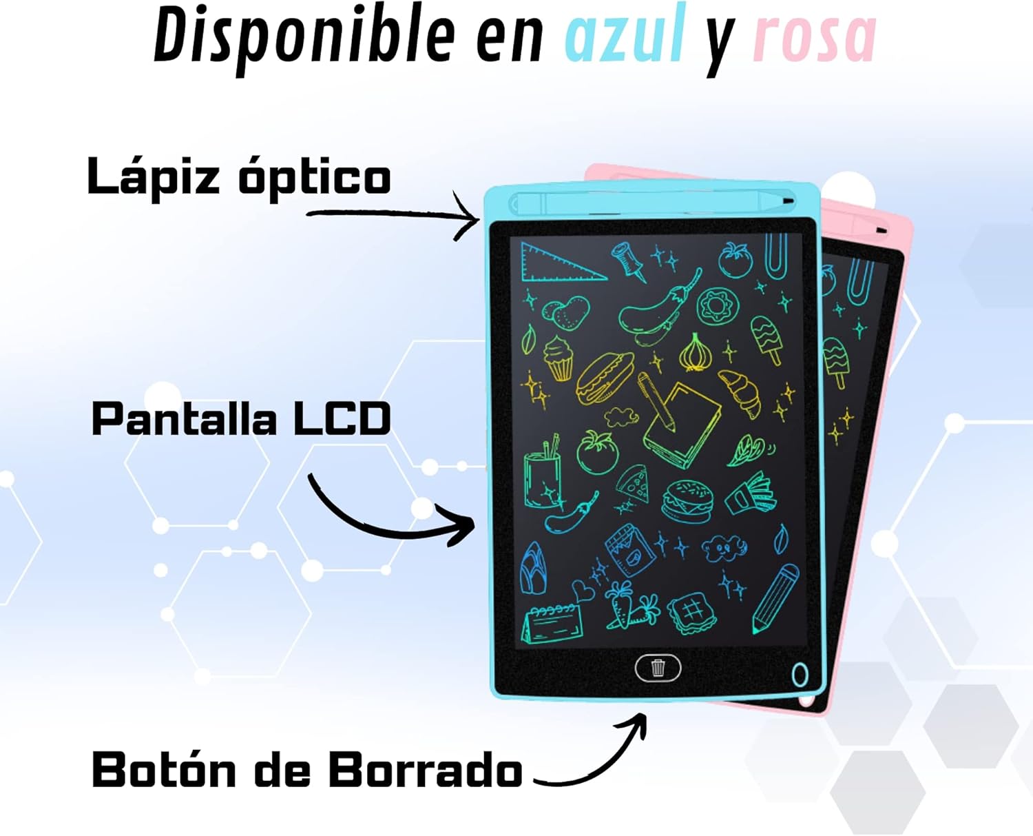 ✅ Tablet per ragazzi e ragazze disponibile in blu e rosa: il nostro tablet è ideale per sviluppare la loro immaginazione disegnando e scrivendo ✅ Schermo LCD a colori di alta qualità: la nostra lavagna magica è un giocattolo educativo che li aiuterà a migliorare la loro calligrafia, facendoli divertire per ore. ✅ Tablet per scrivere e disegnare da 8,5 pollici: il nostro tablet per bambini ha le dimensioni perfette da portare ovunque. I tuoi bambini si divertiranno viaggiando in macchina, in treno o in aereo. ✅ Batteria inclusa: il nostro prodotto include una batteria che dura due anni. In tutta sicurezza, utilizza le stesse batterie dei giocattoli dei tuoi bambini! ✅ Ideale per bambini e bambine dai 3 anni in su. È molto facile da usare per i più piccoli: prendi lo stilo e inizia a disegnare o scrivere. Esercitati anche in matematica! ✅ Pulsante Elimina e Pulsante Anti-Eliminazione: quando si stancano di riempire lo schermo di disegni, possono eliminare ciò che hanno fatto. E se vuoi impedirne la cancellazione, hai un pulsante anti-cancellazione. ✅ Ecologico! : Non sprecare carta. I nostri tablet per scrivere e disegnare faranno divertire i tuoi bambini per ore. ✅ Non è necessario installarlo. Tiralo fuori e gioca! Semplice come iniziare a disegnarci senza preoccupazioni e senza dover leggere nessun tipo di manuale