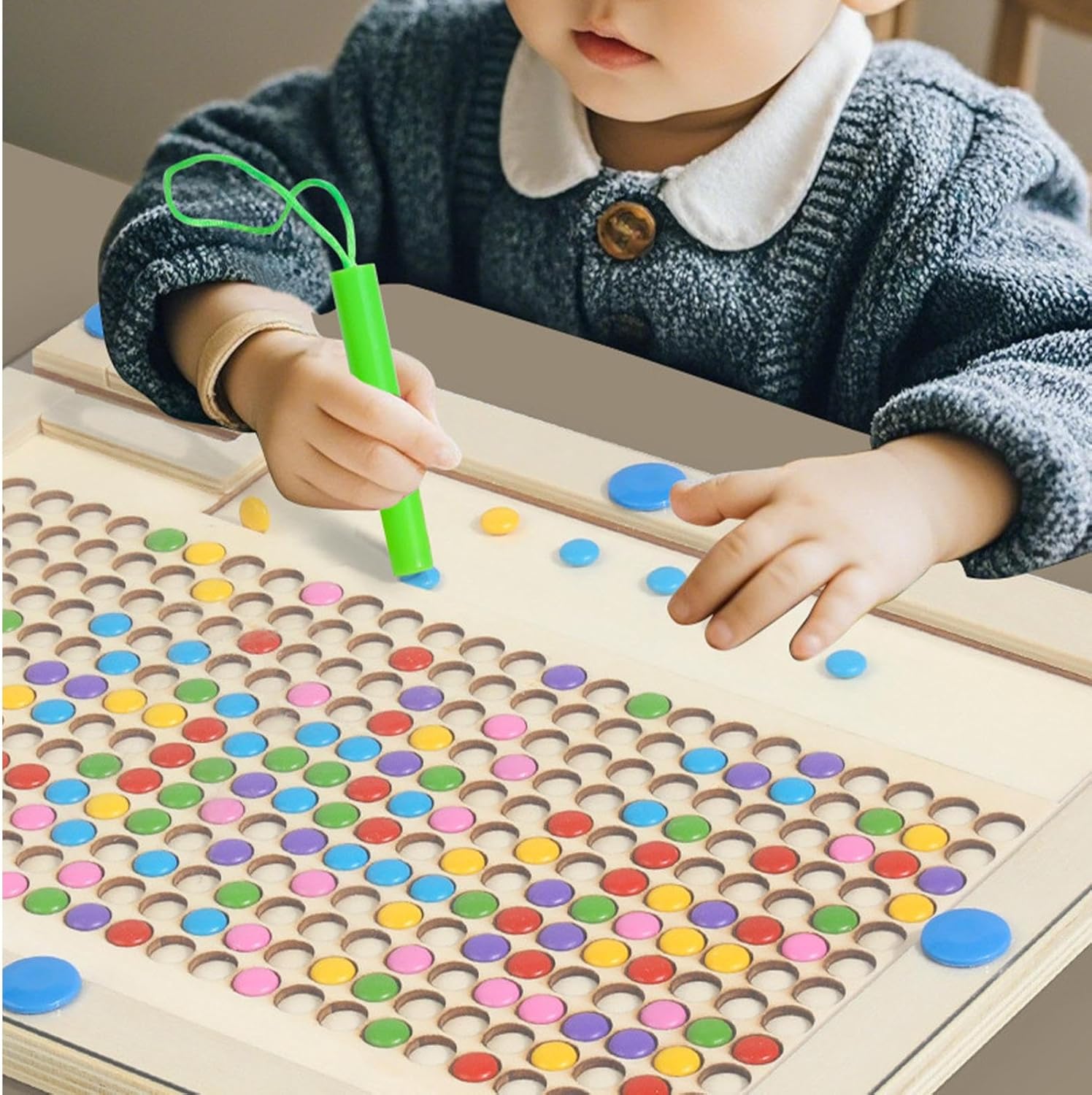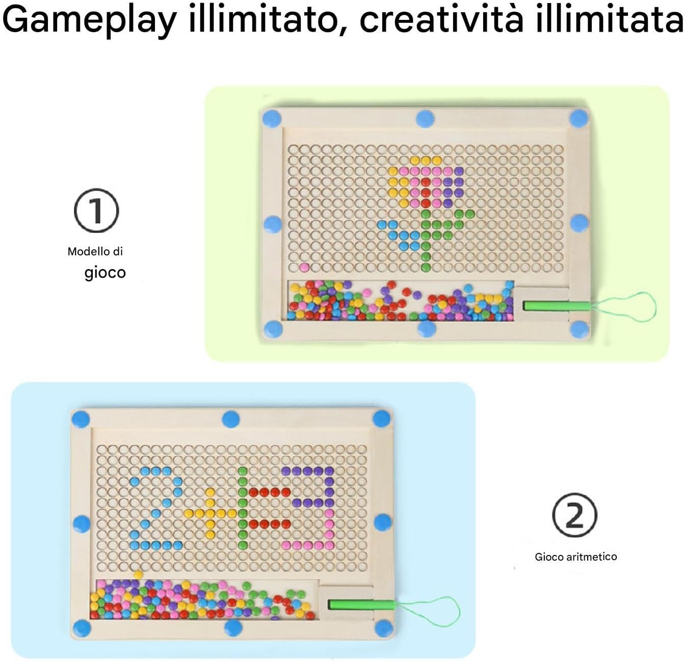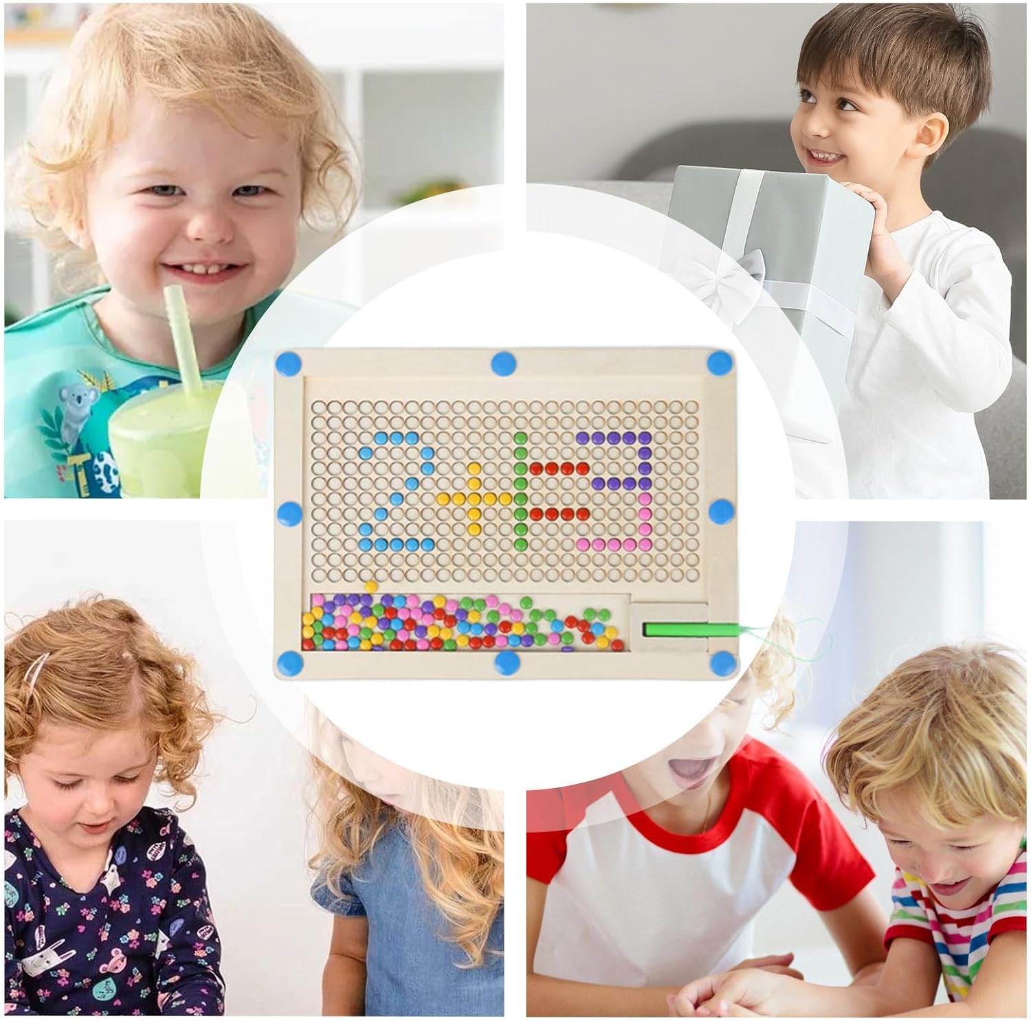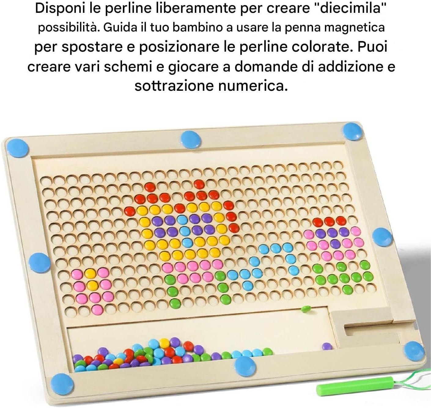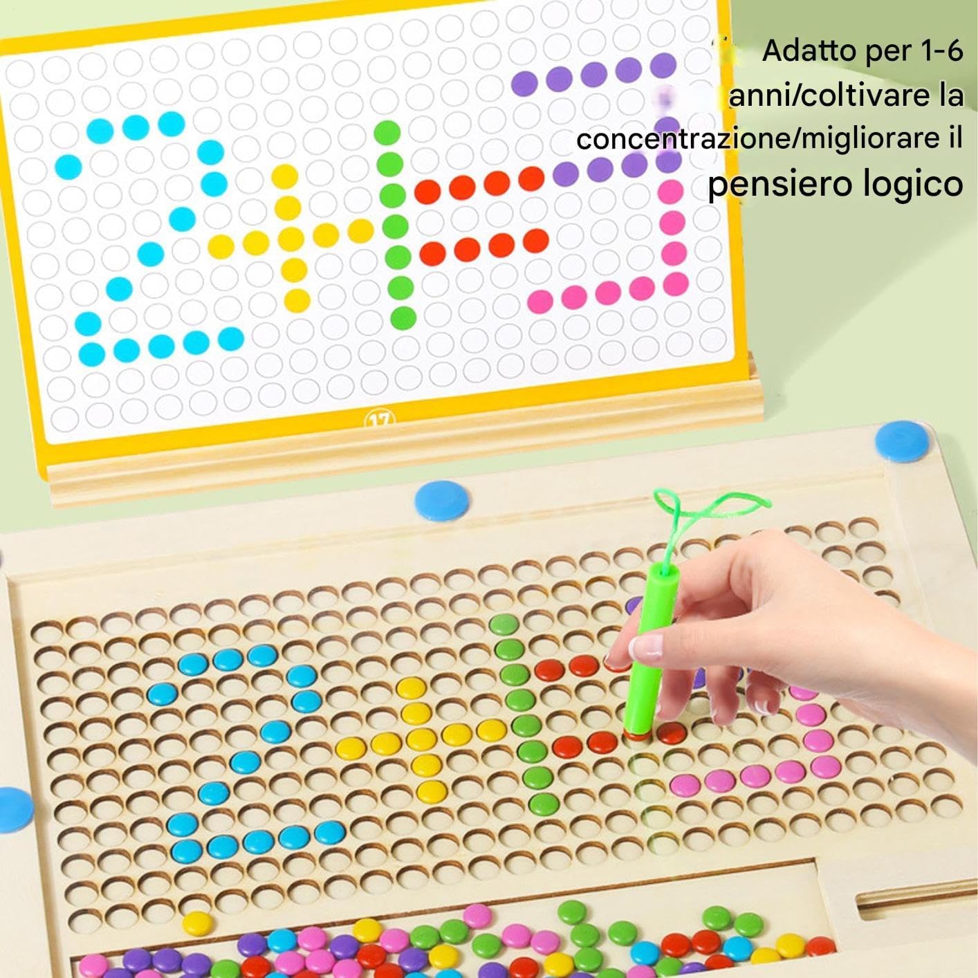 Skill Building Fun: usando la scheda artistica a punta magnetica, i bambini possono sviluppare le loro capacità motorie lorde e fini mentre si spostano ripetutamente fagioli colorati rotondi verso l'alto con la penna magnetica, portando a un miglioramento delle loro capacità di sviluppo complessive Immagina qualsiasi cosa: soddisfa le tue esigenze di pittura e le tue esigenze educative mentre usi questi fagioli magnetici colorati e di motivi puzzle per creare motivi unici con il tuo bambino. Le 10 carte a doppia faccia forniscono una guida a una varietà di design artistici SERVIZIO RESTRABILE: mantieni i tuoi bambini intrattenuti in lunghe viaggi su strada con la scheda artistica a punta magnetica, realizzata in legno robusto con un telaio a doppio strato sigillato per evitare che il danno da lanciare o calpestarlo. I bordi arrotondati offrono un'esperienza senza preoccupazione Combina l'educazione con il divertimento: il Magnetic Dot Art Board è un giocattolo educativo per bambini che non solo migliora la creatività, ma esercita anche abilità motorie. Include carte modello con forme ricche che incoraggiano i bambini a sfidare se stessi e divertirsi nel processo Presente ideale: la scheda artistica Magnetic Dot esercita il coordinamento degli occhi per bambini e le belle capacità motorie attraverso il disegno, il puzzle e i giochi di scrittura. È un regalo educativo e divertente per sviluppare le capacità di colore, modelli e di riconoscimento delle forme