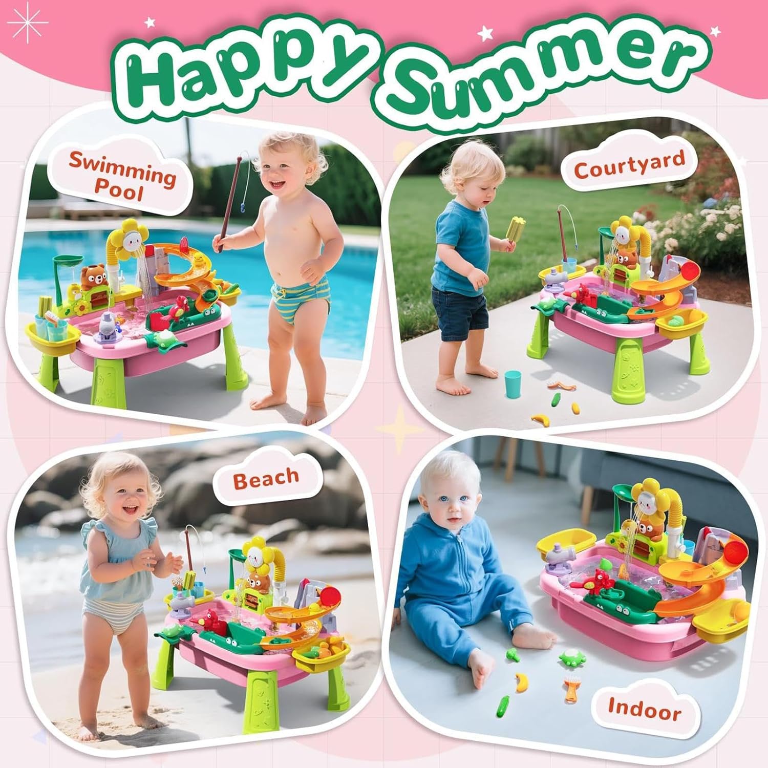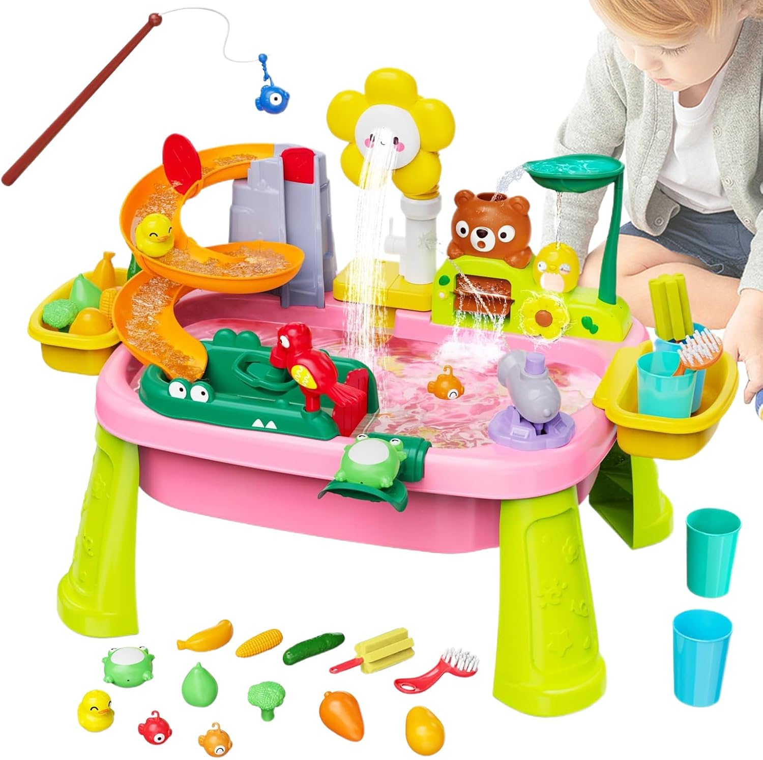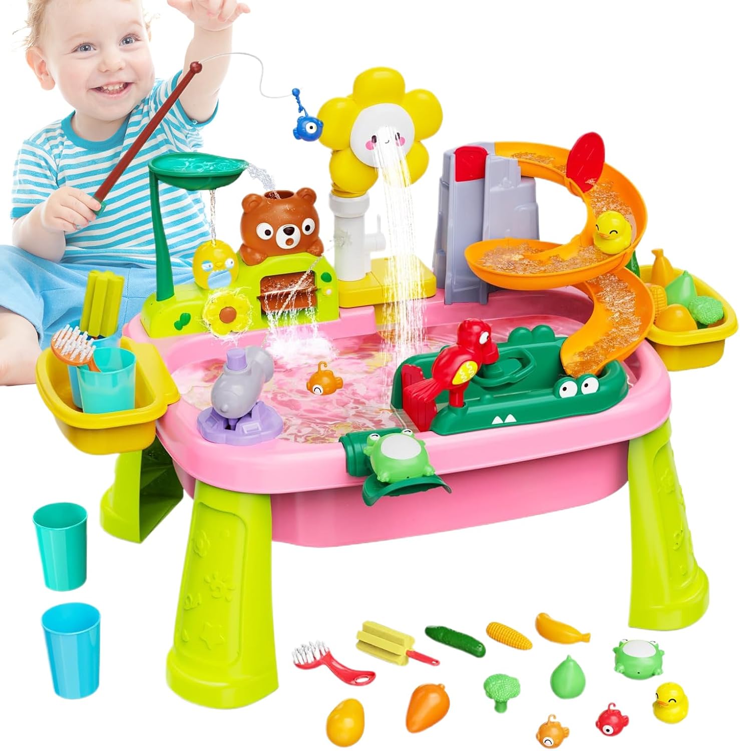 Gioco d'acqua incentrato su STEM: incoraggia il gioco pratico della scienza e l'apprendimento aperto dell'esplorazione, promuove il pensiero logico attraverso attività di scoperta ispirate alla fisica per il collegamento al tavolo d'acqua dei bambini Compagno sandbox coinvolgente: un must per le impostazioni esterne, questo tavolo d'acqua combina il comfort del giardino e della spiaggia con un gioco interattivo per genitori e arricchire l'apprendimento dei bambini attraverso la sandbox creativa e l'esplorazione dell'acqua durante il tempo di gioco Cresce con il tuo bambino naturalmente: questo tavolo d'acqua è regolabile per ospitare bambini in crescita, allo stesso tempo offre una struttura adatta alla posizione che supporta la coordinazione e l'attenzione coinvolgendo, l'apprendimento delle attività senza schermo Diverse opzioni: incoraggia lo sviluppo sensoriale, le capacità motorie fini, attraverso scenari di gioco multiruolo realistici, per i bambini, il divertimento della tavola d'acqua con questo tavolo d'acqua per bambini Design ergonomico: partecipa al design di un rubinetto e alla funzione di simulazione della pioggia, promuove l'apprendimento del risparmio idrico attraverso attività interattive di esplorazione dell'acqua ispirano curiosità e divertimento aumentando la consapevolezza della conservazione delle risorse in modo naturale