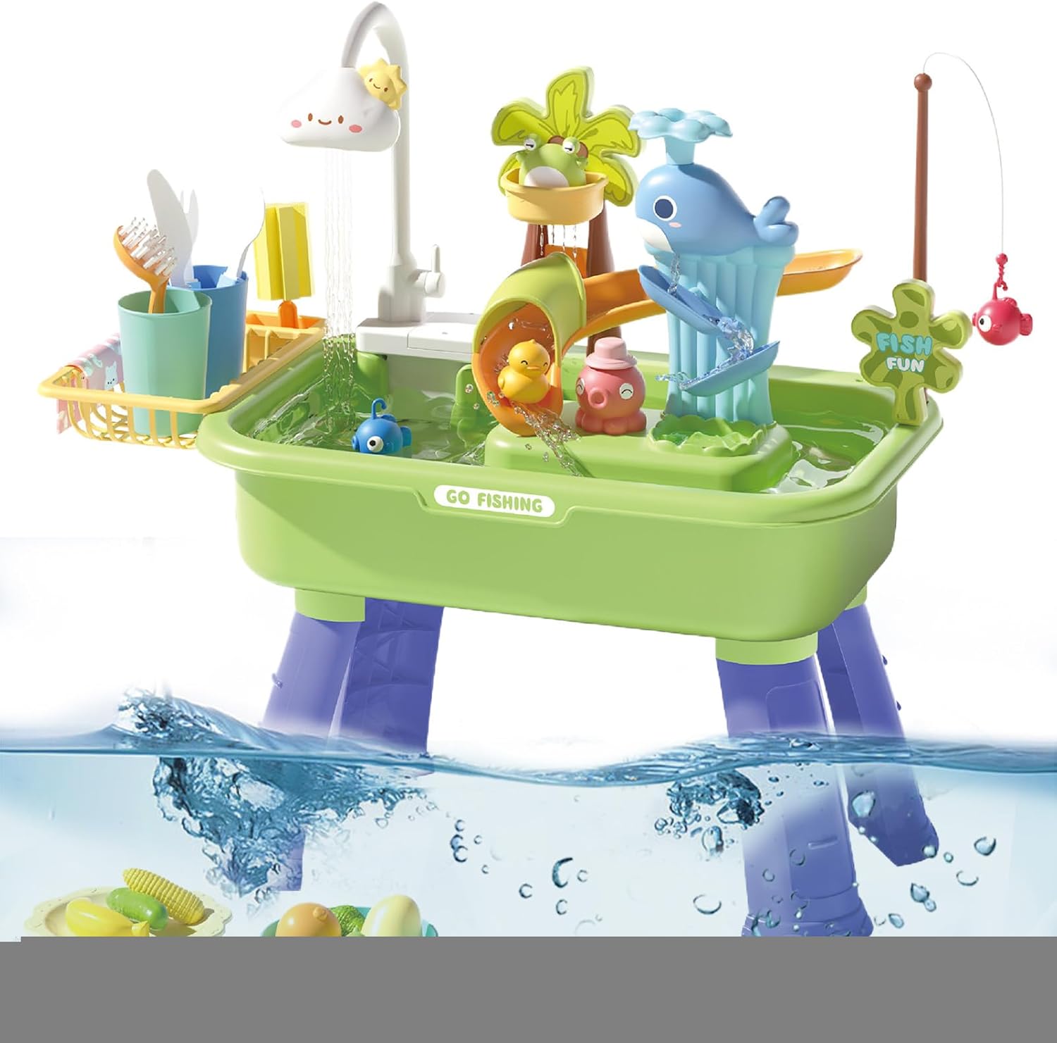 Sicurezza: gli angoli arrotondati e la struttura a prova di bambino garantiscono un gioco sicuro. La robusta guarnizione impermeabile previene le perdite per un divertimento acquatico senza preoccupazioni sul tavolo da gioco per bambini. Esperienza di gioco migliorata: l'innovativo design modulare della piscina con spazio espandibile garantisce una varietà di opzioni di gioco, tra cui il drenaggio intelligente dell'acqua e lo stoccaggio per una pulizia senza sforzo. Promuove la coesione familiare: il divertimento duraturo con accessori completi supporta il legame genitore-figlio e offre modalità interattive di scivolo e gioco di ruolo per i bambini al tavolo da gioco acquatico. Sistema di flusso dinamico: la pompa elettrica garantisce un sistema di circolazione dell'acqua a 360 gradi senza soluzione di continuità. Promuove il gioco intuitivo e stimola scenari creativi di gioco in acqua grazie alla facilità d'uso e al flusso d'acqua continuo. Vivaci esperimenti sull'acqua: supporta lo sviluppo cognitivo attraverso scenari simulati di pesca e lavaggio durante il giro in acqua, l'ambiente di gioco realistico promuove un coinvolgimento duraturo e rende i giocattoli acquatici uno strumento di scoperta per un gioco significativo.