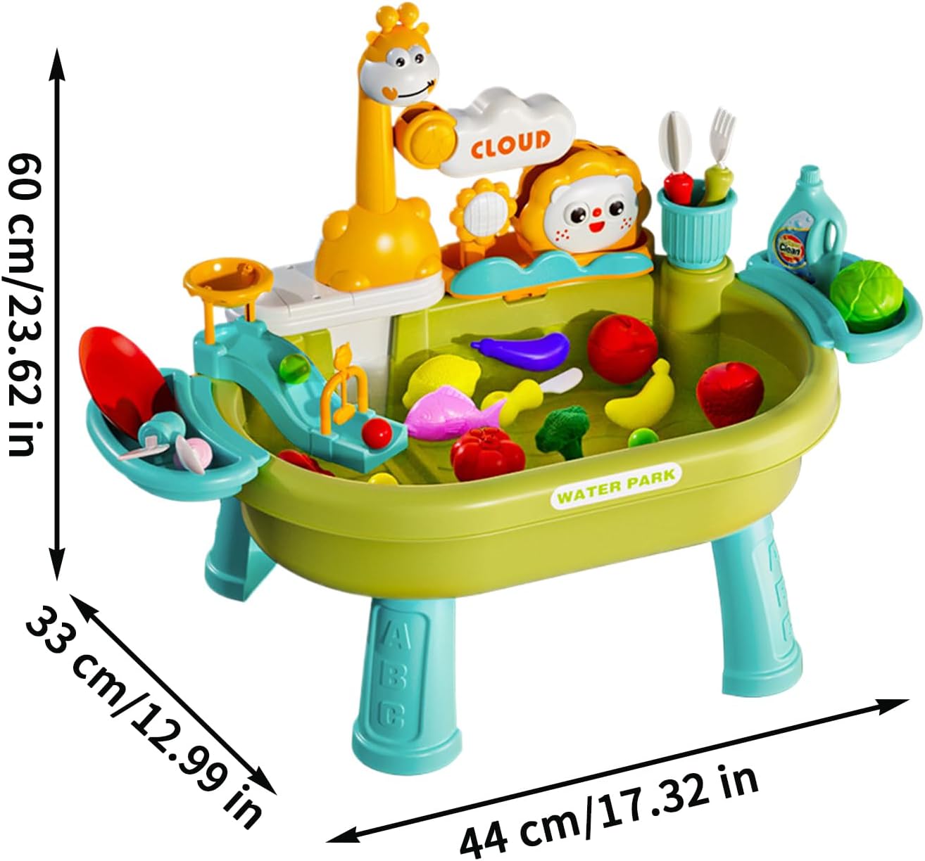 Design apprendimento interattivo:Struttura multifunzionale che riproduce fedelmente scenari acquatici, promuovendo l'apprendimento pratico tramite caratteristiche educative sapientemente integrate Facile Utilizzo: Rubinetto a batteria con design intuitivo che favorisce lo sviluppo motorio, dotato di controlli adatti ai bambini per un utilizzo semplice durante i giochi d'acqua. Giochi Coinvolgenti: Tavolo da acqua unisex con gioco di interattivo, ortaggi e utensili giocattolo per stimolare attività immaginative e divertimento infinito grazie a molteplici Design sicuro: Grazie al robusto materiale ABS, il tavolo attività è progettato per prestazioni e utilizzo sicuro, ponendo la sicurezza infantile al primo posto in ogni aspetto della costruzione Apprendimento Giocoso: Questo tavolo acqua bambini stimola la crescita cognitiva con giochi educativi, insegna scienze e competenze sociali attraverso esplorazione interattiva, sviluppando abilità pratiche durante il gioco in modo naturale e coinvolgente.
