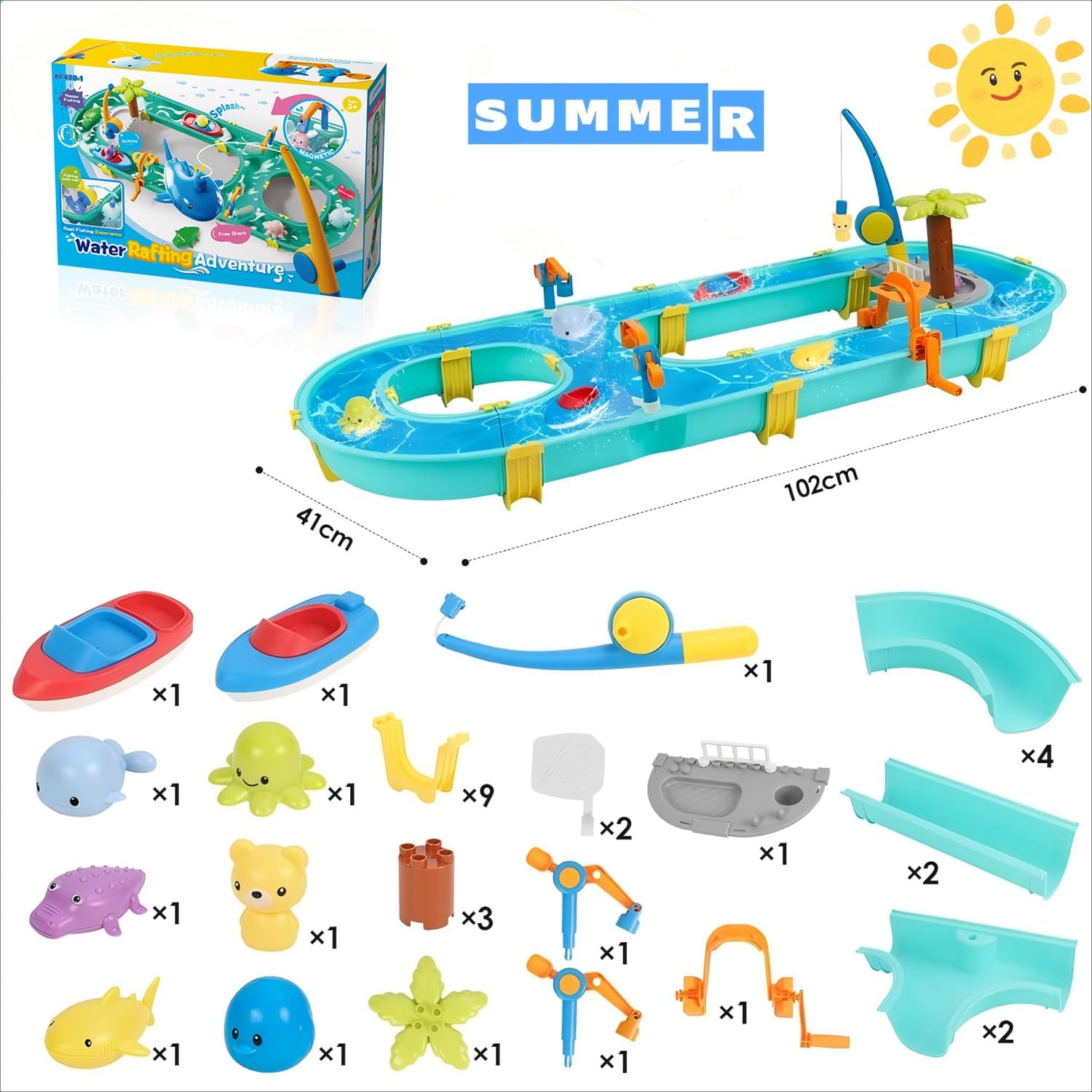 ✅ 【Divertimento acquatico senza fine】 Questo tavolo d'acqua con sabbia trasforma il tuo giardino in un vero parco acquatico in miniatura! I bambini adoreranno creare cascate, barche a vela e costruire canali con questo gioco d'acqua all'aperto completo. Perfetto per stimolare l'immaginazione e offrire ore di rinfrescante gioco estivo. ✅【Imparare giocando】Con 37 accessori inclusi (barche, ponti, figurine), questo gioco acquatico all'aperto per bambini diventa uno strumento educativo. I bambini scoprono i principi di base del flusso dell'acqua, sviluppano le capacità motorie e il pensiero logico divertendosi. ✅ 【Sicurezza e durata】 Realizzato in plastica ABS resistente ai raggi UV e priva di BPA, questo tavolo da gioco per bambini è progettato per resistere alle condizioni esterne. Bordi arrotondati e superfici lisce garantiscono una sicurezza ottimale per le mani dei più piccoli. ✅【Gioco collettivo e sociale】L'ampia superficie di gioco (100x42 cm) di questo tavolo con acqua e sabbia consente a più bambini di giocare insieme. Ideale per sviluppare abilità sociali, condivisione e lavoro di squadra nelle belle giornate soleggiate. ✅ 【Facile da installare e mantenere】 Questa fontana per esterni si installa in pochi minuti senza attrezzi. Il sistema di scarico integrato consente una pulizia rapida. Compatto e leggero, il tavolo può essere facilmente riposto dopo l'uso.