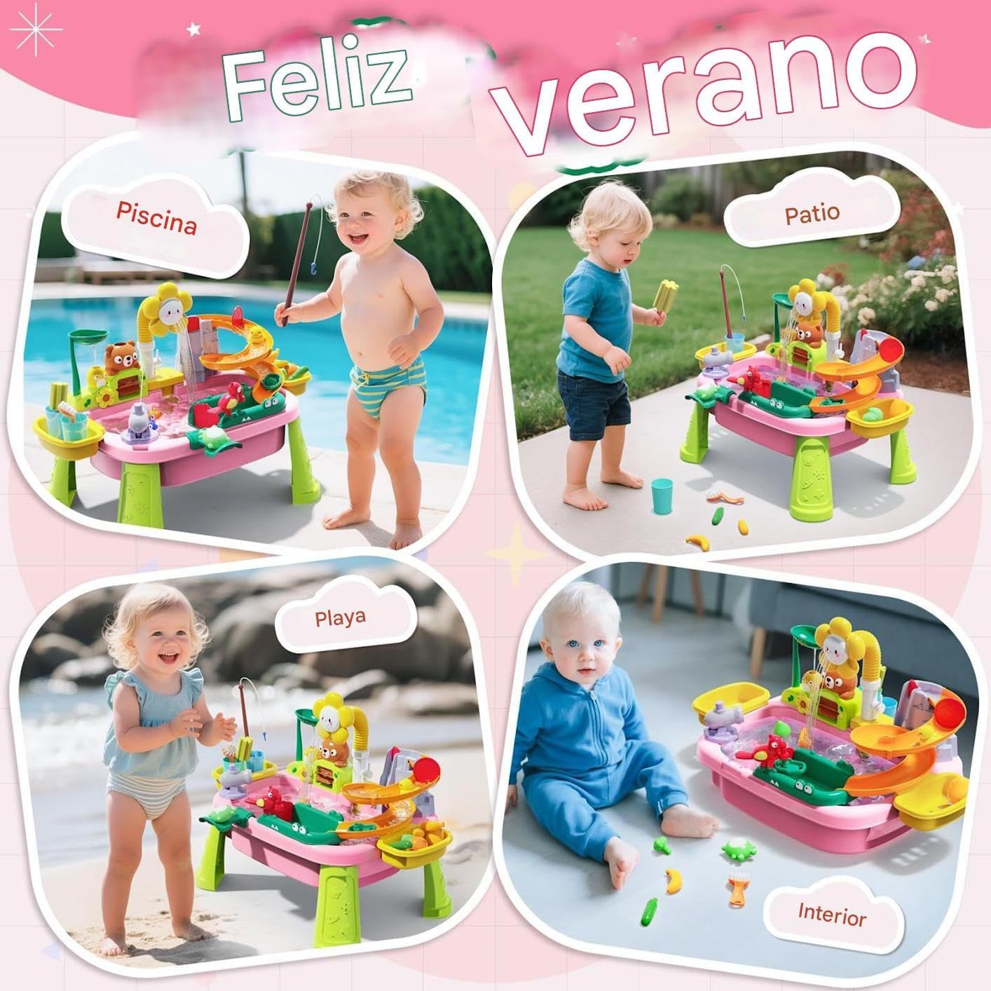 CRESCITA REGOLABILE: Progettato per crescere con il bambino grazie all'altezza regolabile, promuove le capacità motorie e l'attenzione durante il gioco interattivo con attività acquatiche multisensoriali senza schermi. Funzionalità pratica: la falda freatica per bambini con rubinetto rotante e pioggia simulata realistica crea opportunità di apprendimento interattivo e aiuta a comprendere la conservazione dell'acqua in attività di gioco creative e coinvolgenti con effetti multisensoriali. Gioco STEM con l'acqua: incoraggia il gioco scientifico pratico e l'apprendimento esplorativo aperto, stimola il pensiero logico attraverso divertenti attività ispirate ai principi scientifici per il divertimento della falda freatica dei bambini. Interazione familiare: migliora il gioco all'aperto con questo tavolo acquatico, adatto per giardino e spiaggia, supporta il legame familiare e offre ore di divertimento educativo, è un'aggiunta creativa ideale alle avventure sandbox. Versatilità giocosa: incoraggia il gioco fantasioso migliorando al contempo le capacità motorie con attraenti attività multiruolo sul tavolo acquatico per bambini da utilizzare in qualsiasi stanza.
