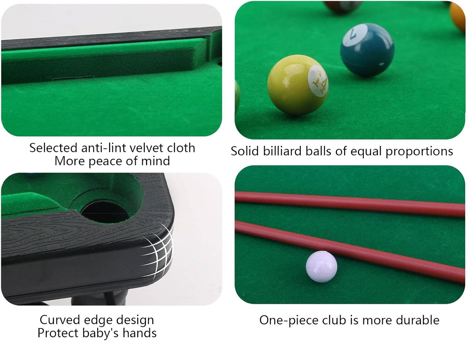 ✿Sviluppo educativo: migliora il tempo di gioco con il nostro mini tavolo da biliardo, progettato per l'istruzione e l'intrattenimento. Aiuta a sviluppare le capacità di pensiero strategico dei bambini migliorando al contempo la coordinazione occhio-mano attraverso un gameplay divertente. ✿Qualità eccellente: il nostro mini tavolo da biliardo è dotato di robuste gambe del tavolo costruite per durare e non si deformeranno facilmente né resisteranno ai danni, grazie ai materiali di alta qualità utilizzati. Goditi le superfici lisce della palla e la durata prolungata, che lo rendono l'aggiunta perfetta alla tua sala giochi. ✿Installazione pratica: con questo mini tavolo da biliardo potrai goderti una facile installazione e una facile conservazione. Montalo senza sforzo e tienilo riposto senza occupare spazio aggiuntivo. ✿Set prezioso: migliora la tua esperienza ricreativa con il nostro mini tavolo da biliardo, dotato di completi come mazze, palline, vassoi per palline e altro ancora. Dì addio alla noia e dai il benvenuto a più intrattenimento. ✿Ispirato al divertimento in famiglia: lascia che i tuoi bambini e i principianti si divertano in piscina con questo mini tavolo. Le grandi dimensioni trasformano qualsiasi stanza in un centro di intrattenimento domestico ed è un regalo meraviglioso.