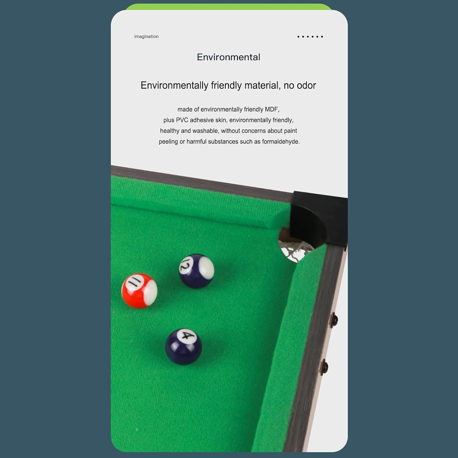 Tavolo da biliardo regolabile: l'altezza regolabile e la struttura robusta di questo tavolo boolico per bambini e la struttura robusta supportano il peso di una persona per garantire un'area giochi stabile e personalizzabile per diverse esigenze e ambienti. Divertimento in famiglia sbloccato: questo tavolo bool per bambini è progettato per i bambini, ideale per giocare con amici o partner e incoraggia i genitori a unirsi e migliorare l'interazione tra genitore e figlio. e più durevole: il tavolo bool per bambini progettato con MDF e PVC è una scelta affidabile per un divertimento senza fine. Goditi un uso a lungo termine e tranquillità con il suo design robusto e resistente ai danni. Esperienza di biliardo coinvolgente: porta ai tuoi bambini un sacco di divertimento con il nostro tavolo Bool per bambini. Con esperienza professionale, offriamo palle da biliardo solide proporzionate e suggerimenti integrati e creiamo una vera esperienza di impatto per i tuoi bambini. Ampio utilizzo: trasforma la tua casa con questo tavolo Bool per bambini che funge da centro familiare ideale. Usalo per l'intrattenimento, come sala studio o qualsiasi altra destinazione che desideri.
