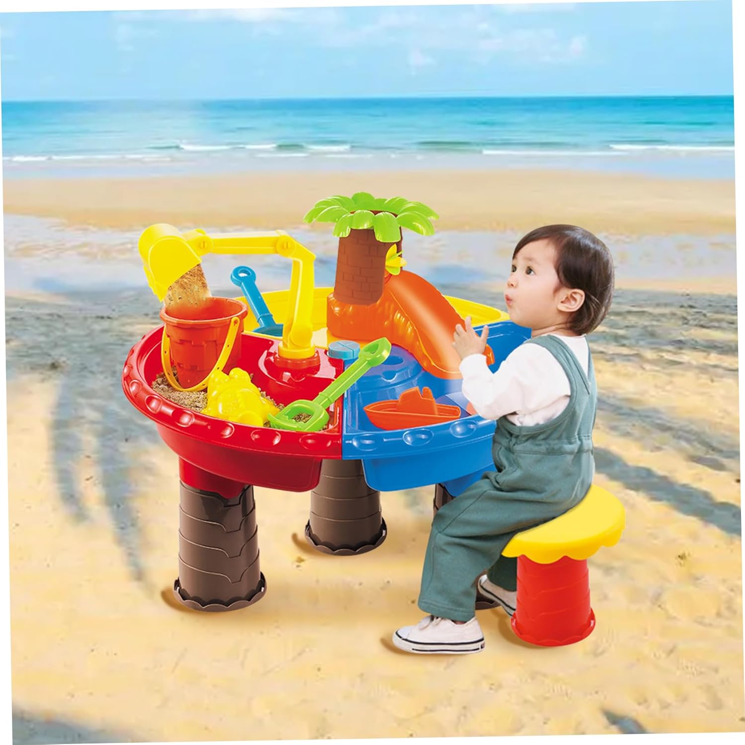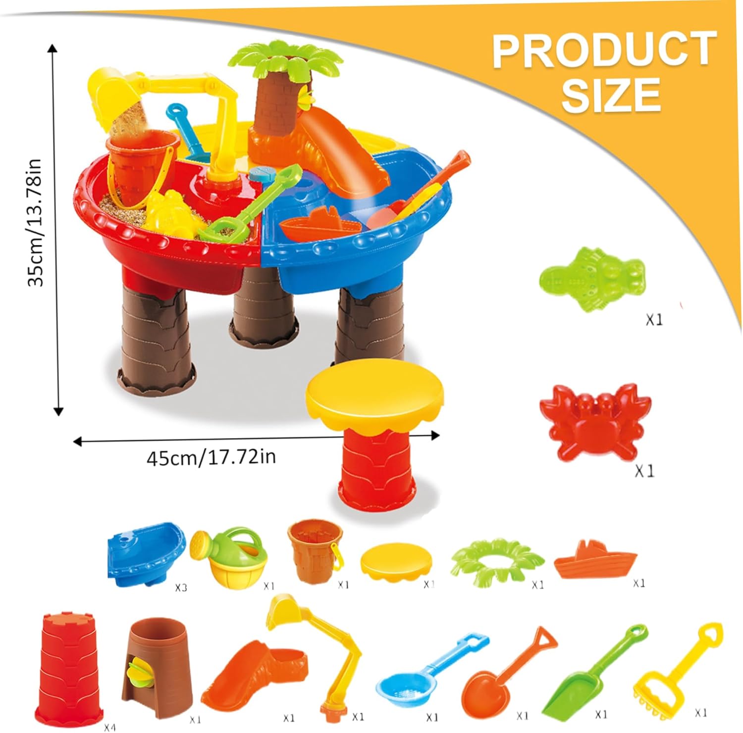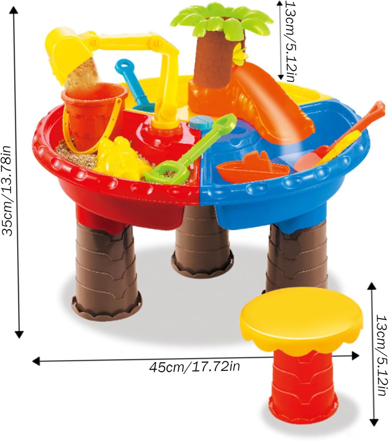 Playset completo incluso: il set ha un kit di accessori dinamico. Ciò include un affascinante imbuto con delfino, un mulino a vento ad acqua e stampi di sabbia unici, che promuovono la creatività, la coordinazione occhio-mano e le capacità motorie nei bambini piccoli. Ottimo per uso interno ed esterno: le dimensioni compatte e il design versatile rendono questa sabbiera e falda freatica perfetta per varie impostazioni. Che si tratti di un'avventura in giardino, di una giornata in spiaggia o di un gioco sensoriale al chiuso, si adatta a ogni scenario di gioco. Regalo educativo e divertente: semplice da giocare, questo tavolo di sabbia funge da strumento educativo. I bambini possono imparare i principi fisici di base come l'acqua e setacciare la sabbia mentre si impegnano in giochi fantasiosi. È una scelta regalo premurosa per compleanni, vacanze o qualsiasi occasione speciale, offrendo gioia infinita e prezioso tempo all'aperto lontano dagli schermi. Opzioni di gioco versatili: con 4 sezioni di gioco dedicate, comprese aree per acqua, sabbia, neve o terreno, questa tavola da 17,7x13,8 incoraggia diverse esplorazioni tattili e favorisce una profonda connessione con gli elementi della natura. Costruzione sicura e affidabile: realizzato con materiali ABS di qualità, il tavolo è progettato pensando alla sicurezza dei bambini. La sua struttura robusta garantisce durata durante il gioco, mentre i tappi di scarico non antiestetici semplificano la pulizia e la manutenzione senza problemi.