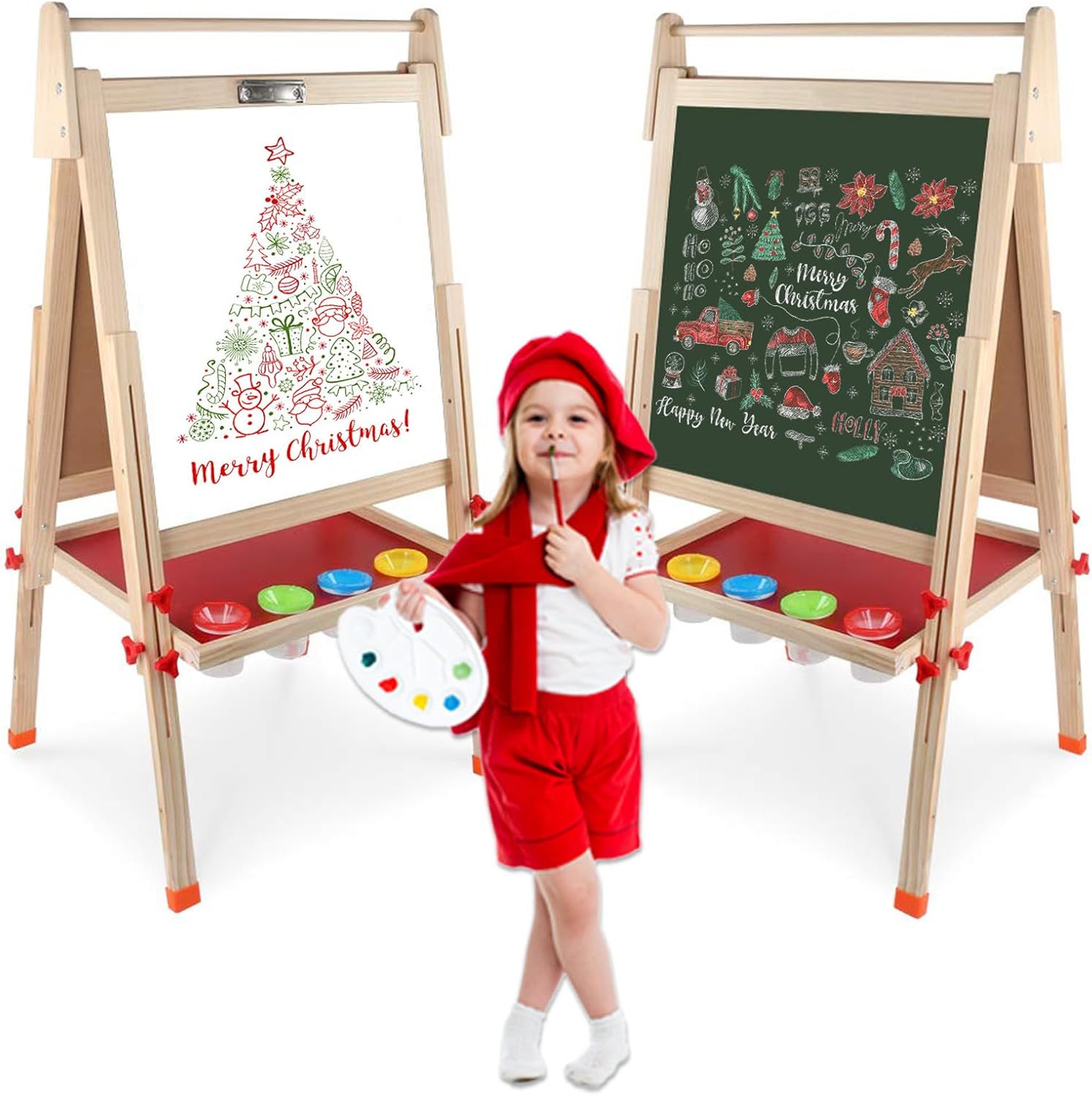 Promuove l'immaginazione: il nostro tavolo da disegno double face di prima qualità vanta una superficie di disegno a lavagna nera su un lato e una superficie di disegno a lavagna sull'altro, rendendo facile per i bambini realizzare graffiti, scrivere o dipingere Massimizza lo spazio di archiviazione: il nostro tavolo da disegno fronte-retro vanta una funzione pieghevole appositamente progettata, perfetta per coloro che desiderano risparmiare spazio! Dopo averlo utilizzato, basta piegarlo e riporlo in modo compatto Design ergonomico per la crescita: man mano che il bambino cresce, l'altezza del tavolo da disegno può essere regolata liberamente per garantire una postura comoda durante il disegno, prevenendo efficacemente la gobba e accompagnandolo in ogni fase della pittura Comfort creativo migliorato: dotato di una comoda sedia antiscivolo progettata per la sicurezza dei bambini, questo tavolo da disegno è realizzato con materiali ecologici e supporta una forte capacità di carico, garantendo un'esperienza di disegno pratica e rilassata Protezione della salute respiratoria: caratterizzato da un design a gesso senza polvere, garantisce che i bambini respirino facilmente evitando il tradizionale inquinamento da polvere di gesso con questo giocattolo da lavagna nero adatto alla casa
