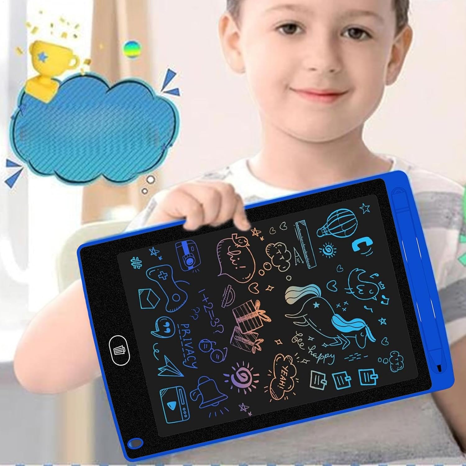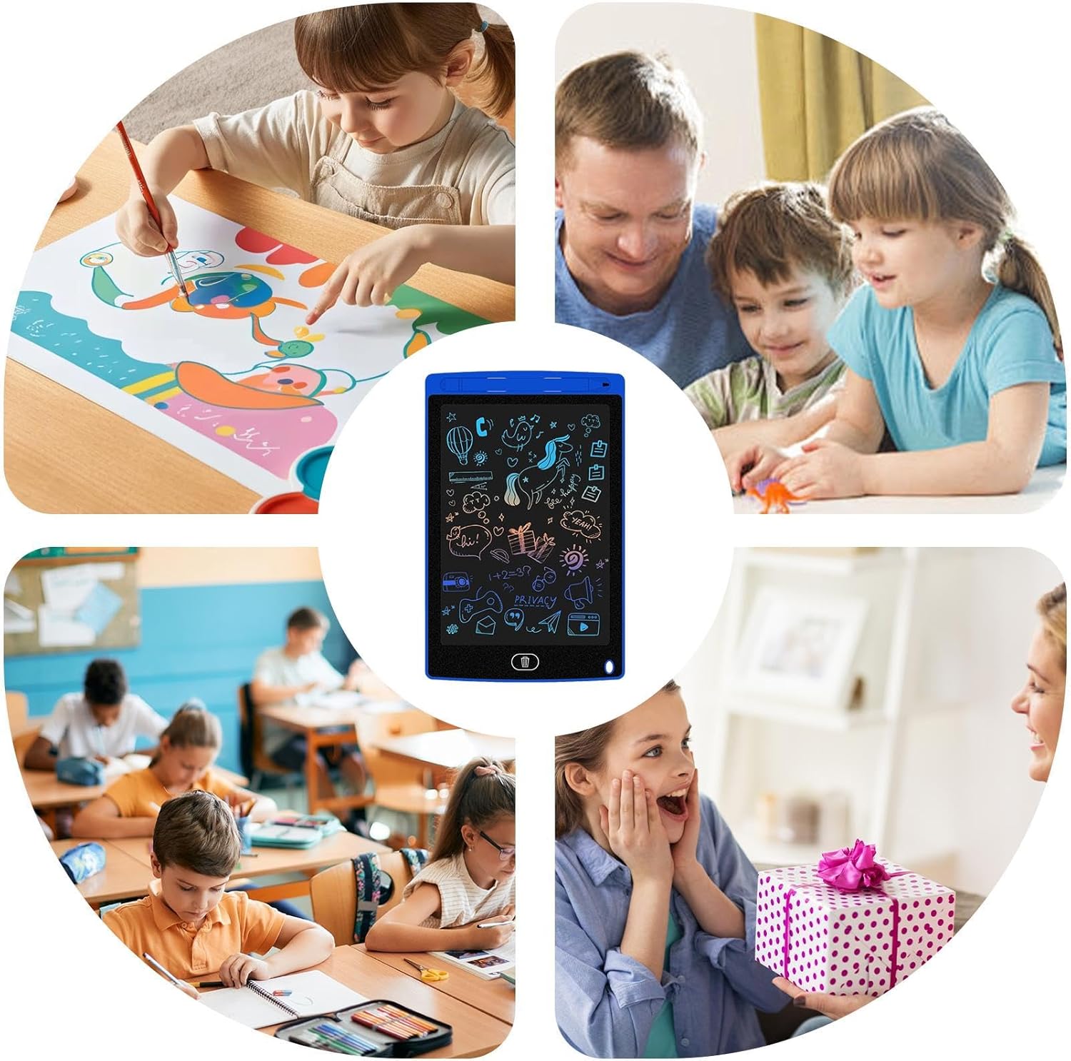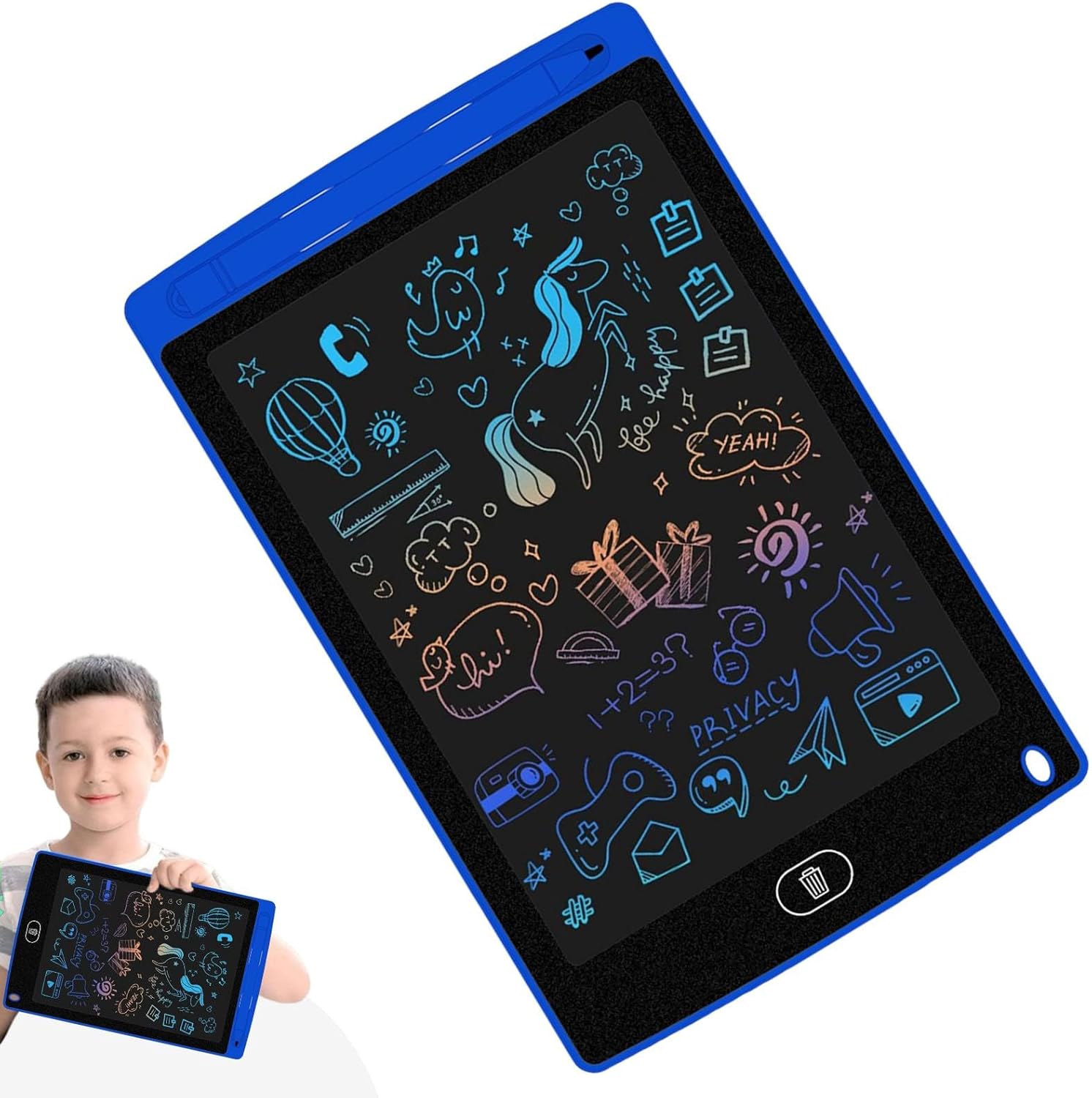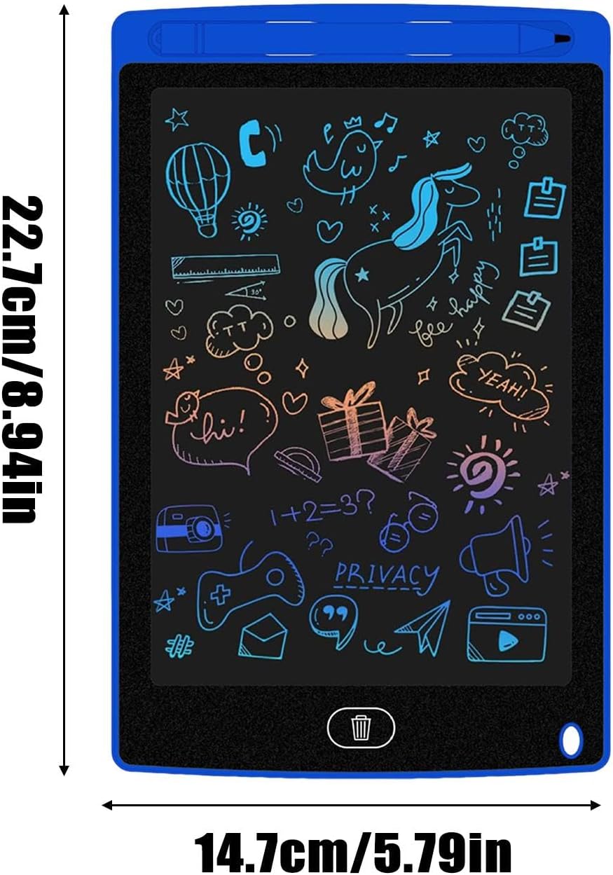 Tavoletta da scrittura LCD per: tavoletta elettronica da 8,5 pollici che consente alle persone di disegnare, scarabocchiare e descrivere, offrendo un divertimento creativo senza fine pur essendo facile da usare. Ecologico e riutilizzabile: elimina la necessità di carta, consentendo agli studenti di esercitarsi a scrivere e disegnare ripetutamente senza sprechi, risparmiando carta e promuovendo la sostenibilità. Cancellazione con un solo pulsante: cancella rapidamente lo schermo con un solo pulsante, consentendo alle persone di ricominciare da capo e perseguire la propria creatività senza problemi. Portatile e leggero: il suo design compatto e leggero lo rende facile da trasportare e utilizzare ovunque, a casa o in viaggio. Regalo perfetto per: un regalo di Capodanno ideale per ragazzi e ragazze, che incoraggia la creatività, l'apprendimento e il divertimento attraverso la scrittura e il disegno interattivi.