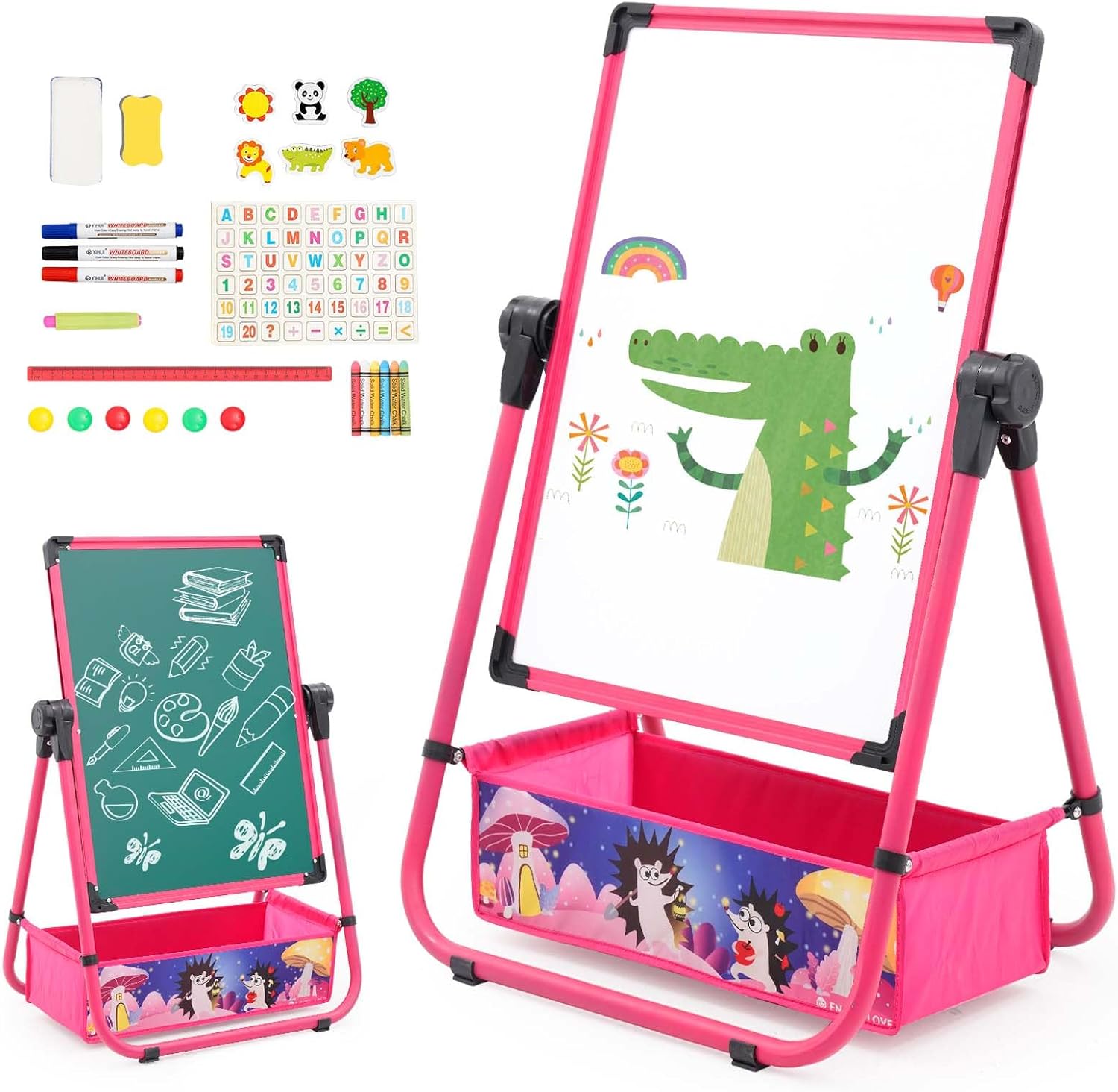 Promuove l'immaginazione: il nostro tavolo da disegno double face di prima qualità vanta una superficie di disegno a lavagna nera su un lato e una superficie di disegno a lavagna sull'altro, rendendo facile per i bambini realizzare graffiti, scrivere o dipingere Design pieghevole, risparmia spazio: appositamente progettato con una funzione pieghevole, questo tavolo da disegno consente di risparmiare spazio piegandosi facilmente dopo l'uso per riporlo in modo compatto Ausilio per la postura adattabile all'altezza: equipaggia il tuo bambino con la soluzione ergonomica perfetta per prevenire il gobbo durante il artistico. L'altezza del nostro tavolo da disegno fronte-retro può essere facilmente regolata per garantire una postura di pittura confortevole e può accompagnare il tuo bambino in ogni fase di crescita. Garantisci un sano sviluppo della colonna vertebrale con l'adattabilità di questo design Stazione creativa definitiva: questo tavolo da disegno per bambini è dotato di una sedia dal design ergonomico con funzione antiscivolo per maggiore sicurezza e comfort. Realizzato con materiali ecologici, vanta una robusta capacità di carico per il massimo supporto Disegno sicuro per le vie respiratorie: proteggi la salute respiratoria del tuo bambino con il nostro tavolo da disegno a doppia faccia che non utilizza gesso antipolvere. Questo giocattolo da lavagna nera per la casa senza polvere garantisce un'esperienza di disegno più pulita e più sana