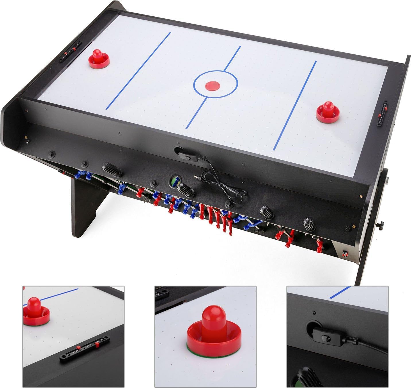 Multifunzionalità: tavolo da gioco 3 in 1 con calcio balilla, biliardo e air hockey per un divertimento versatile. Salvaspazio: un tavolo combina tre giochi popolari, risparmiando spazio e denaro. Materiale di alta qualità: realizzato in robusto materiale MDF, durevole e solido. Utilizzo universale: dimensioni adeguate per un gioco confortevole per tutti gli utenti, ideale per qualsiasi spazio di gioco. Set completo: contiene tutti gli accessori di gioco necessari tra cui palline, stecche, dischi, racchette e altro ancora.