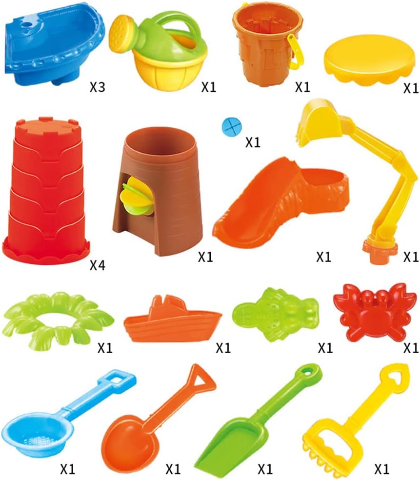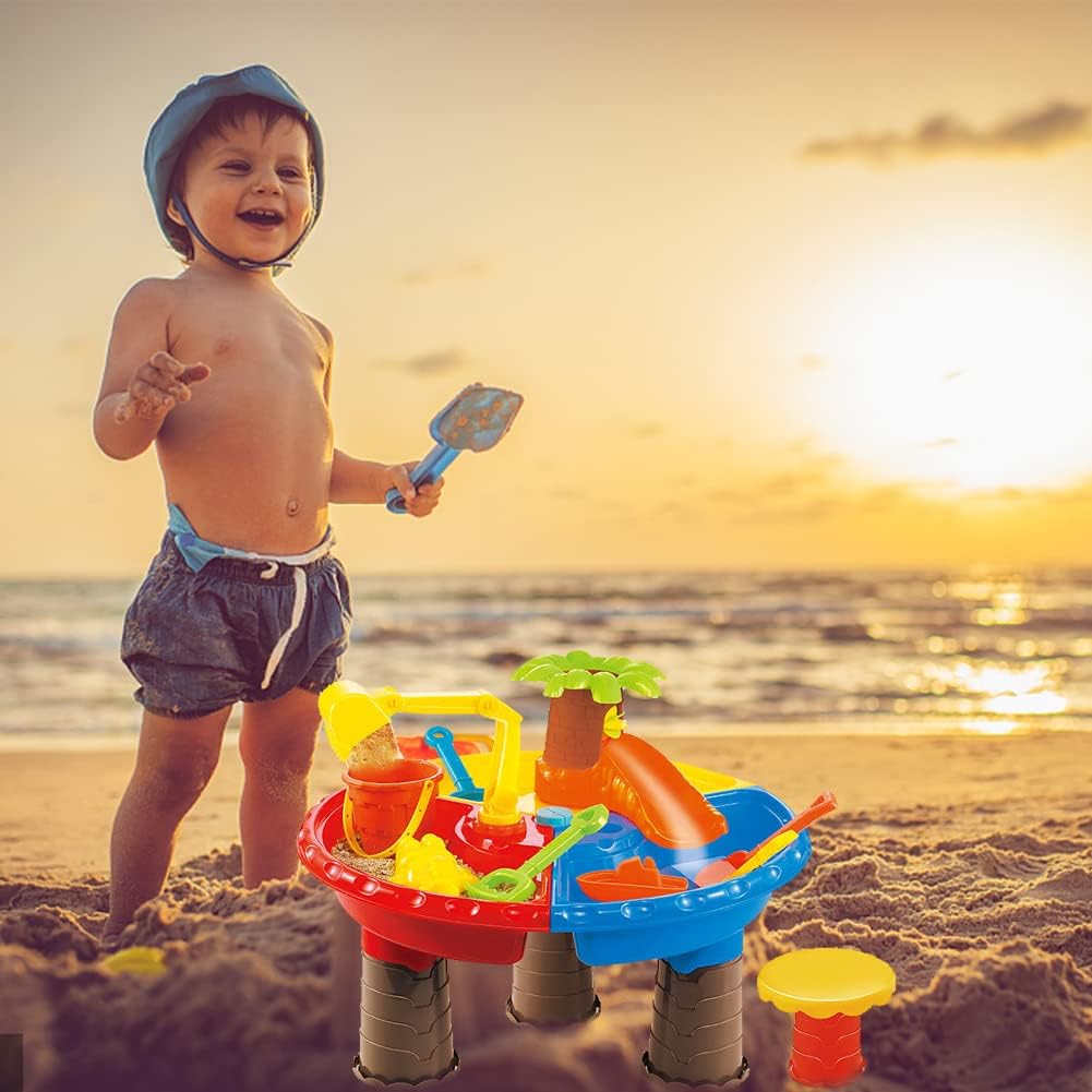Tavolo attività 4 in 1: i giocattoli da esterno sono dotati di vari accessori, tra cui tavoli ad acqua, sedie, imbuti, pale, docce, setacci, stampi per sabbia e altri strumenti per giocare con la sabbia. Esistono diversi modi di giocare, attirando l'attenzione dei bambini Materiale sicuro: questo set di giochi da tavolo con sabbia acquatica fai-da-te è realizzato in ABS addensato di alta qualità e tutte le parti sono prive di bave, che possono proteggere le mani dei bambini dai graffi Portatile e facile da montare: il tavolo da attività è facile da montare e il tuo bambino può posizionare tutti gli accessori sul tavolo dopo che il tavolo è stato assemblato, risparmiando spazio per il centro giochi di tuo figlio Scenario applicabile: il giocattolo da tavolo acquatico per i più piccoli può creare un mini parco acquatico sulla spiaggia, che può contenere acqua, sabbia, neve o terra. Adatto a spiaggia, cortile, cortile, piscina, neve, ecc. Giochi educativi: questo tavolo da gioco all'aperto non solo migliora l'immaginazione del bambino, ma migliora anche le sue abilità manuali, creatività e coordinazione occhio-mano. Sarà il partner ideale per i bambini