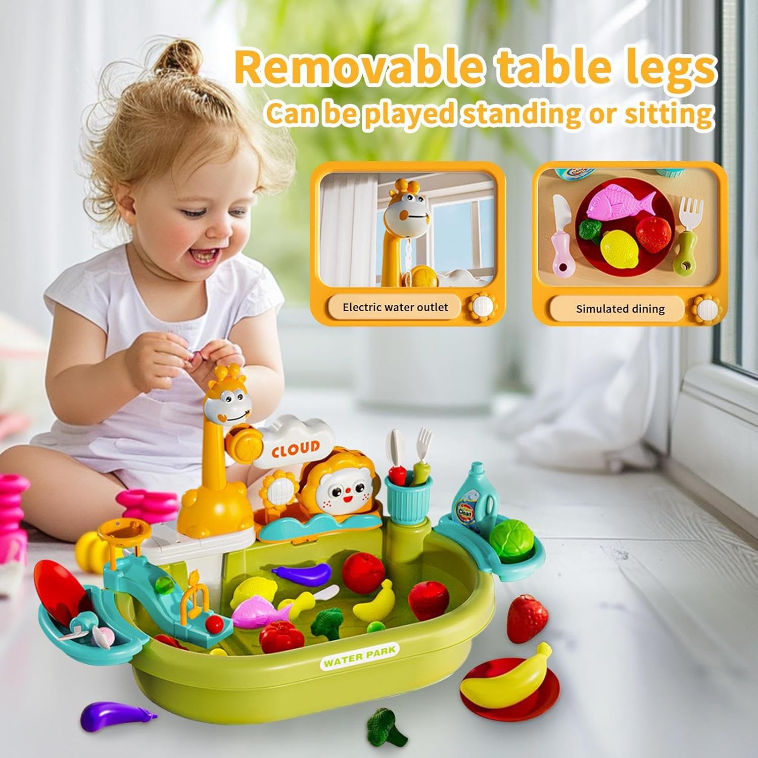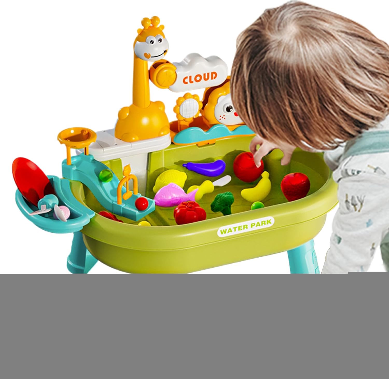 Design interattivo del gioco educativo: la struttura multifunzionale del tavolo da gioco offre un'autentica configurazione di giochi d'acqua. Questo supporta l'apprendimento pratico attraverso elementi di gioco educativi integrati per lo sviluppo del bambino. Promuovere lo sviluppo: supporta lo sviluppo motorio, promuove l'autonomia, utilizza il rubinetto a batteria con controllo intuitivo per un divertimento senza sforzo in acqua Divertimento di apprendimento interattivo: progettato senza sesso, questo tavolo d'acqua supporta il gioco cognitivo con gioco di pesca e accessori versatili. Le verdure e gli utensili da gioco incoraggiano la pratica voglia di esplorare. Materiale ABS resistente: il materiale ABS di alta qualità garantisce una costruzione sicura per i bambini e un uso durevole, mentre offre sempre un divertimento sicuro durante il gioco Giocattolo educativo: promuove obiettivi di sviluppo attraverso il gioco attivo, rafforza la comprensione scientifica e le abilità sociali con attività acquatiche guidate dai bambini