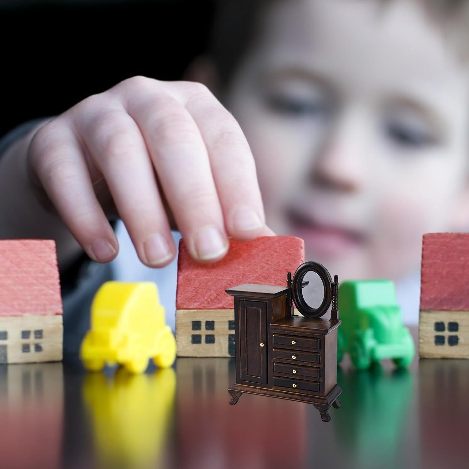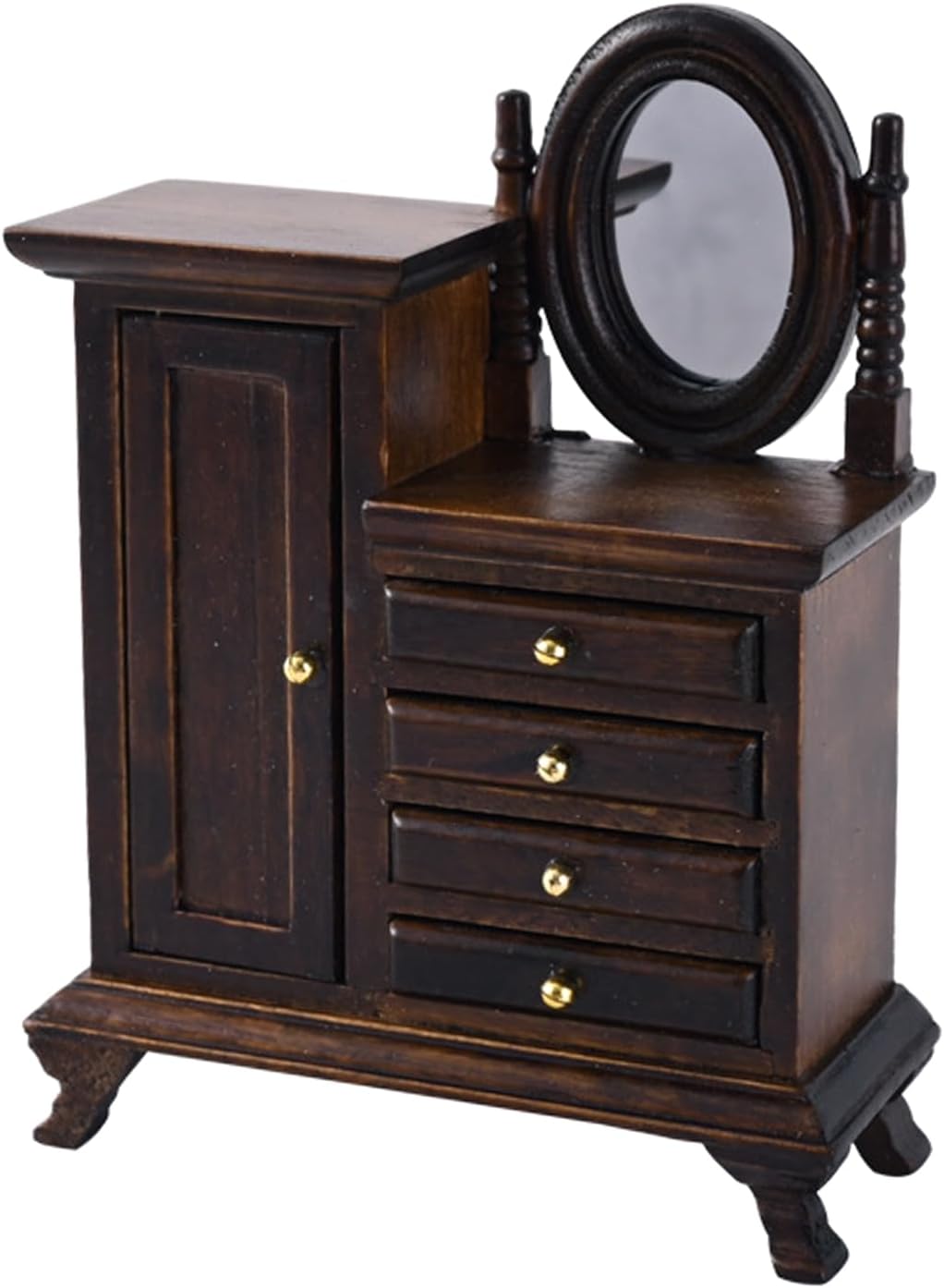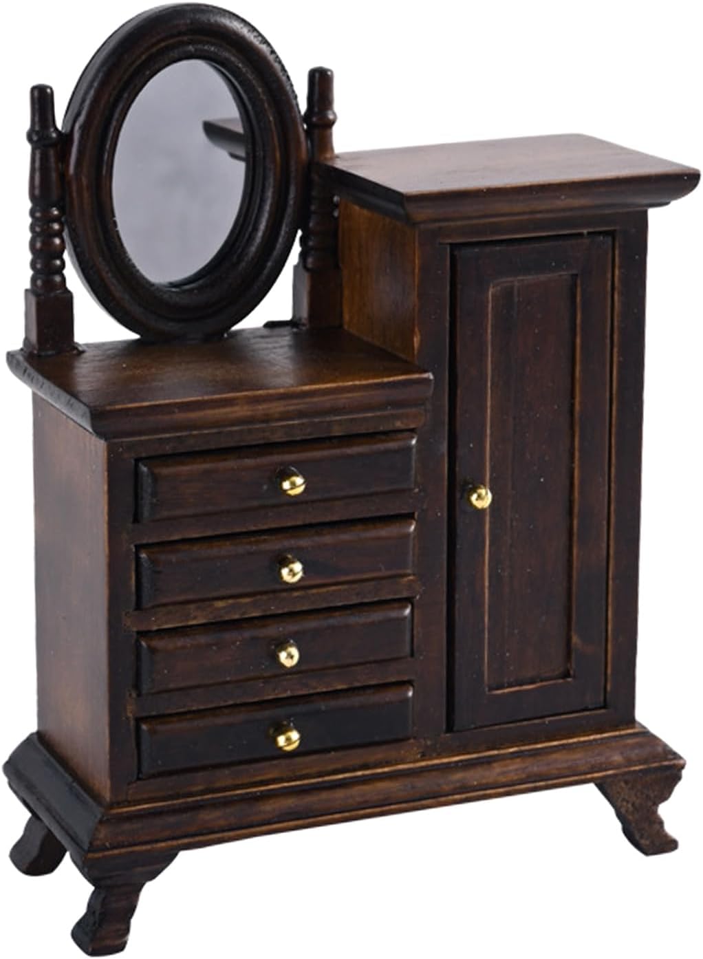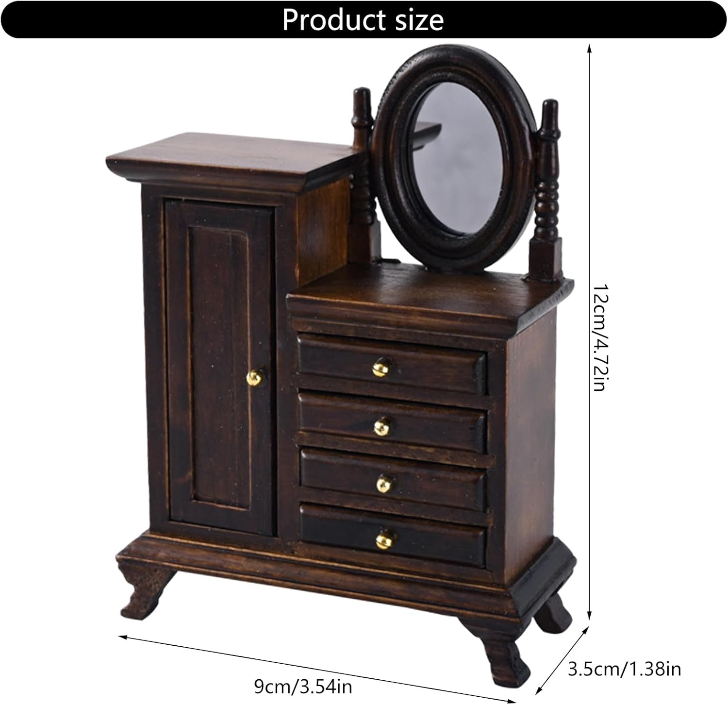 La finitura invecchiata e gli intagli intricati replicano mobili antichi a grandezza naturale e costituiscono un pezzo straordinario per allestimenti realistici di stanze in miniatura Questa cassettiera include cassetti realistici e una vanità a specchio per autentici mobili per case delle bambole in legno con squisita verniciatura a mano Ideale per gli appassionati di case delle bambole, collezionisti di miniature e hobbisti del bricolage per interni di casa modello 1:16 su misura Migliora la camera da letto della tua casa delle bambole con questa cassettiera in legno in scala 1:16 in stile vintage con cassetti funzionali e una vanità progettata per aggiungere un fascino elegante alle collezioni di mobili per case delle bambole in miniatura. Perfetto per le camere da letto delle case delle bambole o per gli espositori in miniatura vintage, funge da contenitore decorativo e funge da accessorio stravagante per scenari di gioco creativi