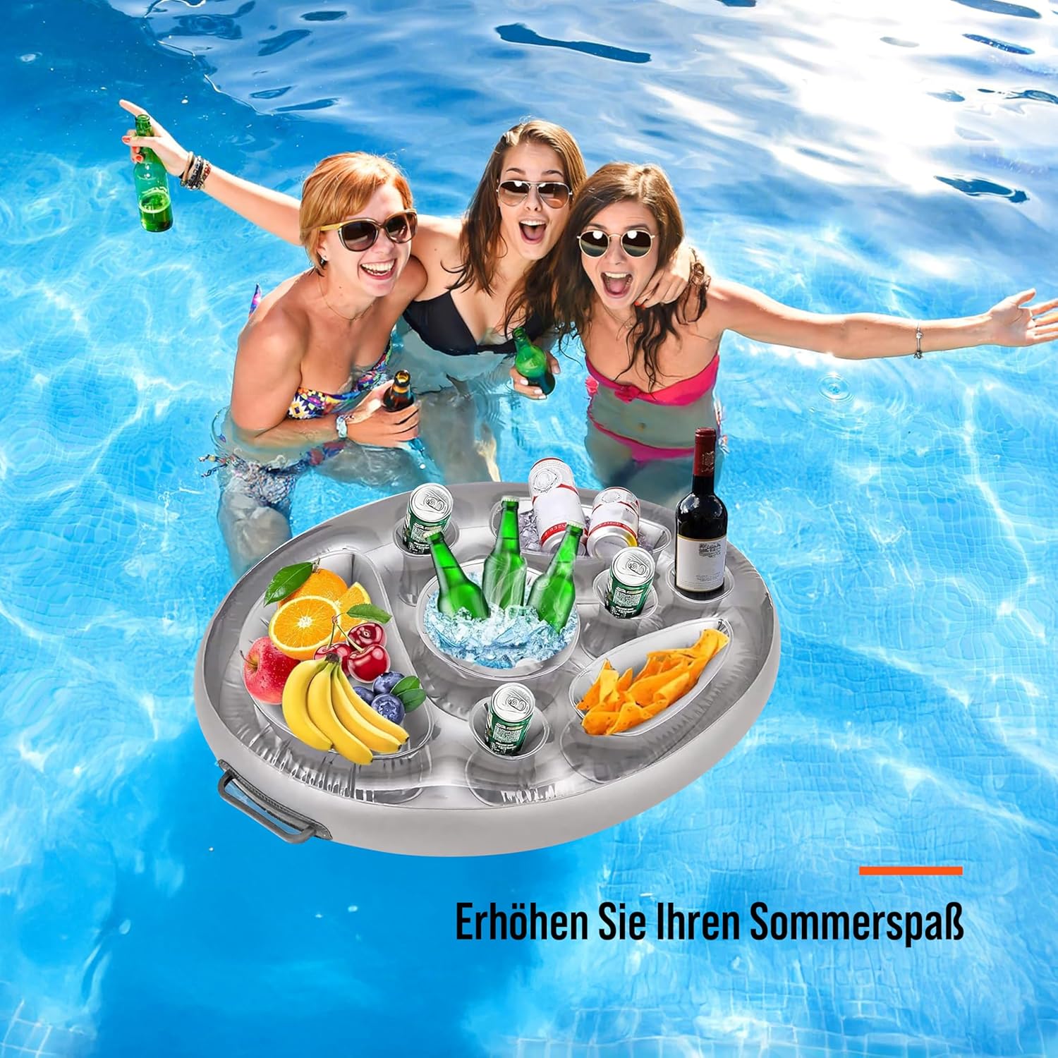 Goditi l'estate con stile con il nostro tavolo gonfiabile da piscina. In piscina, al lago o in giardino, questo tavolino galleggiante porta comfort, ordine e ristoro direttamente in acqua. ️ Design pratico con 8 scomparti. Il tavolo gonfiabile da piscina dispone di un totale di 8 pratici supporti, ideale per bevande, frutta, snack, cubetti di ghiaccio o anche il tuo smartphone. Tutto è sicuro e a portata di mano mentre ti rilassi. ️ Materiale durevole. Realizzato in PVC resistente: il tavolo da piscina è resistente agli strappi, impermeabile e resiste anche a un uso intensivo per diverse stagioni. ️ Compatto e portatile Facile da gonfiare e riporre, ideale per viaggi, feste in giardino o una giornata spontanea in acqua. Leggero e salvaspazio. ️ Versatile. Usalo come minibar galleggiante, refrigeratore per bevande, frutta o stazione per snack, perfetto per qualsiasi attività acquatica. Dati tecnici: Materiale: PVC. Lunghezza: 70 cm Larghezza: 50 cm Numero di scomparti: 8 Colore: Bianco con accenti colorati Consigliato per: feste in piscina. feste in giardino. Vacanze al mare. Godetevi l'estate con stile – con il nostro tavolo gonfiabile da piscina. In piscina, al lago o in giardino, questo tavolino galleggiante porta comfort, ordine e ristoro direttamente in acqua. ️ Design pratico con 8 scomparti. Il tavolo gonfiabile da piscina dispone di un totale di 8 pratici supporti, ideale per bevande, frutta, snack, cubetti di ghiaccio o anche il tuo smartphone. Tutto è sicuro e a portata di mano mentre ti rilassi. ️ Materiale durevole. Realizzato in PVC resistente: il tavolo da piscina è resistente agli strappi, impermeabile e resiste anche a un uso intensivo per diverse stagioni. ️ Compatto e portatile Facile da gonfiare e riporre, ideale per viaggi, feste in giardino o una giornata spontanea in acqua. Leggero e salvaspazio. ️ Versatile. Usalo come minibar galleggiante, refrigeratore per bevande, frutta o stazione per snack, perfetto per qualsiasi attività acquatica. Dati tecnici: Materiale: PVC. Lunghezza: 70 cm Larghezza: 50 cm Numero di scomparti: 8 Colore: Bianco con accenti colorati Consigliato per: feste in piscina. feste in giardino. Vacanze al mare. Campeggio con accesso all'acqua. Rendi la tua estate indimenticabile con questo accessorio per piscina elegante e pratico