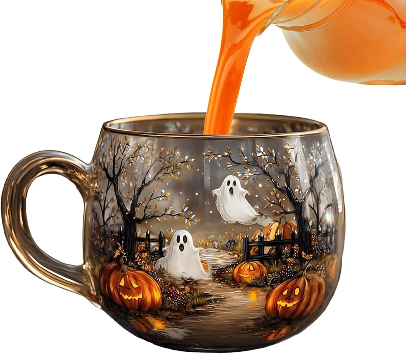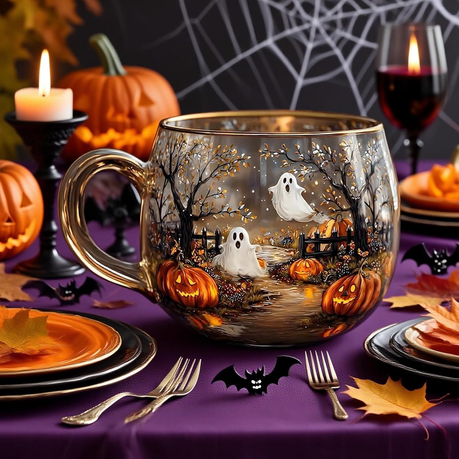 Artigianato dipinto a mano: presenta disegni intricati dipinti a mano, che rendono questa tazza di Halloween un pezzo straordinario nel tuo arredamento autunnale pur essendo realizzata in vetro per eleganza. Tazza versatile per bevande: adatta per bevande calde e zuppe, questa tazza presenta un design a bocca larga con grande capacità per migliorare la tua esperienza di bere o cenare garantendo al tempo stesso distribuzione pratica e comodità per l'uso quotidiano Stile spettrale ma affascinante: goditi la tua bevanda preferita con il tema Halloween di questa tazza, che è decorata con adorabili motivi di zucca e fantasmi che miglioreranno senza sforzo l'atmosfera stagionale durante le tue celebrazioni Comfort mattutino e sicurezza: progettata per migliorare le tue mattine, questa tazza contiene molte bevande ed è adatta al microonde per garantire un inizio rilassante e confortevole della giornata, completando al contempo il tuo piacere di bere con il suo design accurato. Regalo delicato: un modo perfetto per dimostrare il tuo affetto, questa tazza si aggiunge a qualsiasi Halloween