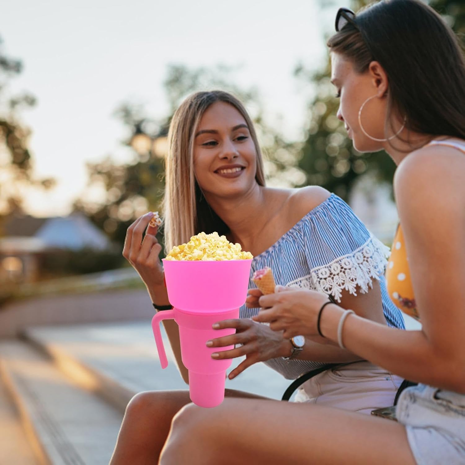 Tazza snack versatile: tazza per popcorn portatile. Con questo innovativo design 2 in 1 puoi avere i tuoi popcorn e anche berli. Contenitore per popcorn. Niente più fastidio di trasportare o condividere due tazze con altri. Sicuro e durevole: porta snack. Questa tazza è resistente ed ecologica. È resistente al calore e riutilizzabile, realizzato con materiali ABS di alta qualità. Puoi usare questa tazza per goderti i tuoi popcorn e le tue bevande senza deformazioni o danni. Compatto e pratico: bicchiere porta popcorn. Con questa tazza da stadio puoi goderti snack e bevande in ogni evento senza problemi. È leggero e portatile, quindi puoi riporlo facilmente nello zaino. Versatili e pratiche: tazze per popcorn. Con questa tazza da stadio puoi goderti i tuoi popcorn e uno spuntino in un home theater o portare la tua tazza con te quando viaggi, al parco o al cinema. È un'ottima opzione per ogni occasione. Con una sola mano: tazza per servire popcorn, tazza snack per popcorn. Questa tazza da stadio ti permette di prendere sia popcorn che bevande con una mano, lasciando l'altra mano libera per usare il tuo pha single o applaudire per la tua squadra.