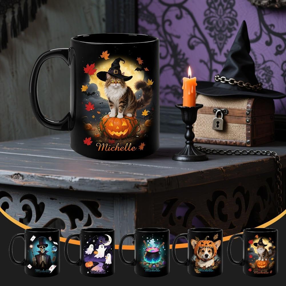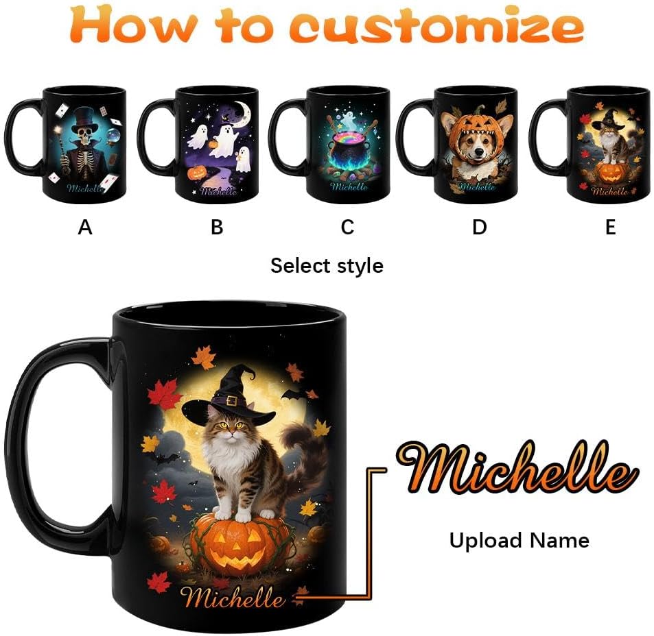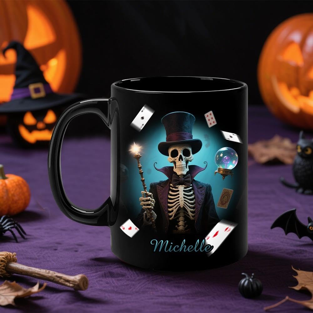 Magico design di Halloween: questa tazza presenta adorabili stampe di Halloween che creano un'atmosfera festosa e accogliente. Perfetto per l'uso stagionale e la decorazione quotidiana. Opzione nome personalizzato: aggiungi un tocco personale con un nome personalizzato su ogni tazza, rendendola un regalo unico per i tuoi cari o per te stesso. Materiale ceramico di alta qualità: realizzato in ceramica di alta qualità per durata e sicurezza. Facile da pulire con stampe di lunga durata e resistenti allo sbiadimento. VERSATILE ED ELEGANTE: ideale per bevande, snack o anche come pezzo decorativo: ravviva la tua scrivania, scaffale o tavolo con questa divertente tazza. Regalo perfetto per le vacanze: una sorpresa di Halloween ideale per feste, amici o famiglia. Pratico, creativo e pieno di calorosi auguri!