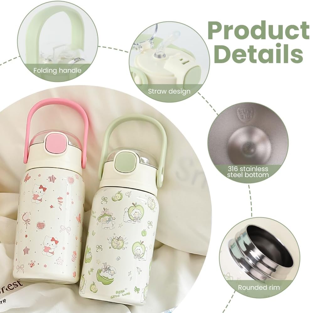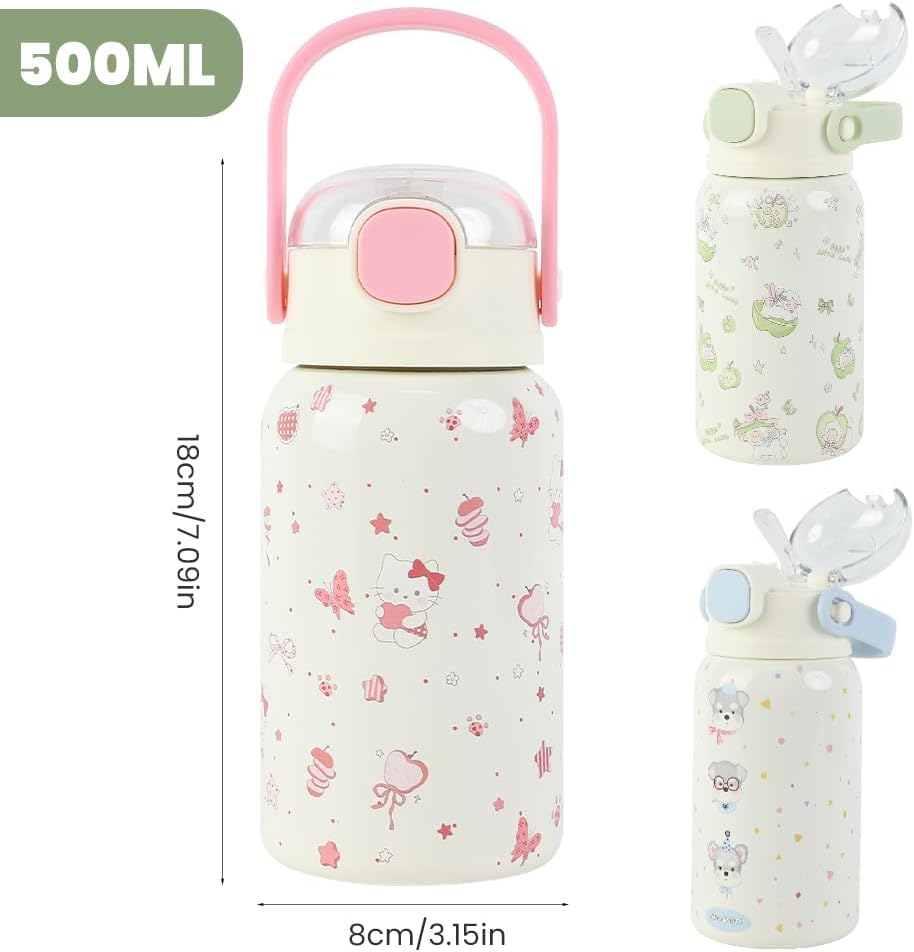 Materiale sicuro --- Una tazza termica per bambini è realizzata con coperchio in PP, silicone commestibile e acciaio inossidabile 316 di alta qualità. Il materiale 316 è resistente alla corrosione ed è più sano e sicuro del materiale 304. È molto adatto per cacao, tè, succhi, caffè, ecc. 100% privo di BPA e altre impurità. Isolamento e raffreddamento --- La temperatura della borraccia con cannuccia può essere mantenuta a -20 gradi Celsius ~ 100 gradi Celsius. È normale che la temperatura venga mantenuta fino a 8 ore. Quando cambia il tempo, cambia la temperatura. La temperatura esterna della superficie della bottiglia non cambia. Design con cannuccia --- La tazza da viaggio da 500 ml adotta il design con cannuccia e coperchio a doppia tazza per evitare perdite. Basta premere il pulsante del coperchio della tazza e il coperchio della tazza si aprirà automaticamente, rendendo l'acqua potabile più facile e comoda per il tuo bambino. Design della maniglia --- La stessa bottiglia d'acqua isolata in acciaio inossidabile ha un design della maniglia, che è facile da trasportare ed è la scelta ideale per la scuola, i viaggi, le gite, ecc., insieme a bellissimi motivi di animali, lascia che il bambino si innamori dell'acqua potabile. Regalo perfetto --- Questa tazza thermos da 500 ml è perfetta per regali scolastici, regali di compleanno, regali di Natale, per il tuo bambino o i tuoi amici. Possono essere trasportati tranquillamente negli zaini.