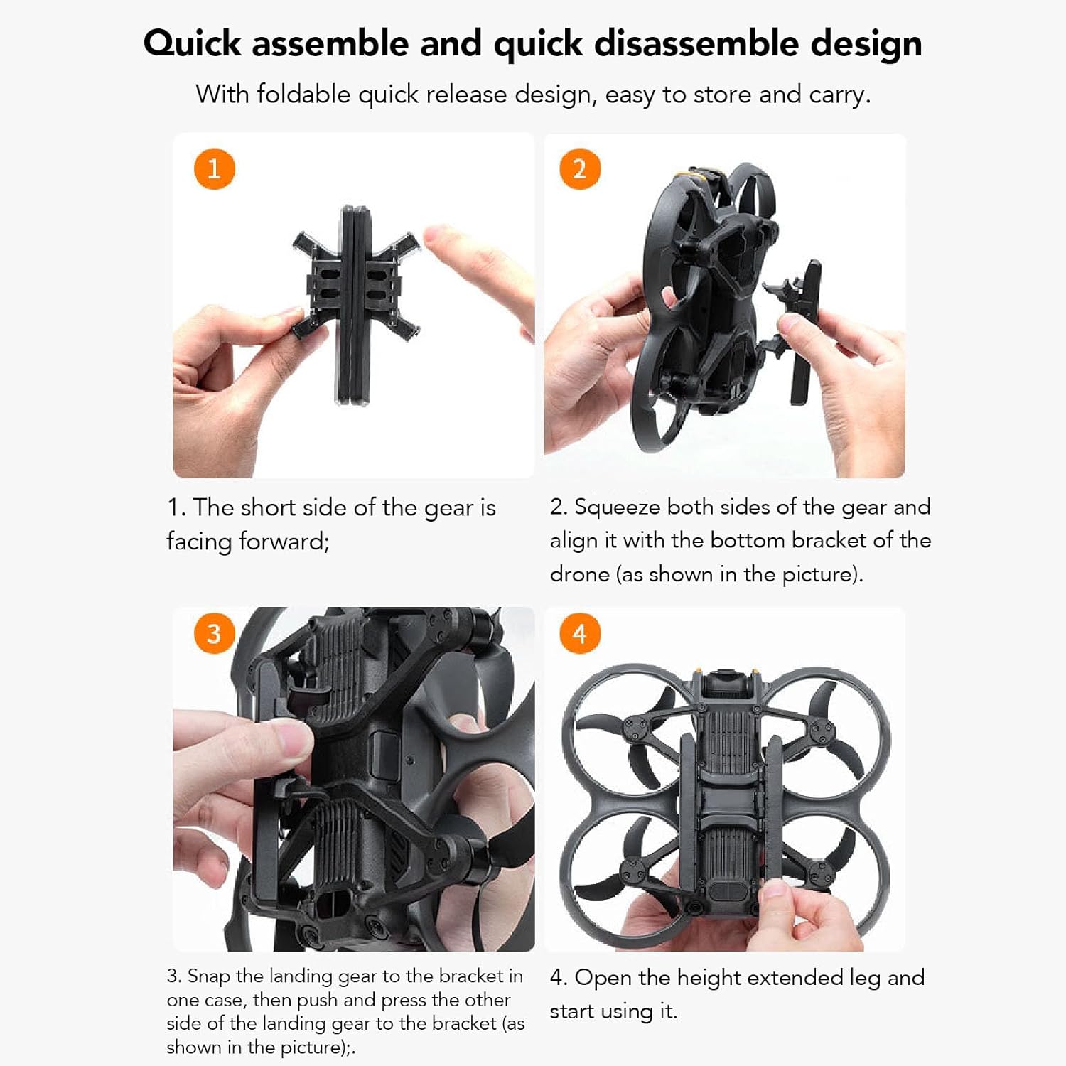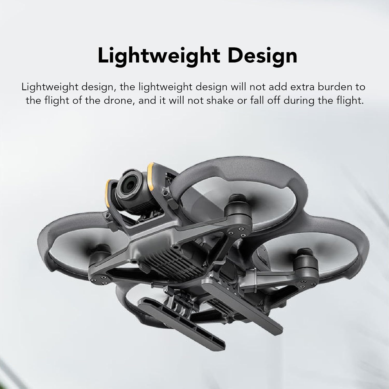 [Facile da usare] Presenta un design pieghevole a sgancio rapido comoda conservazione e portabilità, senza interferire con le funzionalità del drone come l'antiribaltamento dopo una modalità incidente o la portata della fotocamera. [Esperienza di utilizzo migliorata] Un accessorio essenziale per gli appassionati di droni, questa gamba di estensione del carrello di atterraggio migliora l'esperienza utente complessiva fornendo una migliore protezione e funzionalità. [Previene i danni] Impedisce ai detriti del terreno, all'acqua, alle eliche e alle telecamere con testa a sfera di sporcare o danneggiare il drone, garantendo un atterraggio e un funzionamento fluidi in vari ambienti. [Protezione avanzata] Progettato per adattarsi perfettamente al drone avata 2, questo carrello di atterraggio aumenta la distanza tra il drone e il suolo di 22 mm, riducendo le forze di impatto su superfici irregolari e proteggendo sensori e telecamere. [Leggero e stabile] La struttura leggera garantisce che il carico di volo del drone non venga aumentato, mantenendo stabilità e sicurezza durante il processo di volo.