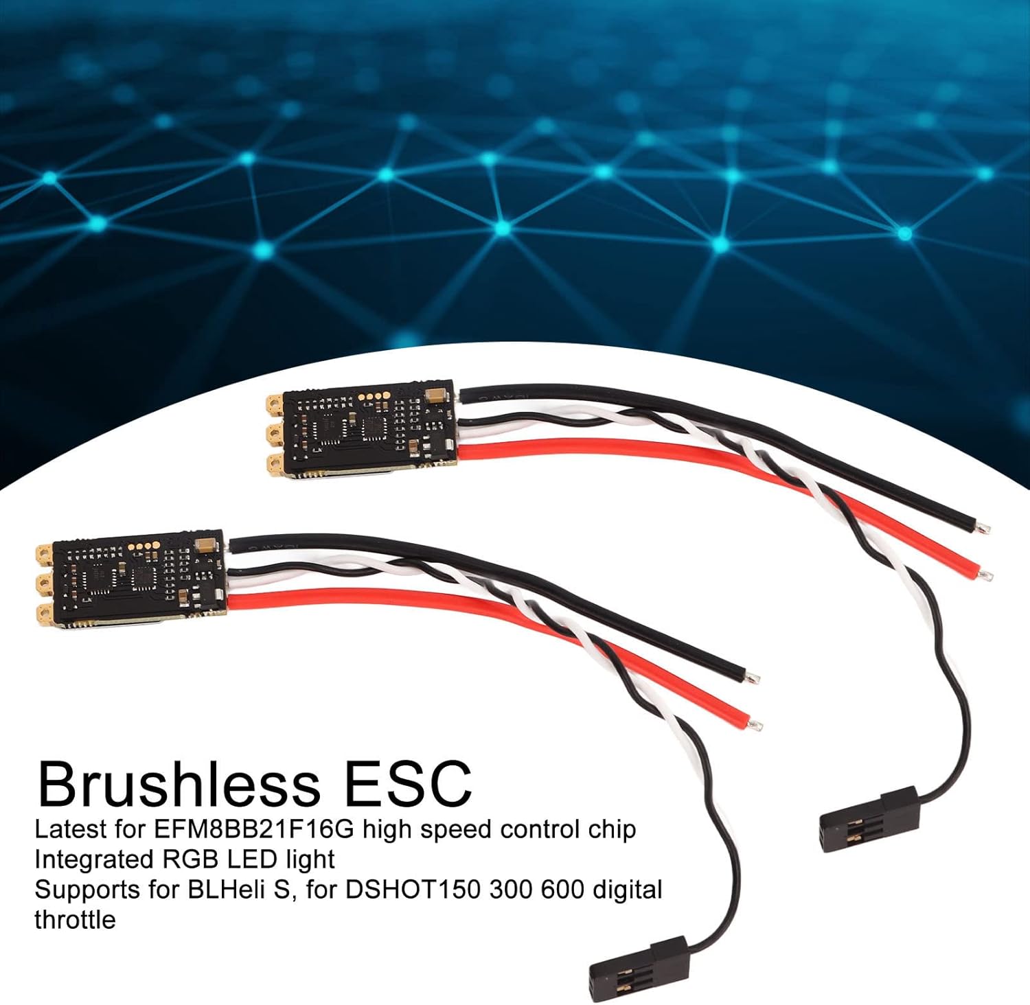 ULTIMO CHIP: L'ESC brushless RC ha l'ultimo chip di controllo ad alta velocità EFM8BB21F16G. LUCE LED: l'ESC senza spazzole ha una luce LED RGB integrata, che può essere vista anche durante l'uso notturno. ACCELERATORE DIGITALE: supporti ESC brushless da 35 A per BLHeli S, per acceleratore digitale DSHOT150 300 600. PWM: RC ESC è abilitato per impostazione predefinita con PWM hardware, smorzamento del motore di azionamento PWM hardware leggero. FORTE CAPACITÀ ANTIINTERFERENZA: l'ESC del drone RC ha una forte capacità anti-interferenza per garantire stabilità e sicurezza durante l'utilizzo.