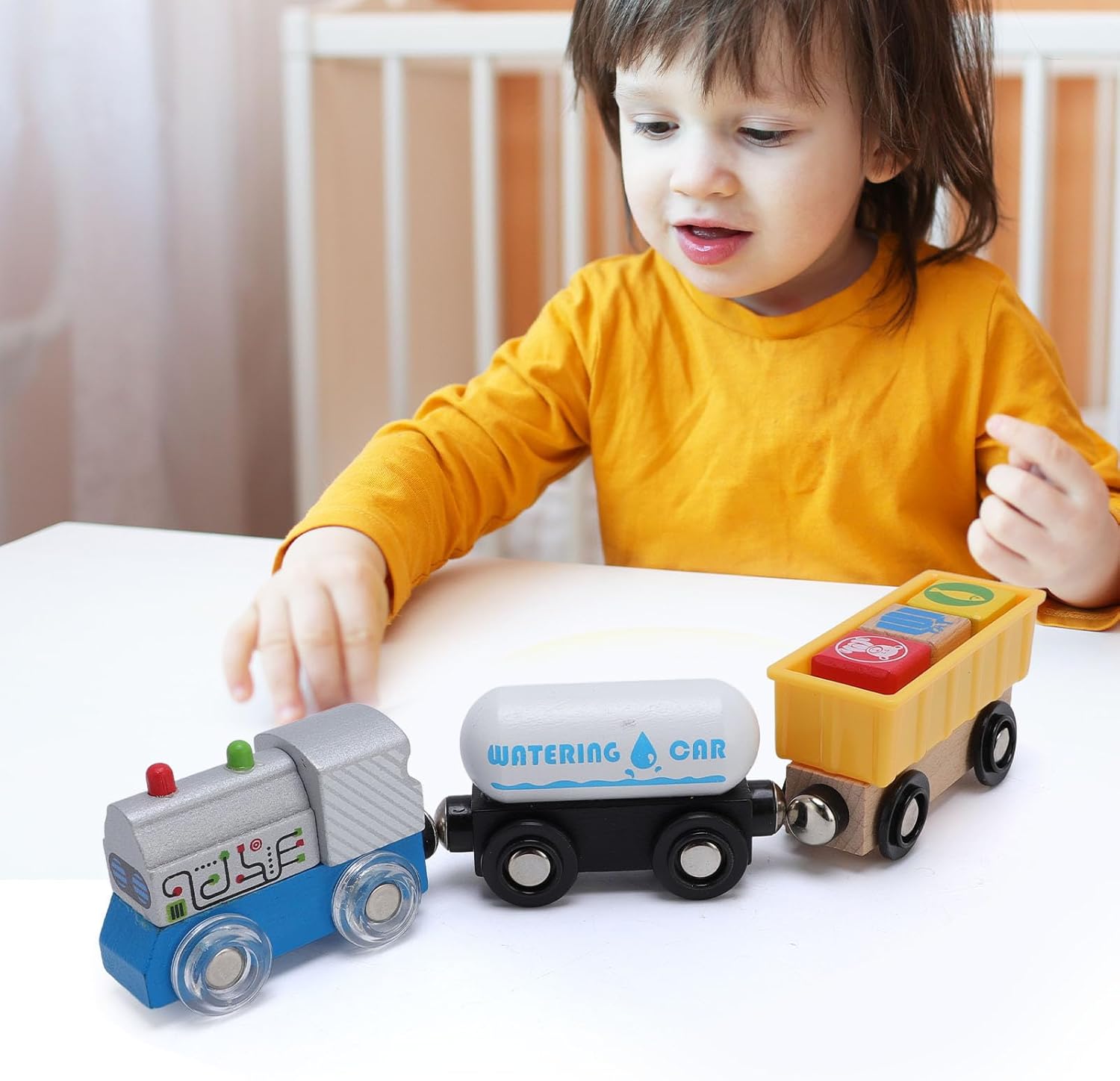 [Sviluppa menti abili] Questo set di treni in legno promuove abilità di risoluzione dei problemi, capacità motorie e giochi fantasiosi, promuovendo la creatività e il pensiero logico per i bambini per eccellere nello sviluppo iniziale. [Emozionante gioco di carico] Caricato con merci, questo set di treni offre approfondimenti sul trasporto educativo e educativo, scatenando curiosità e coinvolgendo bambini in ore di scenari di gioco interattivi. [Ispira la tecnologia futura] Con scene futuristiche, i bambini possono esplorare e creare le loro avventure di trasporto ad alta tecnologia, migliorare le capacità cognitive e nutrire il pensiero innovativo attraverso il gioco. [Immersione realistica] Realizzata con dettagli realistici, questo giocattolo assomiglia da vicino a treni merci, fornendo un'esperienza di gioco accattivante che sembra gestire un vero di treno di carico. [Sicurezza e qualità premium] realizzato in legno di faggio di alta qualità, questo set di treni di carico durevole garantisce un tempo di gioco sicuro e divertente, che offre intrattenimento di lunga durata per lo sviluppo di tuo figlio.