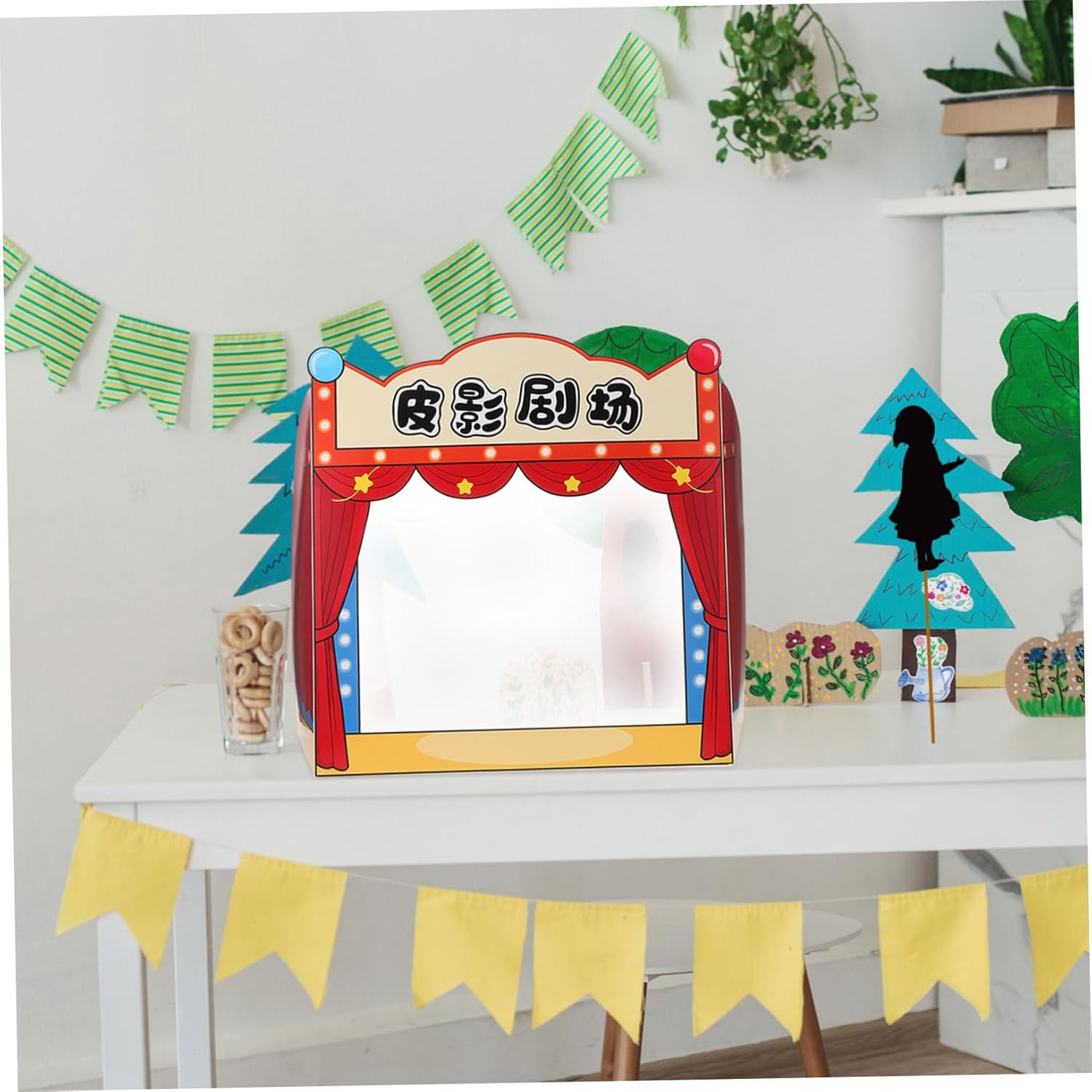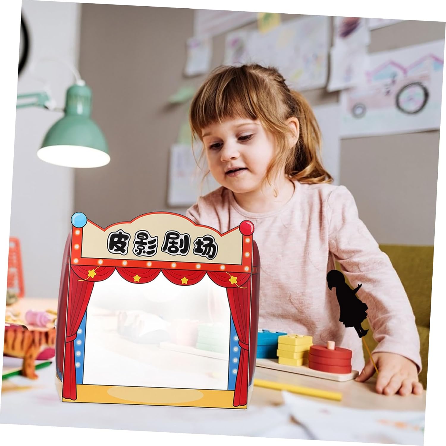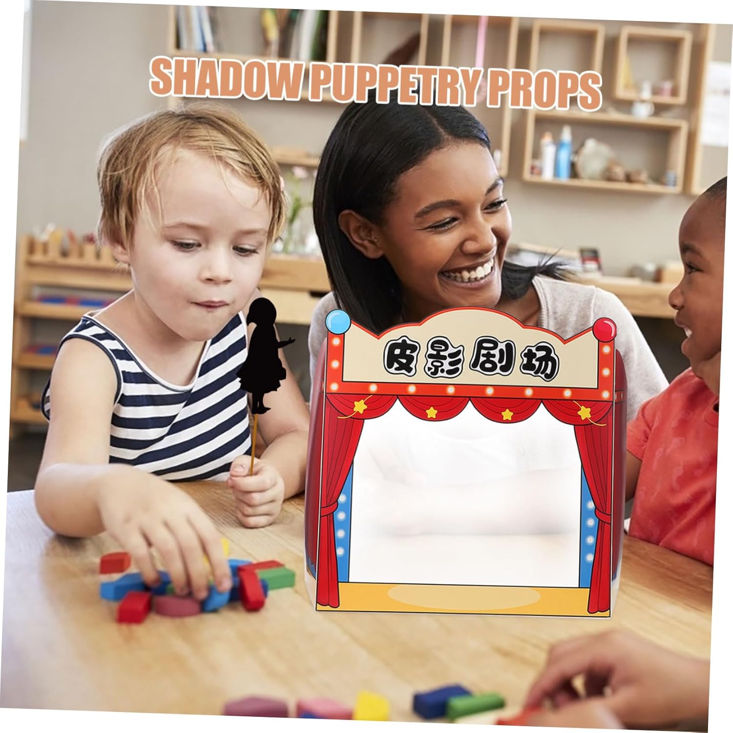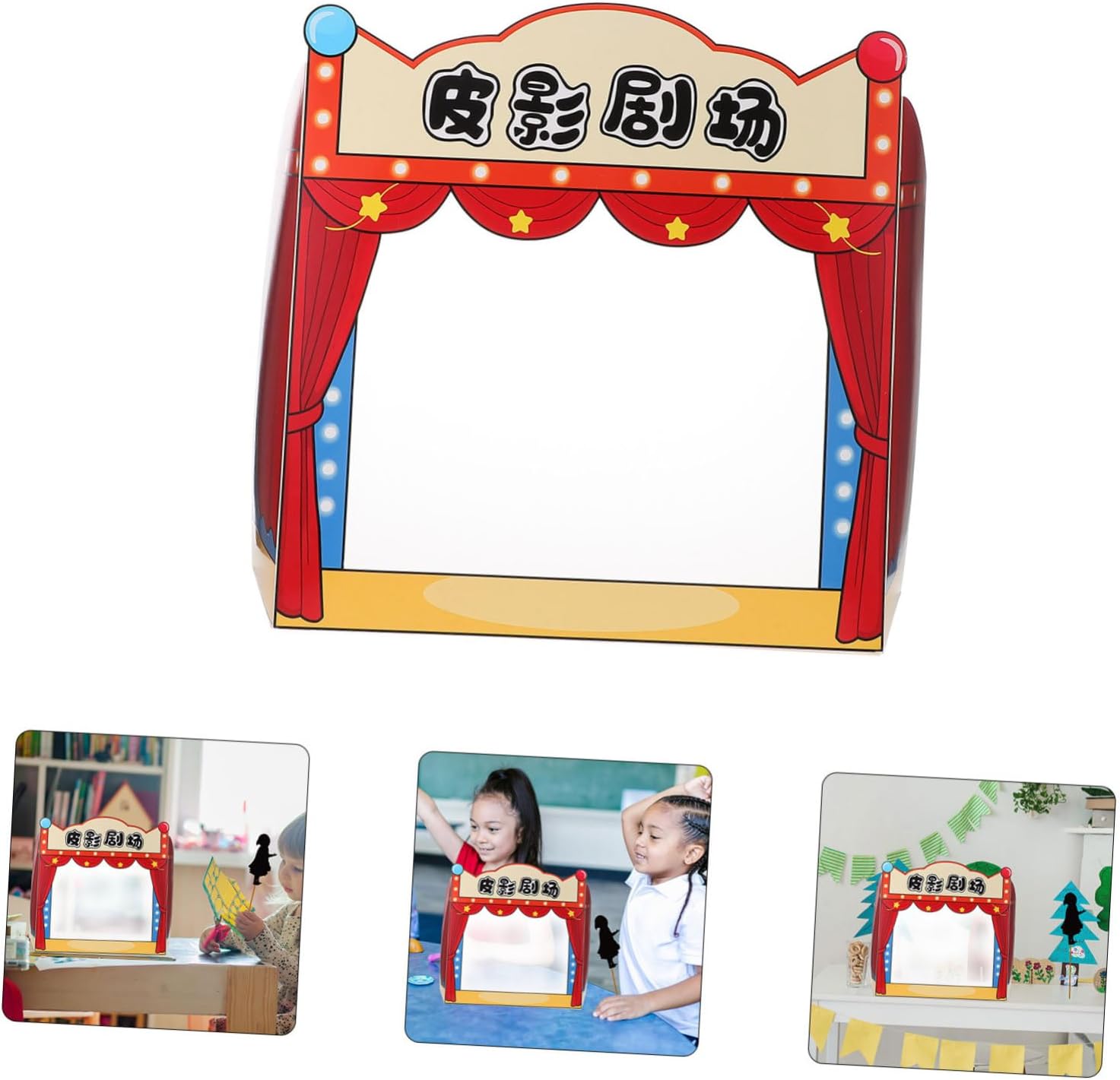 Imparare attraverso: I giochi teatrali con marionette ombra insegnano la cultura tradizionale e le storie e incoraggiano la creatività Oggetti di scena interattivi: i piccoli palchi incoraggiano i partecipanti a partecipare e rendono il tempo di gioco più interattivo e divertente Design versatile: usa gli oggetti di scena per le marionette con le ombre o la narrazione e fornisce molteplici modi per impegnarsi Gioco realistico: gli oggetti di scena simulano un vero palcoscenico teatrale e forniscono un'esperienza di gioco autentica e coinvolgente Valore educativo: è per gli asili nido, questi oggetti di scena sono ideali per l'insegnamento e l'intrattenimento e rendono divertente l'apprendimento