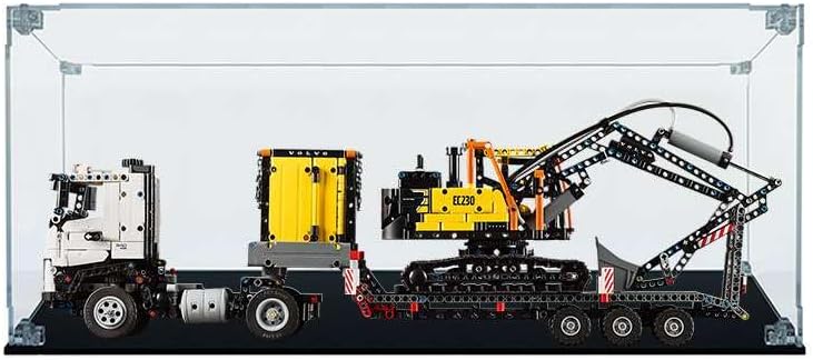 La teca in Plexiglass su misura compatibile con Autocarro Volvo FMX ed Escavatore elettrico EC230 LEGO 42175 Modello Arca Lite spessore lastre 4mm con viti e angolari trasparenti Base in Plexiglass nero lucido spessore lastra 5mm Sfondo incluso e rimovibile 100% Made in Italy