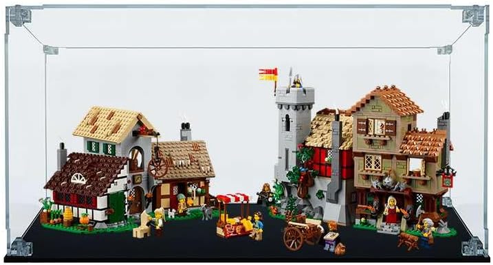 La teca in Plexiglass su misura compatibile con Piazza della città medievale LEGO 10332 Modello Arca Lite spessore lastre 4mm Base in Plexiglass nero lucido spessore lastra 5mm Viti e angolari trasparenti 100% Made in Italy