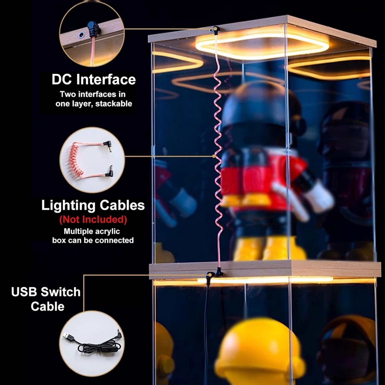 【 Con luce LED 】: Vetrine in acrilico con luce LED gialla per illuminare delicatamente la tua collezione. Basta collegare l'interfaccia per migliorare l'aspetto della scatola portaoggetti. 【 Copertura antipolvere 】: L'organizzatore in acrilico blocca la polvere e garantisce un ambiente pulito per gli oggetti. Protegge inoltre le collezioni dalla luce solare diretta, evitando che i tuoi amati oggetti sbiadiscano. 【 Vetrina in acrilico trasparente 】: La nostra vetrina in acrilico è realizzata in acrilico ad alta trasparenza. È robusta e stabile, impermeabile e leggera, e ha bordi lisci che consentono una chiara esposizione dei tuoi oggetti e li mantengono in buone condizioni. 【 Facile da installare 】: Basta staccare la pellicola protettiva su entrambi i lati e unire ciascun pannello in acrilico per installare rapidamente le vetrine in acrilico. Nel frattempo, puoi goderti il divertimento del fai da te. 【Ampiamente utilizzato】: la vetrina in acrilico può essere utilizzata per una gamma completa di oggetti da collezione, figure, bambole, trofei, gioielli, souvenir, modellini, pietre, scarpe e oggetti artigianali, ed è ideale anche per esporre e conservare oggetti in negozi e case.