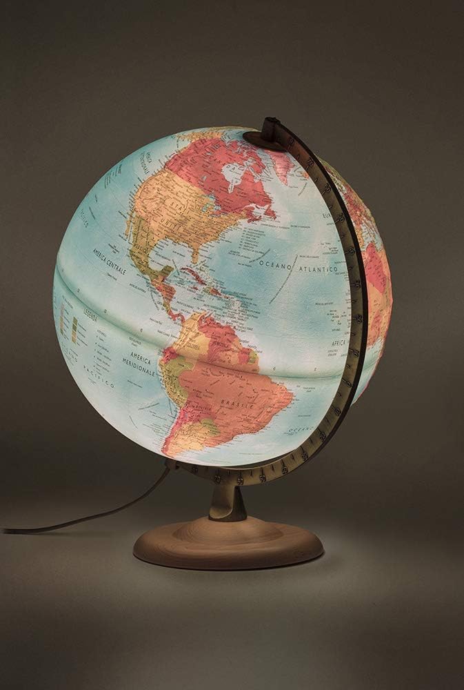 CARTOGRAFIA FISICO/POLITICA: mappamondo luminoso con un design classico, con la luce LED accesa l'accurata carografia Fisico si trasforma in Politica rendendo l'apprendimento geografico un'esperienza coinvolgente sviluppando le competenze cognitive dei più giovani. IDEA REGALO: il mappamondo è una perfetta idea regalo per quasi tutte le occasioni, compleanni, Natale e altre occasioni speciali. Ideale anche per decorare studi, stanze o bar, aggiungendo un tocco di originalità con un pezzo accattivante. DECORAZIONE & ALTA QUALITÀ: il mappamondo luminoso, unisce alta qualità e design decorativo impreziosendo l’ambiente in cui viene collocato; grazie alla lampadina LED interna può essere utilizzato anche come lampada per la cameretta. CARATTERISTICHE: Il mappamondo presenta una base circolare in legno di faggio e aste in metallo con meridiano graduato color ottone, offrendo un design elegante e raffinato. La sfera ruota liberamente intorno al proprio asse, con dimensioni di diametro 30 cm e altezza 40 cm. Un complemento d'arredo classico e distintivo. Confezione in scatola avana neutra e sostenibile. MADE IN ITALY: L'eccellenza artigianale italiana si fonde con l'innovazione nei mappamondi Tecnodidattica, offrendo sicurezza, qualità e stile ineguagliabili. ASSISTENZA CLIENTI e GARANZIA: Tecnodidattica offre elevati standard qualitativi, investendo nella tua tranquillità. Per domande, contattaci sul sito ufficiale per la soluzione migliore.