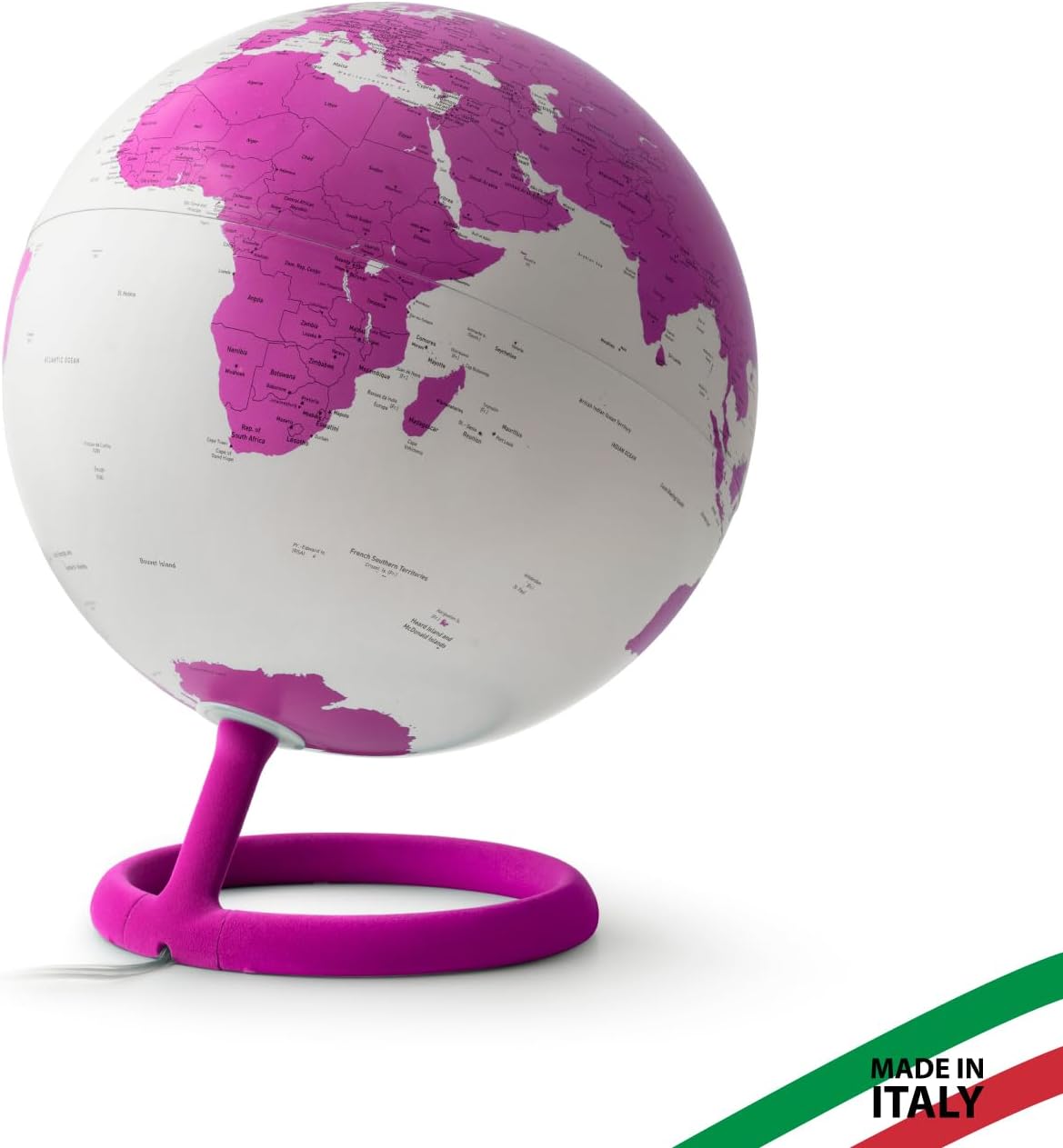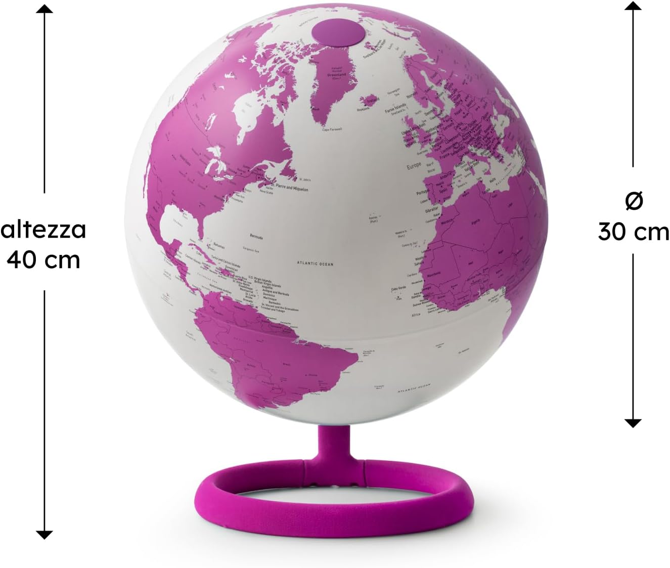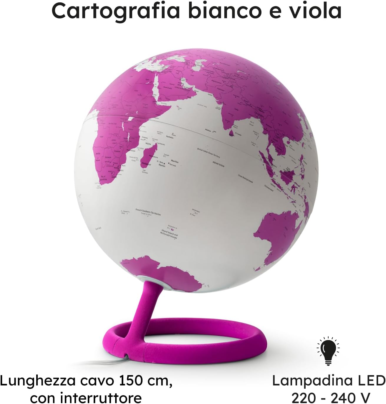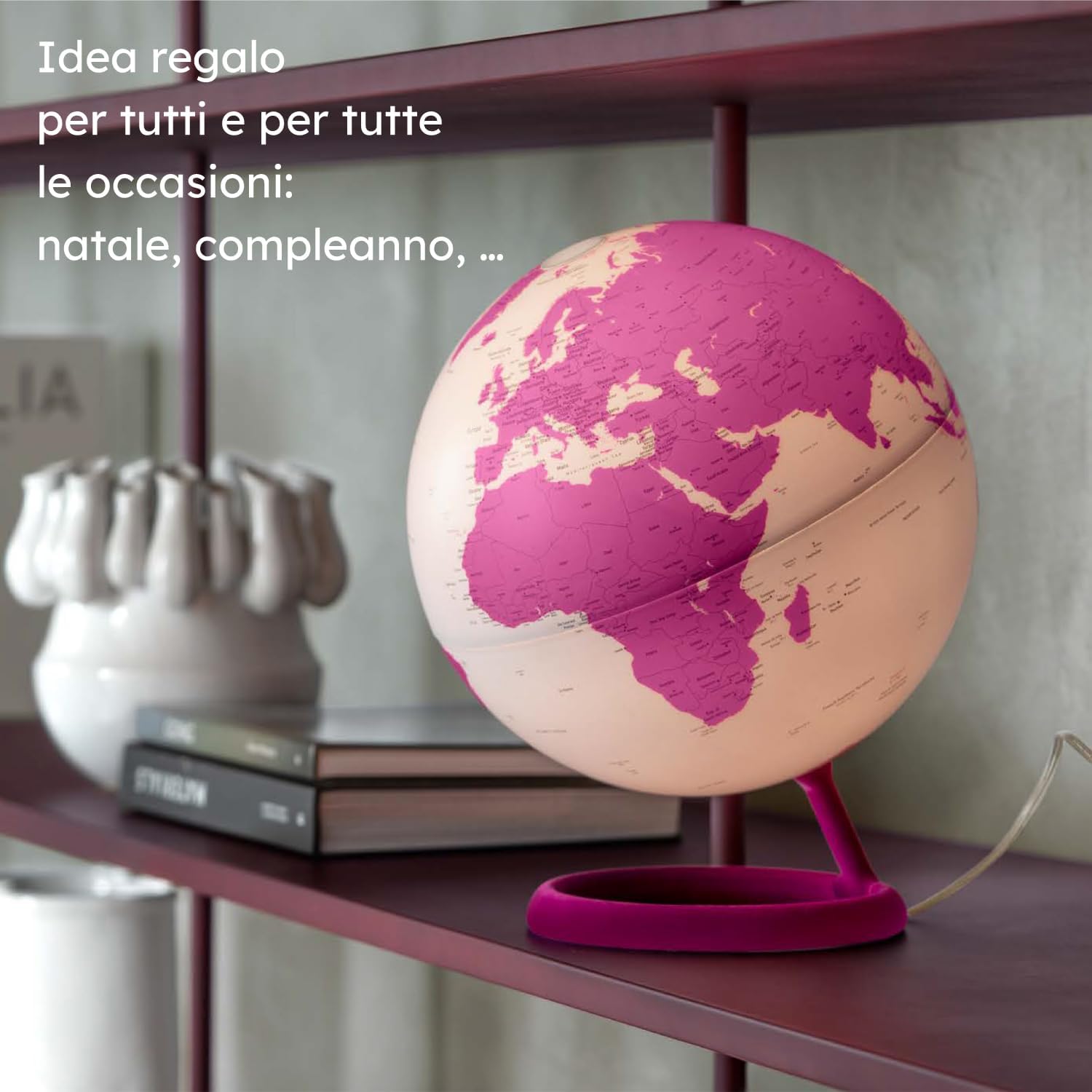DESIGN & ALTA QUALITÀ: il mappamondo luminoso Evolve Velvet, unisce alta qualità e design, progettato dai rinomati designer danesi Claus Jensen & Henrik Holbaek, dello Studio Tools Design. IDEA REGALO: il mappamondo è una perfetta idea regalo per quasi tutte le occasioni, compleanni, Natale e altre occasioni speciali. Ideale anche per decorare studi, stanze o bar, aggiungendo un tocco di originalità con un pezzo accattivante. CARTOGRAFIA POLITICA IN INGLESE: mappamondo con un design elegante ed internazionale, con lampadina LED interna a basso consumo, costituisce sia un utile strumento di consultazione che un raffinato elemento d'atmosfera. La lampadina può essere sostituita. CARATTERISTICHE: Il mappamondo elegante e di arredo, con base ad anello in nylon, rinforzata per una maggiore stabilità, con finitura floccata, sfera che ruota sul proprio asse. Diametro 30 cm e altezza 40 cm. Confezione in scatola litografata e sostenibile. MADE IN ITALY: La collezione Evolve Velvet di Atmosphere fa uso di tecnologie avanzate e di materiali di qualità, certificati per gli alti standard di sicurezza e qualità Made in Italy