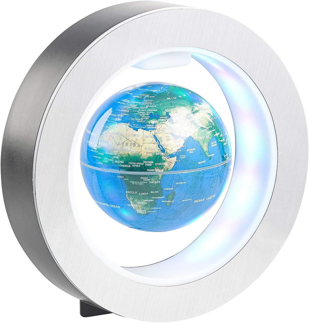 Globo terrestre elegante e decorativo, con base in legno di acero e stelo in alluminio, diametro 30 cm e altezza 40 cm. La palla ruota sul suo asse. Geografia con cartografia fisica e politica in rilievo della collezione Atmosphere Classic e informazioni geografiche attuali in italiano Un vero e proprio oggetto di design, disegnato dai designer danesi Claus Jensen & Henrik Holbaek, di Studio Tools Design Dotato di lampadina LED interna: quando si spegne la luce appare la cartografia fisica, la rappresentazione diventa politica La collezione Atmosphere Classic utilizza tecnologie avanzate e materiali di qualità, certificati per elevati standard di sicurezza e qualità Made in Italy Globo terrestre con testi in lingua italiana