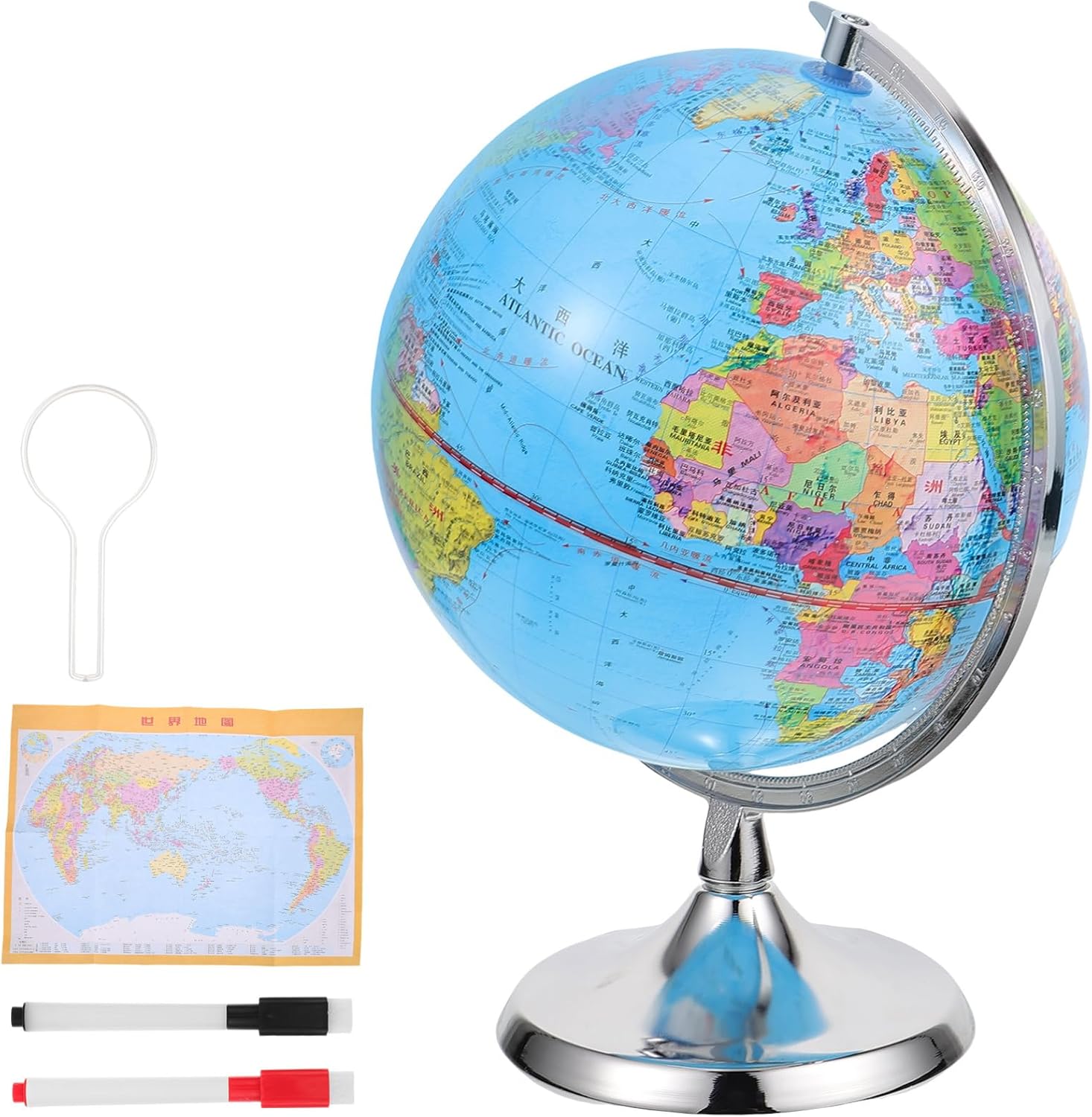 CARTOGRAFIA POLITICA/COSTELLAZIONI: mappamondo luminoso con un design classico, con la luce LED accesa l'accurata carografia Politica si trasforma in Costellazioni celesti rendendo l'apprendimento geografico un'esperienza coinvolgente sviluppando le competenze cognitive dei più giovani. IDEA REGALO: il mappamondo con doppia cartografia è una perfetta idea regalo per tutte le occasioni, compleanni, Natale e altri momenti speciali. Ideale anche per decorare studi, stanze o bar, aggiungendo un tocco di originalità con un prezzo accattivante. DECORAZIONE & ALTA QUALITÀ: il mappamondo luminoso, unisce alta qualità e design decorativo impreziosendo l’ambiente in cui viene collocato; grazie alla lampadina LED interna può essere utilizzato anche come lampada per la cameretta. CARATTERISTICHE: Il mappamondo è dotato di un meridiano graduato per individuare la latitudine. La sfera ruota agevolmente intorno al proprio asse, mentre la base in materiale plastico azzurro garantisce resistenza. Diametro: 25 cm. Confezione in scatola illustrata. MADE IN ITALY: L'eccellenza artigianale italiana si fonde con l'innovazione nei mappamondi Tecnodidattica, offrendo sicurezza, qualità e stile ineguagliabili. ASSISTENZA CLIENTI e GARANZIA: Tecnodidattica offre elevati standard qualitativi, investendo nella tua tranquillità. Per domande, contattaci sul sito ufficiale per la soluzione migliore.