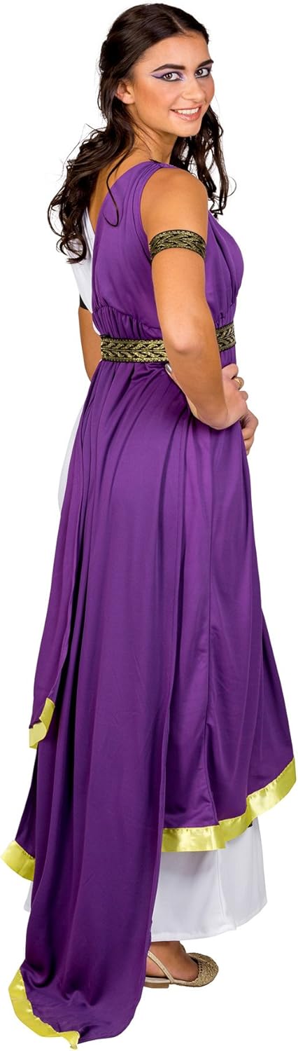 Il costume per donna da Minerva, dea dell’Olimpo, è costituito da un meraviglioso abito lungo. È corredato di un drappo applicato, incantevoli emblemi sulle spalline, una favolosa e audace scollatura, nonché nella parte inferiore di una magnifica bordura in stile broccato. In dotazione all’outfit sono anche un’elegante cintura con chiusura in velcro, pure in stile broccato. Materiale: 100% poliestere. Osa proporti come dea romana dell’antichità e, nelle vesti di Minerva, fai il tuo ingresso con tutta la tua avvenenza e fierezza nell’Olimpo del Carnevale. Con questo meraviglioso costume la tua entrata in scena sarà davvero divina e di grande effetto. Danza nella stagione più pazza dell’anno nei panni della dea Minerva e trasforma la notte in giorno. Suggerimento: Indossa in aggiunta al travestimento bigiotteria dorata, per completare l’outfit e renderlo ancor più glamour. Meraviglioso abito lungo // Drappo applicato e audace scollatura // Incantevoli emblemi sulle spalline e una magnifica bordura in stile broccato // Elegante cintura con chiusura a strappo, anche in stile broccato