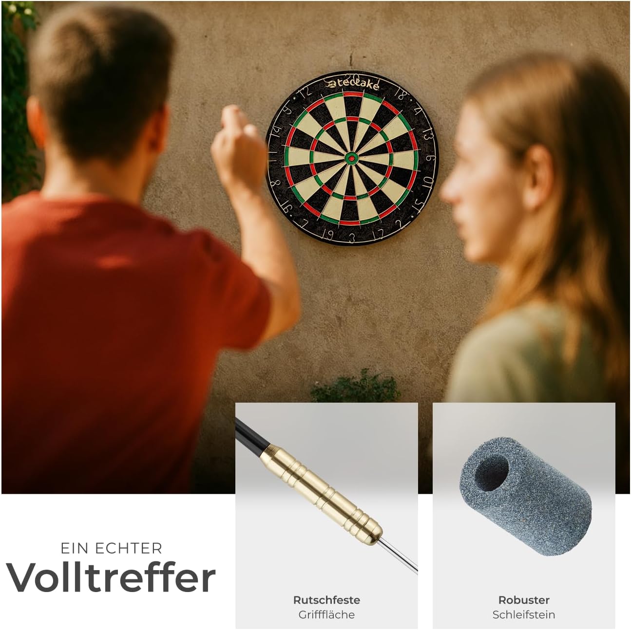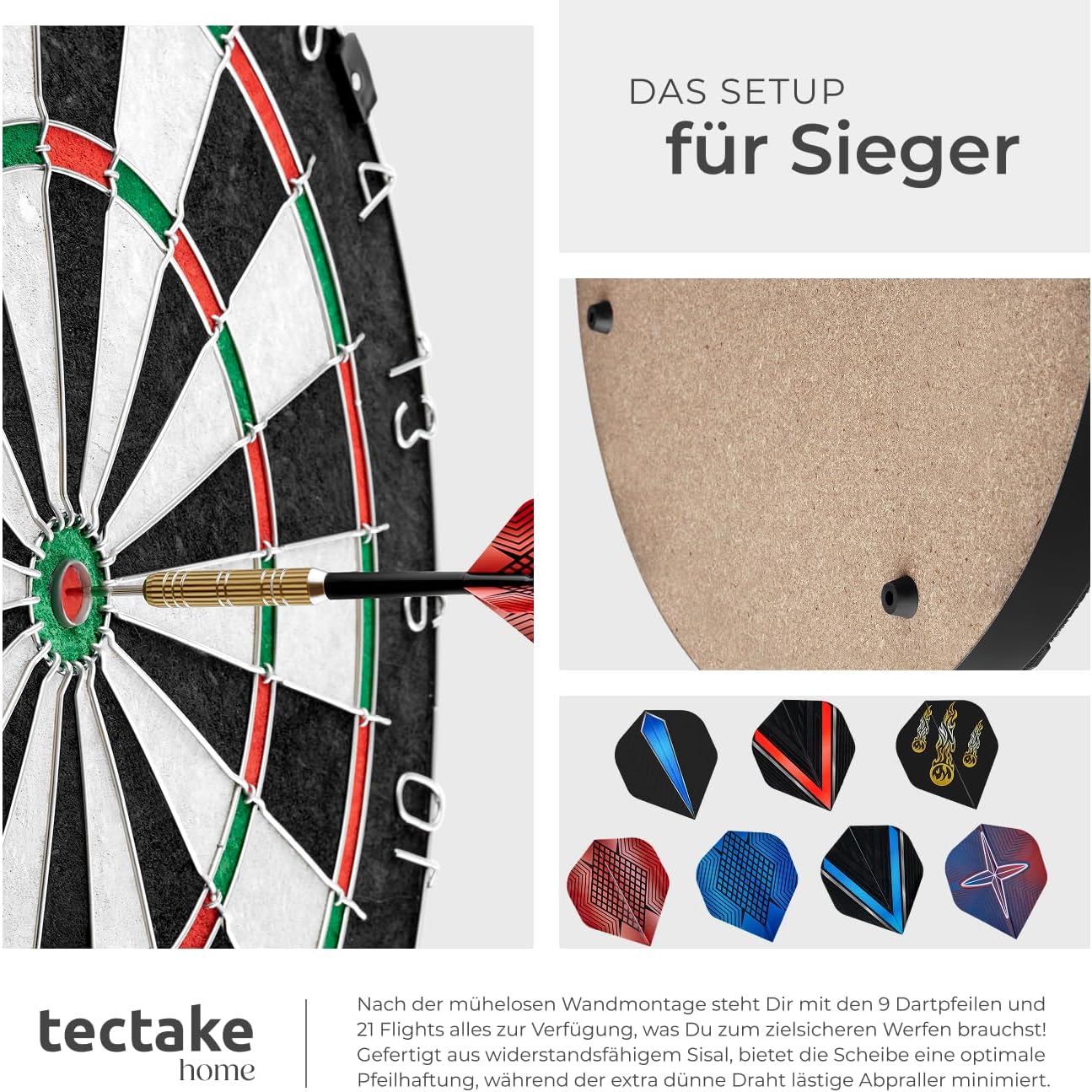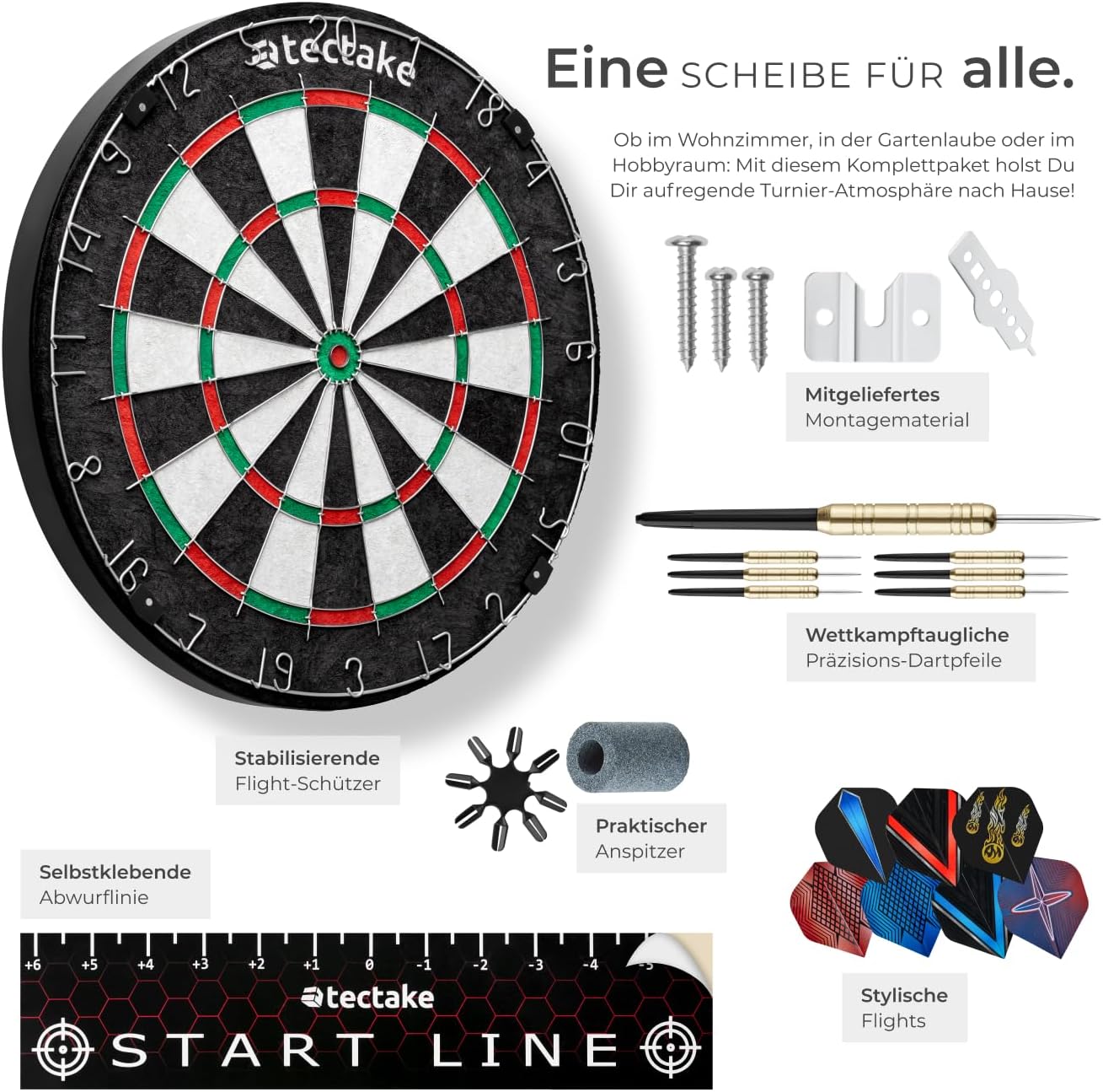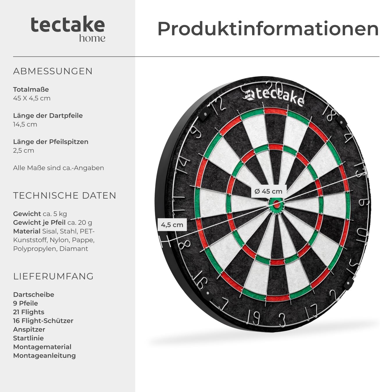 CLASSICO BERSAGLIO DA FRECCETTE PER INTERNI ED ESTERNI: Il nostro bersaglio è perfetto per l’utilizzo sia indoor che outdoor, grazie al materiale di alta qualità in sisal che garantisce una lunga durata e resistenza. L'ampio anello di cattura rende il gioco ancora più coinvolgente e preciso. Adatto come giochi adulti o come freccette bambini (sotto la supervisione di un adulto). AREA DI TIRO IN SISAL DI ALTA QUALITÀ CON FILI ULTRA SOTTILI: Realizzato con sisal di alta qualità, questo bersaglio freccette professionale offre una superficie di tiro eccezionale, resistente all'usura e facilmente autorigenerante. I fili ultra sottili assicurano una maggiore precisione nel gioco e minimizzano i danni alle freccette. 9 FRECCETTE DA COMPETIZIONE E 21 ALETTE INCLUSI: Il kit comprende 9 freccette professionali, ideali per le competizioni, e 21 alette aggiuntive per personalizzare il tuo set. Le protezioni per alette proteggono le freccette, prolungando la loro durata e garantendo una performance ottimale. ACCESSORI COMPLETI E FACILE MONTAGGIO: Incluso nel pacchetto troverai un temperino per affilare le freccette e una linea di partenza adesiva per segnare la distanza corretta. Il materiale di montaggio ti permette di montare il bersaglio in pochi minuti, senza complicazioni. PRONTO ALL'USO E IDEALE PER DIVERTIRSI IN FAMIGLIA: Questo set di freccette per il tiro al bersaglio è perfetto per tutte le età, ideale per divertirsi con la famiglia e gli amici. Facile da montare e pronto all'uso in pochi passi, è il gioco perfetto per creare momenti di svago e competizione in casa o in giardino.