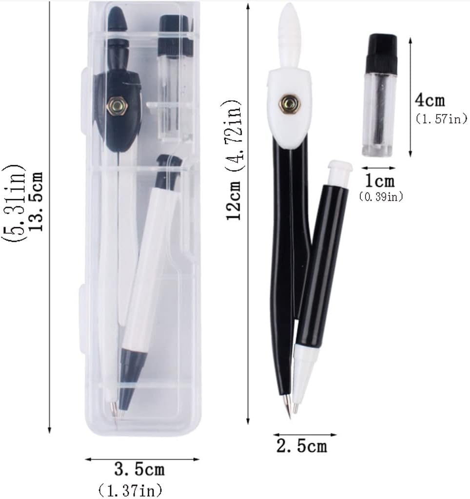 Facile da archiviare: I nostri kit di bussola sono dotati di scatole di archiviazione per conservare facilmente i tuoi prodotti per ufficio in modo da non perderli. Dimensione: 13,5 cm (5,31 pollici)*3,5 cm (1.37 pollici) Questo particolare kit di strumenti è ideale per disegnare grafici e risolvere problemi di grafica matematica. Oltre a ciò, il set di strumenti matematici può essere utilizzato per molti altri scopi. La suite matematica è adatta per insegnanti, studenti e personale e può aiutare gli studenti con tutti i progetti essenziali. Compass professionale progettato da esperti di matematica esperti per insegnanti e studenti di qualsiasi livello. Svolge un ruolo importante in matematica, ingegneria, lavorazione del legno, arte, pittura, ecc. È perfetto per insegnanti, architetti, ingegneri, matematici, artisti o designer.