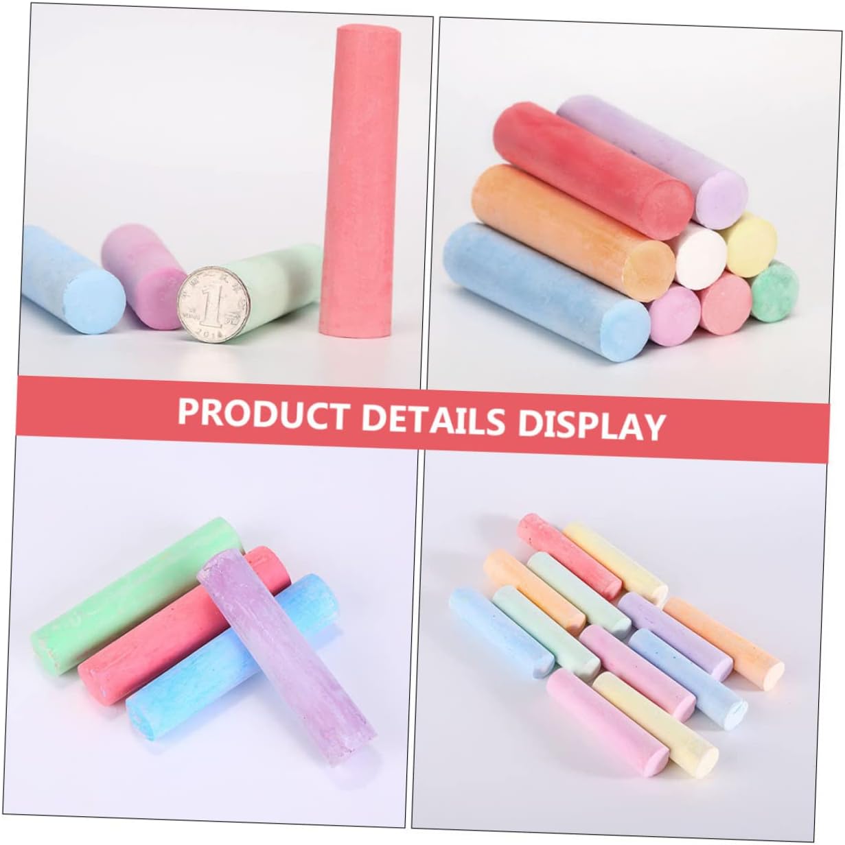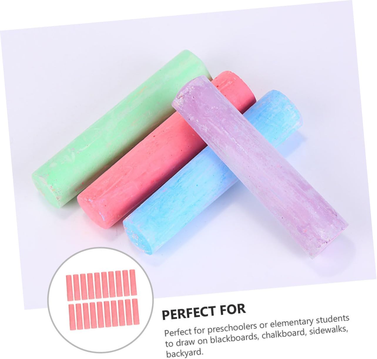 Gesso per graffiti: design chic, non facile da rompere, adatto a bambini che tengono e scrivono. Gesso per dipingere: può scrivere su , plastica, cemento, lavagne verdi e bianche. Gessetti per dipingere: ha una forma affusolata per evitare che rotolino e per una facile presa. Gessetti pratici: i bambini e gli adulti di tutte le età possono divertirsi usando il gesso sul marciapiede per giocare a campana, creare disegni artistici e divertenti o collaborare a progetti artistici scolastici. Gessetti colorati: leggeri e portatili da trasportare, colori brillanti e scrittura fluida.