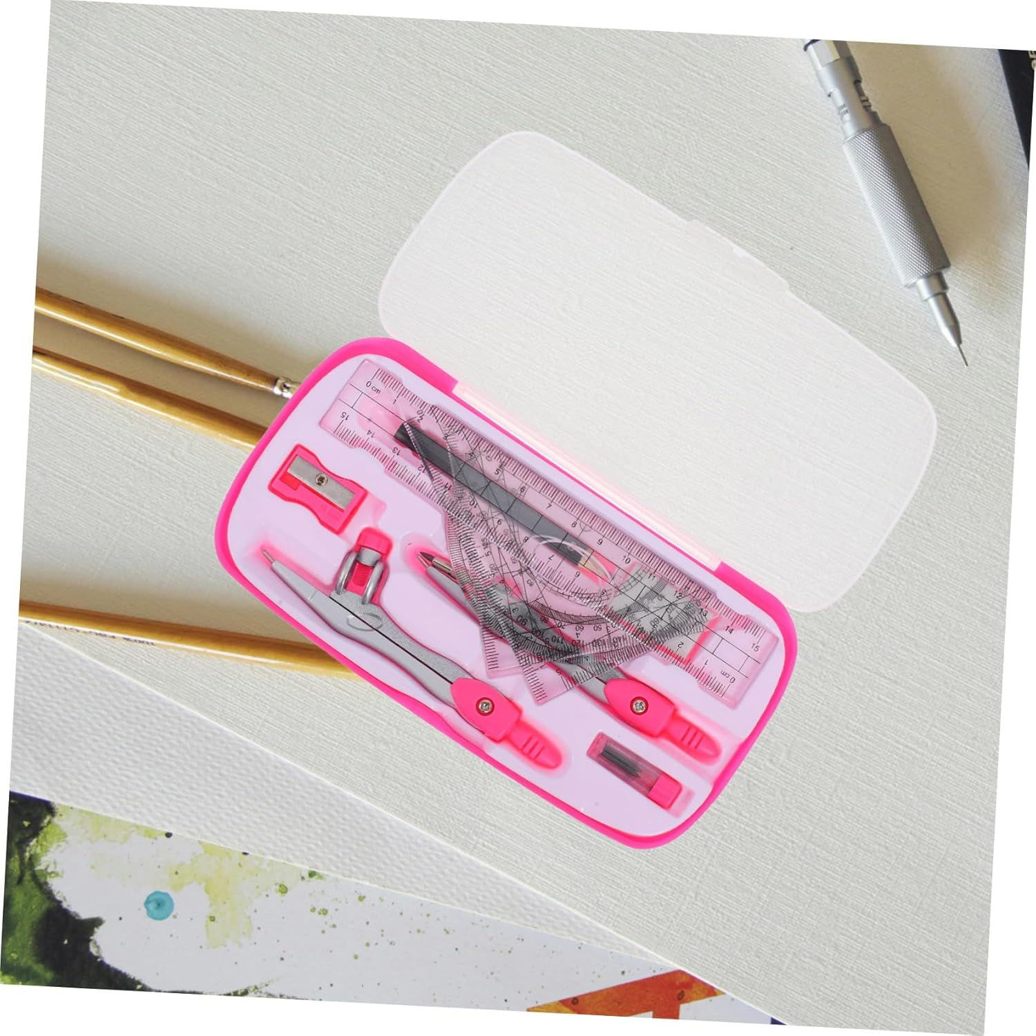 Comoda portabilità: il design compatto e leggero rende facile trasportare il set in zaino o in un astuccio, ideale per studenti, geometria, compasso matematico per geometria Compatto e portatile: il design compatto del set lo rende facile da trasportare e riporre, ideale per gli studenti che hanno bisogno di trasportare i propri strumenti tra casa e scuola, compasso per geometria, goniometro e compasso Robusto e affidabile: realizzati in plastica robusta e materiali in lega, gli strumenti sono progettati per durare e resistere a un uso frequente, righello per studenti, goniometro matematico Chiaro e preciso: il goniometro presenta marcature chiare e facili da leggere, garantendo misurazioni precise di angoli e lunghezze, set di compassi goniometrici, righelli di plastica Portatile e leggero: il design compatto rende facile trasportare e riporre il set, ideale per gli studenti che hanno bisogno di trasportare i propri strumenti, righello piccolo, strumenti di