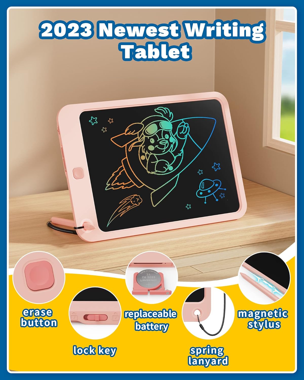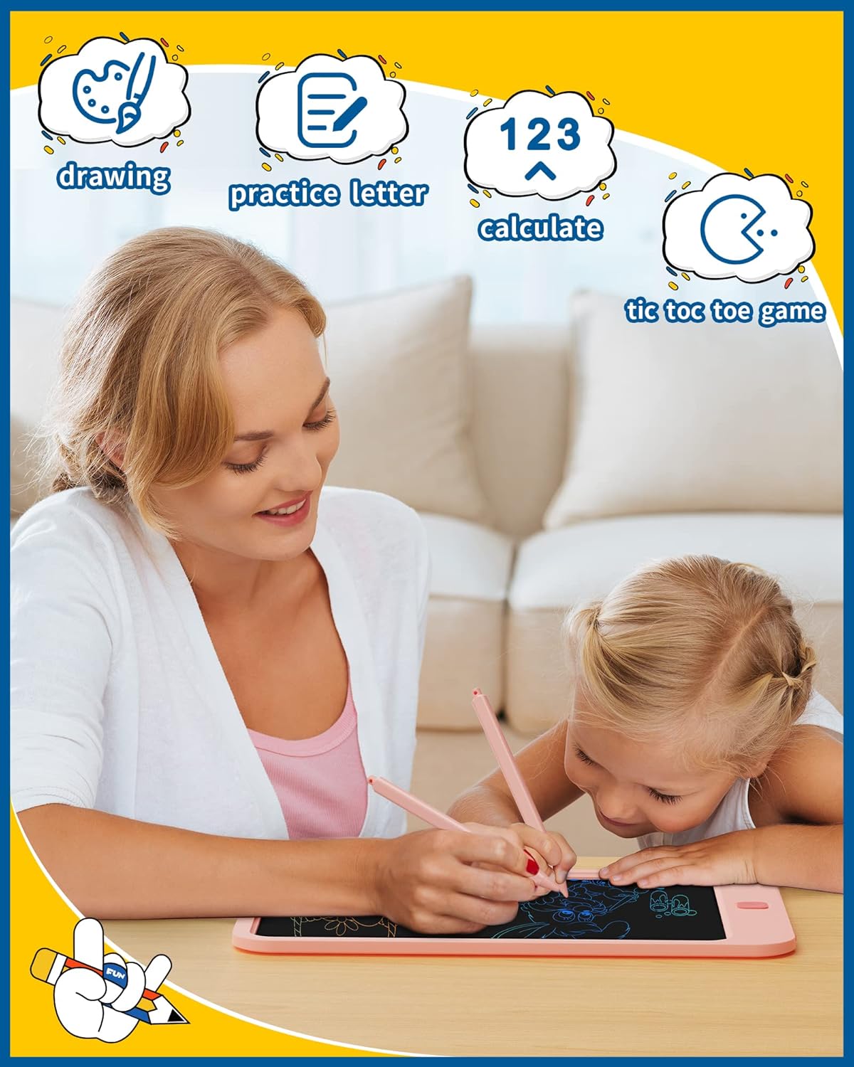 【TAVOLETTA DA SCRITTURA MULTIUSO】 La tavoletta da scrittura LCD da 10 pollici TEKFUN è realizzata in ABS, un materiale robusto e resistente alle cadute. Adotta una tecnologia altamente sensibile alla pressione e uno schermo LCD a colori morbido e liscio. Utilizzando uno stilo, puoi scrivere sul tablet LCD con la stessa facilità con cui lo fai su carta. Adatto a molteplici usi: disegnare, dipingere, scrivere, scarabocchiare, prendere appunti e persino come bacheca da scrivania sempre e ovunque. 【FACILE DA USARE - CANCELLAZIONE E BLOCCO SCHERMO CON UN CLIC】 Il pulsante di cancellazione cancella istantaneamente il contenuto dello schermo e salva il lavoro con il pulsante di blocco della tavoletta grafica per bambini che non verrà cancellato accidentalmente mentre scarabocchi. Basta usare lo stilo per scrivere, disegnare, scarabocchiare, scarabocchiare quello che vuoi! 【LO STILO NON SARÀ MAI PIÙ PERSO】Senti sempre "Non riesco a trovare la mia penna"? Tavoletta grafica LCD TEKFUN da 10 pollici con tecnologia magica sul lato destro della tavoletta e un cavo extra estensibile, lo stilo può essere riposto comodamente, così i tuoi bambini non corrono il rischio di perdere lo stilo. Dove c'è una tavoletta per scrivere, accanto c'è uno stilo! 【REGALO IDEALE PER RAGAZZI E RAGAZZE】 La tavoletta grafica TEKFUN è un fantastico giocattolo educativo per bambini. Non importa se si tratta di un compleanno, della Festa dei bambini, del Ringraziamento, di Natale, di Pasqua, del ritorno a scuola, ecc. Questo è un fantastico regalo per ragazzi e ragazze di 2, 3, 4, 5, 6 e 7 anni. È adatto a tutte le fasce d'età, anche ai neonati, ai bambini, agli adolescenti o agli adulti. 【GIOCATTOLO DI ATTIVITÀ DI VIAGGIO PORTATILE】 Superficie di scrittura da 10 pollici, design ultrasottile da 0,23 pollici, peso di soli 250 g, molto comodo da trasportare con la borsa. È ottimo per i viaggi dei bambini, i viaggi su strada, l'aereo, il ristorante, la chiesa, ecc. La lavagna può essere un giocattolo occupazionale per i bambini per sbarazzarsi della noia durante un lungo viaggio.