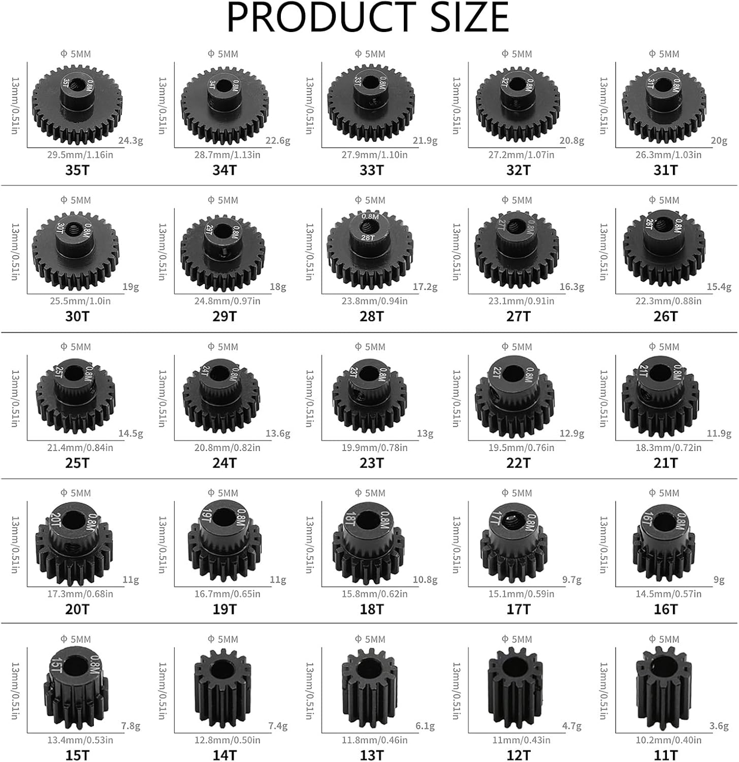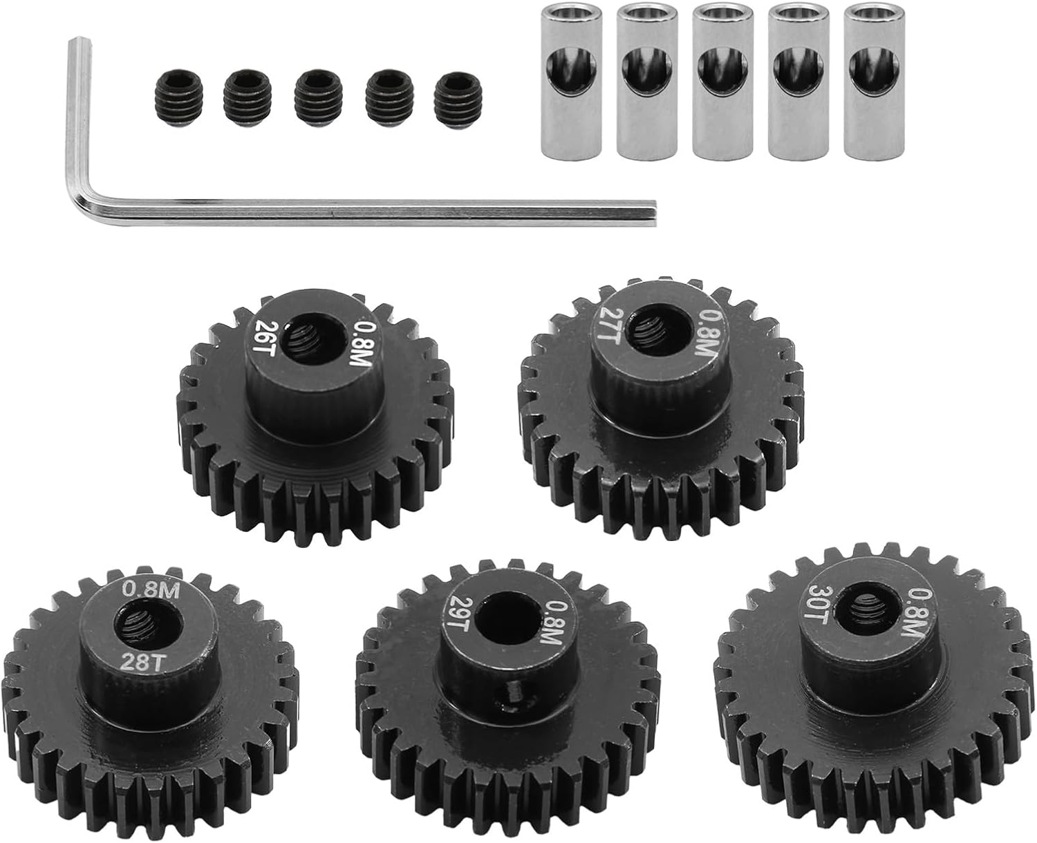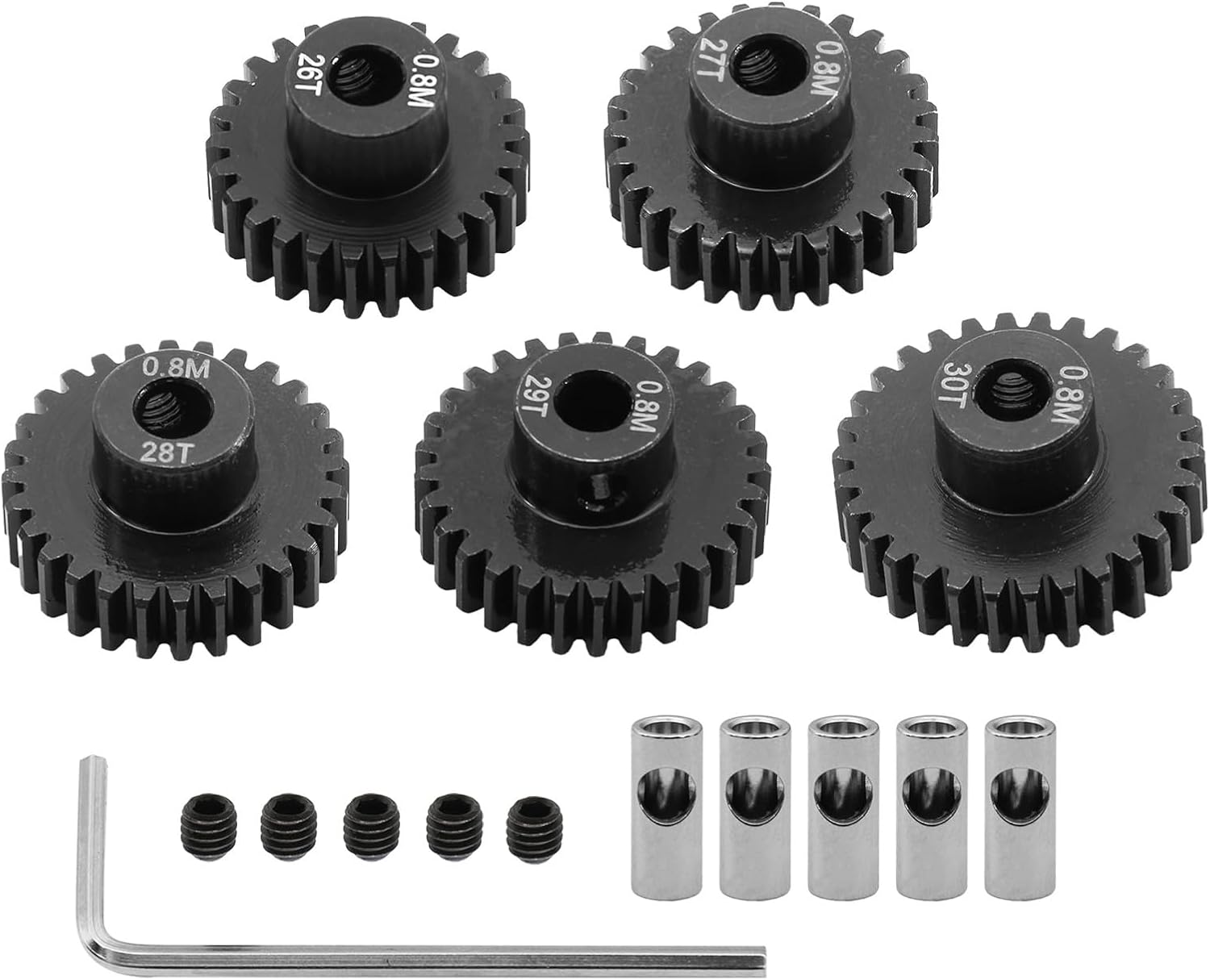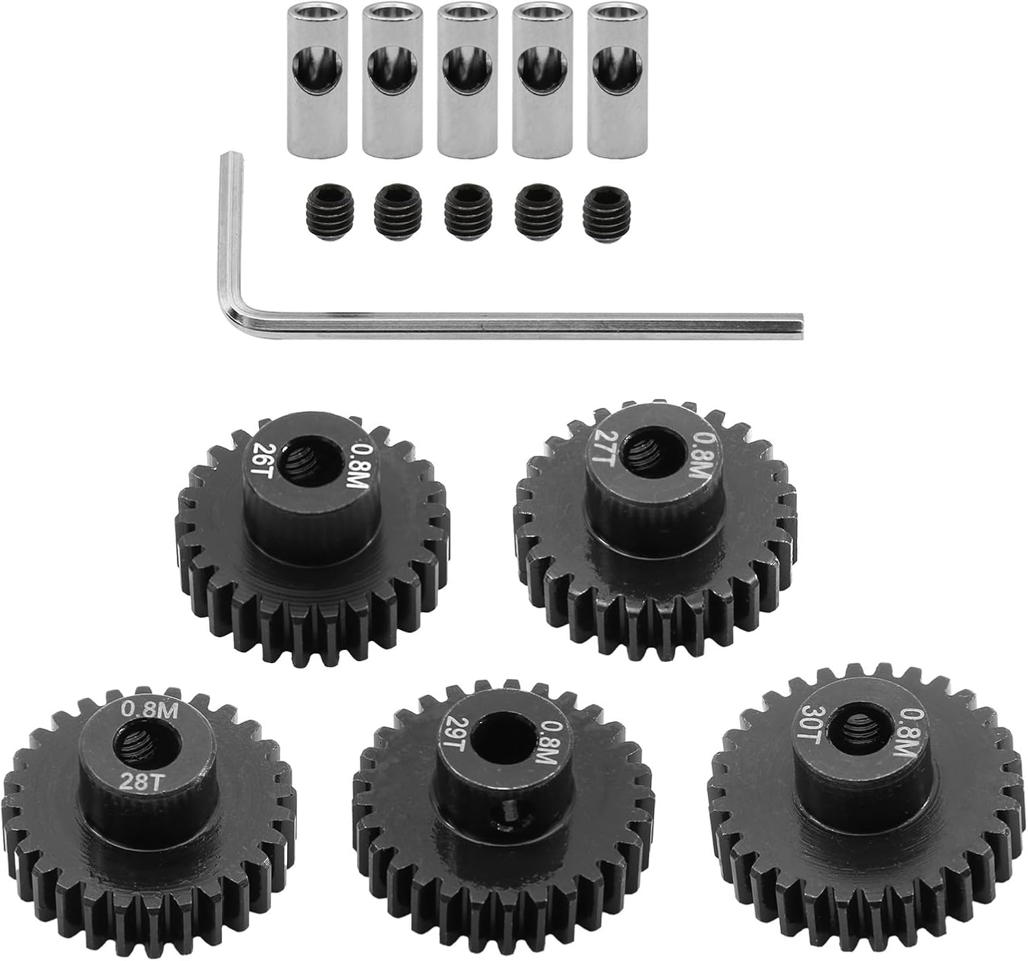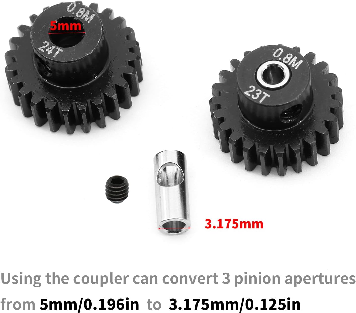 Offriamo diversi tipi di ingranaggi con diversi numeri di denti in modo da avere più scelte nella traduzione. Trasforma la tua avventura telecomandata con ingranaggi di precisione che promettono la longevità necessaria per le competizioni o i giochi ricreativi. Si adatta all'aggiornamento e alla conversione di veicoli telecomandati Con la frizione, 3 aperture del pignone possono essere convertite da 5 mm/0,196 pollici a 3,175 mm/0,125 pollici. Ingranaggi interni interamente in metallo ad alta resistenza e lunga durata.