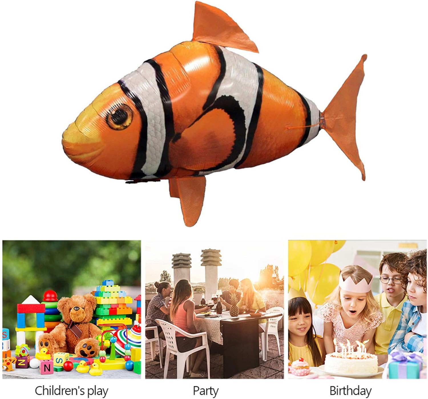 Il giocattolo telecomandato è ideale per il divertimento in famiglia all'interno. Si muove liberamente su e giù e può essere distante fino a 40 piedi Il corpo è realizzato in materiale di nylon di e resistente che rimane gonfio per due settimane È possibile riempirlo con elio più volte. Per il funzionamento del giocattolo è necessaria una batteria AAA (non inclusa) Un grande giocattolo per ufficio, famiglia, festa di compleanno, matrimonio, gioco al chiuso È carino, attraente e ti porta molto divertimento. Dovresti assemblarlo da solo.