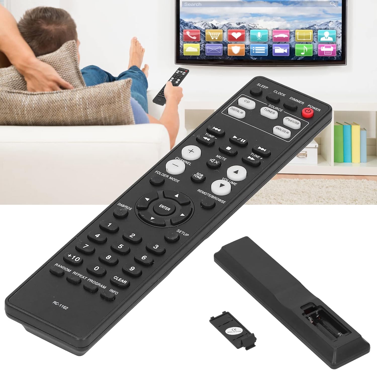 Design ergonomico : Il telecomando RC-1162 Big Button TV è progettato pensando al comfort 'utente. La sua struttura compatta e leggera semplifica la presa e la tenuta, offrendo un'esperienza di visione confortevole tutti in famiglia. Che tu stia guardando il tuo programma preferito o navigando attraverso i , questo telecomando è utenti perfetti di tutte le età. Compatibilità : Questo innovativo telecomando sostitutivo è adatto a vari marchi di TV LCD. Con i principali marchi televisivi senza soluzione di continuità, puoi facilmente da un canale all'altro senza problemi. Semplicemente che il tuo remoto originale corrisponde a quello visualizzato nella e goditi un'esperienza di visualizzazione ininterrotta con una configurazione minima richiesta. Materiale : Costruito con materiale ABS di alta qualità, il telecomando RC-1162 è resistente all'usura e notevolmente. Progettato per resistere all'uso, promette la longevità mantenendo le sue prestazioni. Dì addio ai telecomandi fragili e inaffidabili e goditi la certezza che la tua sostituzione resisterà alla prova del tempo. Soluzione di sostituzione ideale : Perduto o danneggiato il telecomando originale? funge da sostituzione perfetta, permettendoti di recuperare il pieno controllo della tua televisione. È progettato per rendere semplice ed efficace l'accesso remoto, assicurandoti di poter gestire facilmente la tua esperienza di visualizzazione e goderti i tuoi programmi preferiti senza interruzioni. Easy Setup : Con un design semplice che non richiede una programmazione complicata, viene utilizzato subito. Inserisci semplicemente 2 batterie X (non incluse) e sei a posto. Perfetti sia gli utenti esperti di tecnologia che quelli che hanno meno familiarità con la tecnologia, questo telecomando è un accessorio indispensabile la tua configurazione di intrattenimento domestico.