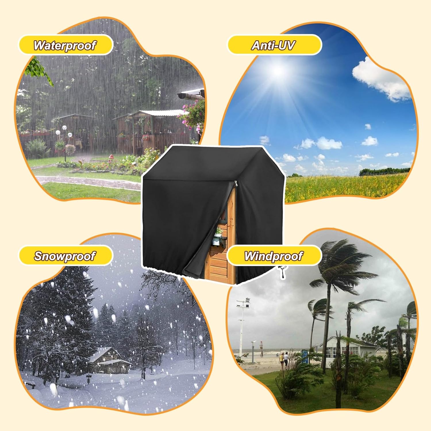 【Resistenza Affidabile alle Intemperie】Il Teli da Gioco per Bambini da Esterno è realizzato in robusto tessuto Oxford 210D/420D/600D, offrendo una protezione superiore impermeabile, antivento e resistente ai raggi UV per mantenere la casa da gioco del tuo bambino al sicuro dalle condizioni climatiche avverse. 【Varietà di Taglie Disponibili】Questa Copertura Pieghevole Impermeabile e Antisole è disponibile in due comode dimensioni (110x120x140 cm o 145x145x160 cm), permettendoti di scegliere la misura ideale per la casetta dei tuoi bambini. Assicurati di verificare le dimensioni specifiche prima di effettuare l'acquisto. 【Bloccaggio Sicuro contro il Vento】Dotato di coulisse regolabile, questa soluzione di protezione resistente garantisce una calzata aderente anche in condizioni di vento. La cerniera laterale permette un'installazione e una rimozione rapide e facili, rendendola user-friendly per i genitori. 【Soluzione di Stoccaggio Conveniente】Leggero e pieghevole, questo Tettoia per Bambini da Esterno può essere facilmente riposto quando non in uso, aiutandoti a mantenere il tuo spazio all'aperto organizzato e senza ingombri. 【Protezione Completa in Ogni Condizione Meteorologica】Proteggi la casetta dei tuoi bambini da pioggia, neve, sole intenso e polvere con questa copertura essenziale. La Copertura Pieghevole Impermeabile e Antisole garantisce che i tuoi giochi all'aperto rimangano in ottime condizioni tutto l'anno per un divertimento senza fine.