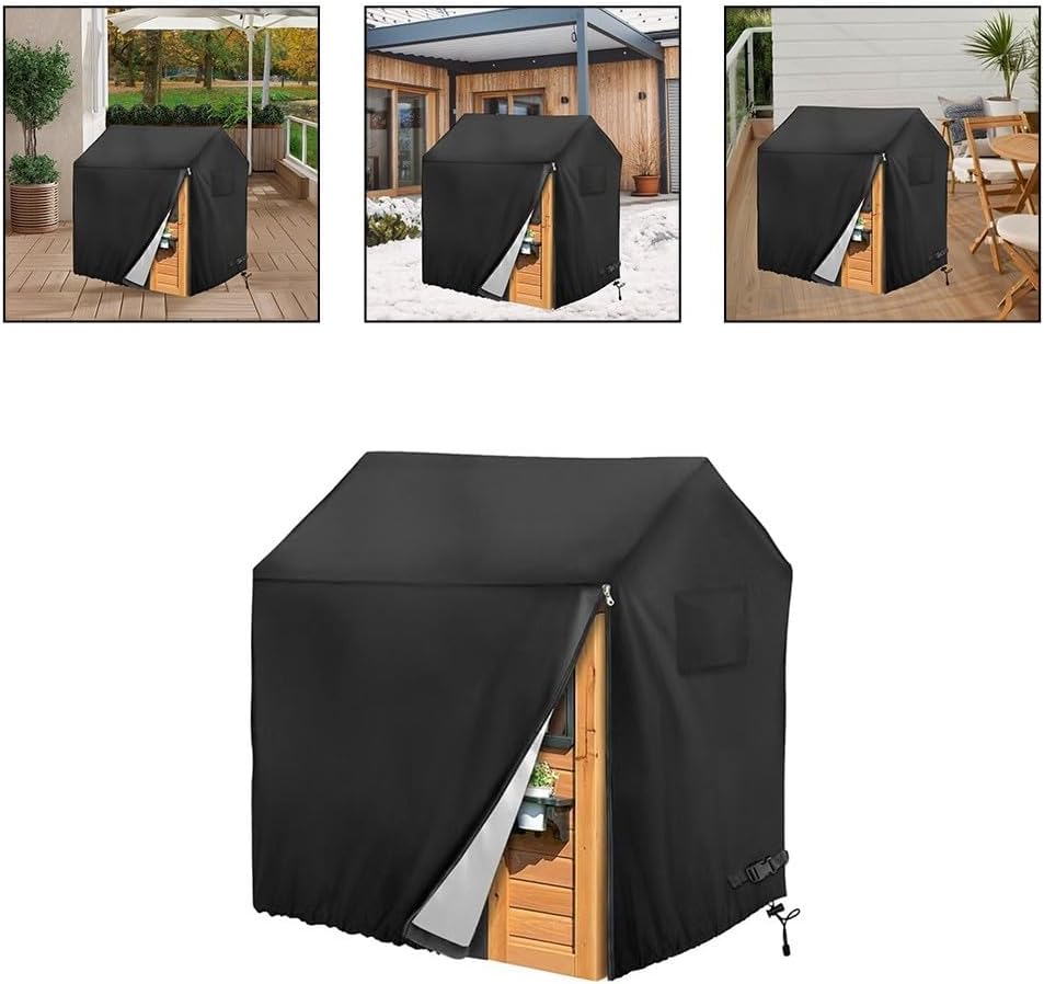 [Protezione] Realizzato in robusto tessuto Oxford 210D, questa copertura assicura che la casetta del bambino sia protetta da acqua, vento e dannosi raggi UV e la mantiene sicura e intatta tutto l'anno. [Due opzioni di dimensione] Disponibile in due misure (110 x 120 x 140 cm e 145 x 145 x 160 cm). Questa copertura offre spazio per diverse dimensioni di casetta. Assicurati di controllare la tua taglia specifica prima dell'acquisto. Design antivento sicuro: con coulisse regolabile nella parte inferiore per una buona vestibilità e una comoda cerniera laterale per una facile installazione e rimozione. Questa copertura rimane saldamente in posizione anche nei giorni di tempesta. [Facile da riporre e trasportare] Leggero e pieghevole, questa copertura non è solo pratica per l'uso quotidiano, ma anche facile da riporre quando non è necessaria, assicura che il tuo spazio esterno rimanga ordinato e protetto.