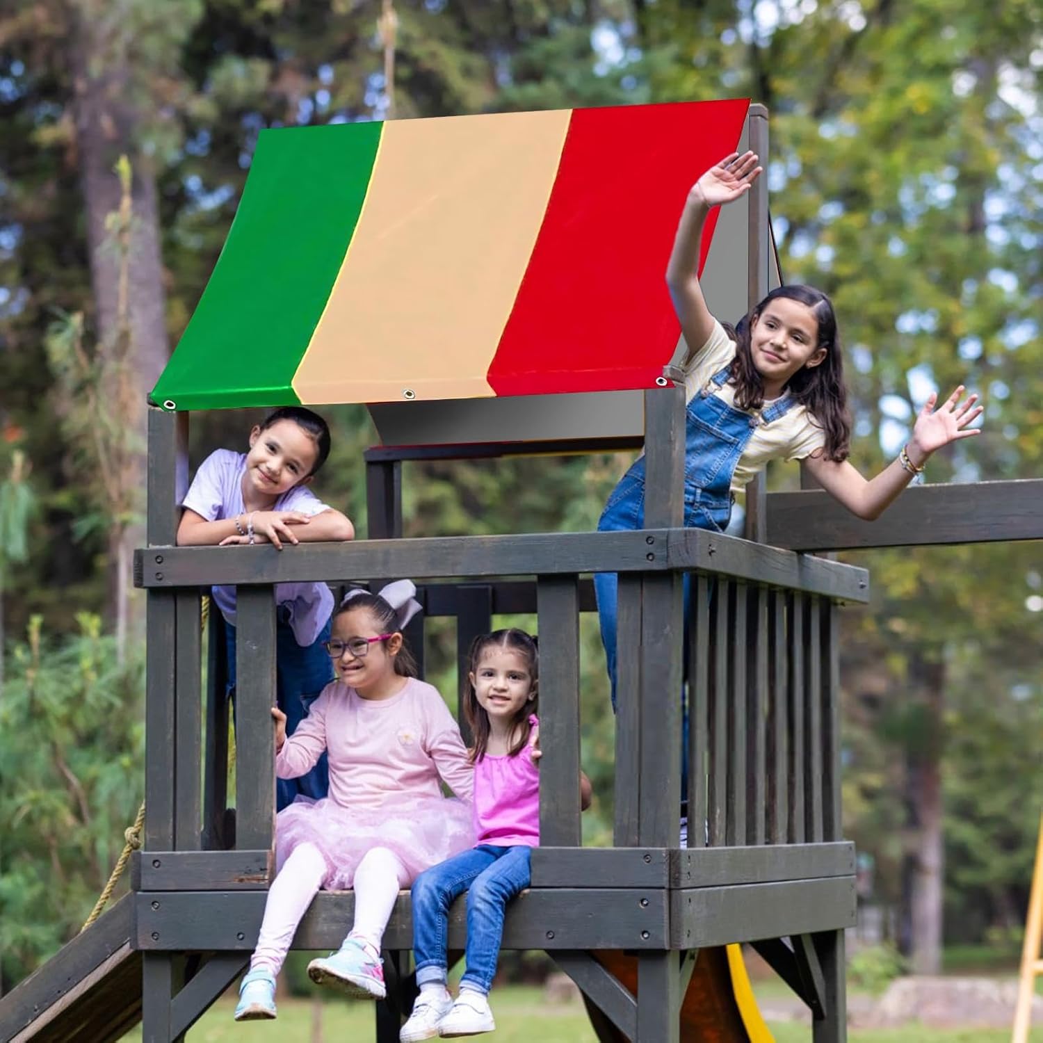 Ultimo prodotto: combattendo l'erosione degli agenti atmosferici attraverso l'ingegneria di precisione, questa tettoia utilizza tessuto e hardware in metallo zincato per una perfetta resistenza al vento/pioggia Design resistente alle intemperie per tutte le stagioni: il rivestimento in tessuto multifunzionale consente una tripla difesa: la neve scivola dalle guarnizioni invernali, le foglie volano via dalle coperture autunnali e gli strati riflettenti UV riducono l'accumulo di calore. La struttura impermeabile soddisfa gli standard di protezione dalla pioggia, mentre i bordi antipolvere mantengono la pulizia. Colori vivaci: migliora il tuo spazio esterno con una tettoia per parco giochi che combina scelte di colori popolari e flessibilità attiva. Lo schema multicolore migliora la coordinazione visiva tra i paesaggi e si adatta facilmente a temi rustici, tropicali o contemporanei. Installazione che fa risparmiare tempo: gli animali metallici in acciaio lungo i bordi della tettoia consentono un'installazione rapida tramite viti o corde. Il design speciale tiene conto delle diverse preferenze di installazione e riduce della metà i tempi di installazione rispetto alle coperture standard. Molte applicazioni: ottimizza la sicurezza dell'area gioco sostituendo le tettoie deteriorate su altalene, casette, panchine e attrezzature multifunzionali. Questa copertura costituisce una difesa dal sole e dalla pioggia con tessuto antistrappo certificato.