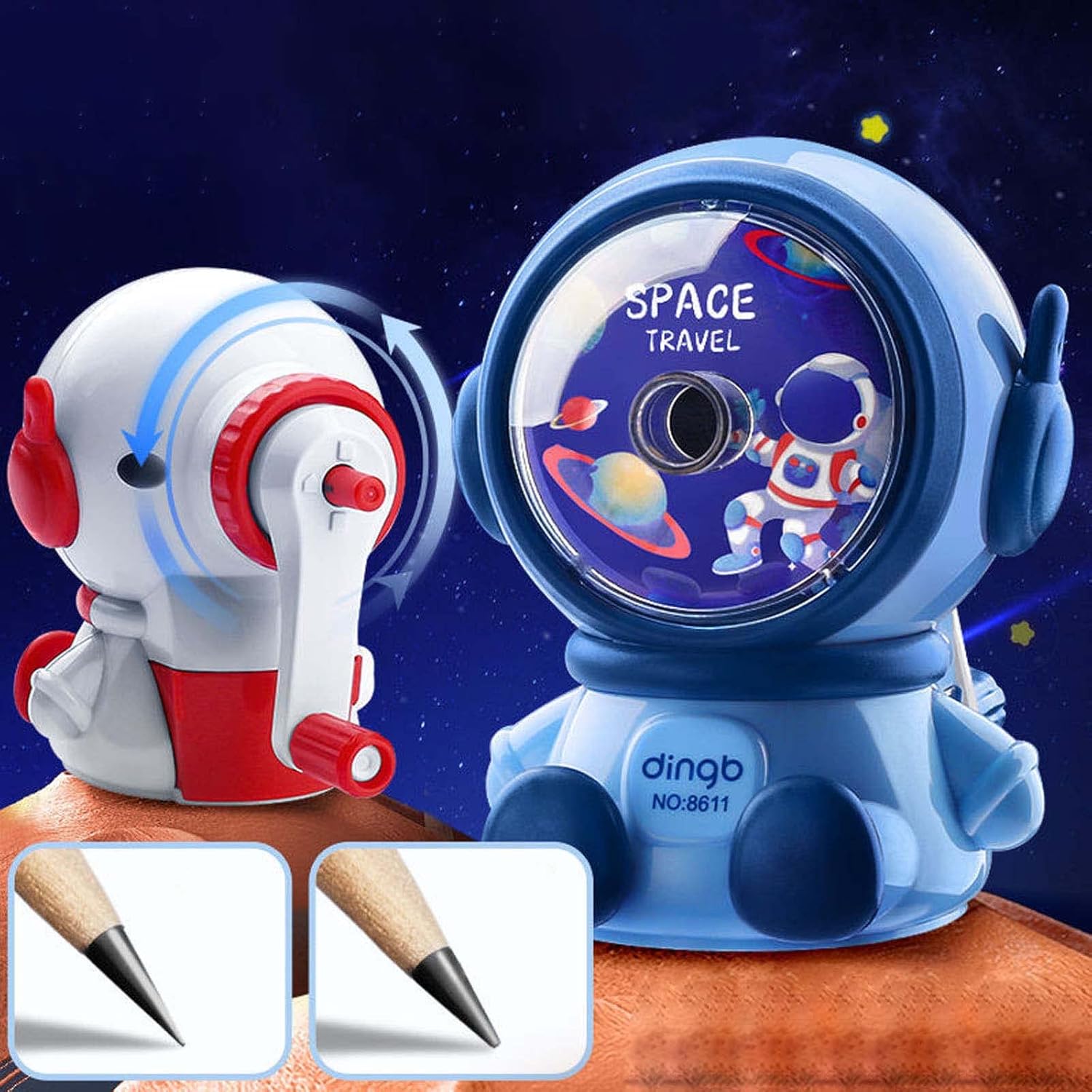 Ideale per ragazze, ragazzi, studenti, bambini, artisti, designer, impiegati d'ufficio, premi di classe, Natale, Capodanno, forniture per feste di compleanno, omaggi all'aperto, Adatto per: Molto adatto per il diametro di matite in legno entro 6,5 mm-8 mm. Tutti i trucioli saranno catturati nella scatola da barba, facile da pulire. Compatto e leggero, dimensioni adeguate per la scrivania di studio, borsa per la scuola, zaino, molto adatto per studenti, insegnanti, artisti e personale d'ufficio. Temperamatite a forma di cartone animato. Il temperamatite manuale è dotato di un acciaio al carbonio a forma di spirale antiruggine e può affilare fino a più di mille volte. ABS inodore, sicuro e Facile da affilare. Design senza sforzo, facile da affilare vari tipi di matite, come esagonali, triangolari, rotonde, disponibili per la maggior parte delle matite in legno, tra cui 2B, carbone morbido, carbone duro, matite colorate, matite da trucco, matite da disegno e molto altro ancora. Design intelligente. cuscinetti sul fondo. Grande capacità di affilatura raccolta scarti per custodia. Matita di alimentazione automatica. Spessore del pennino regolabile. Premere il pulsante rosso per estrarre la matita quando il pennino è bloccato.