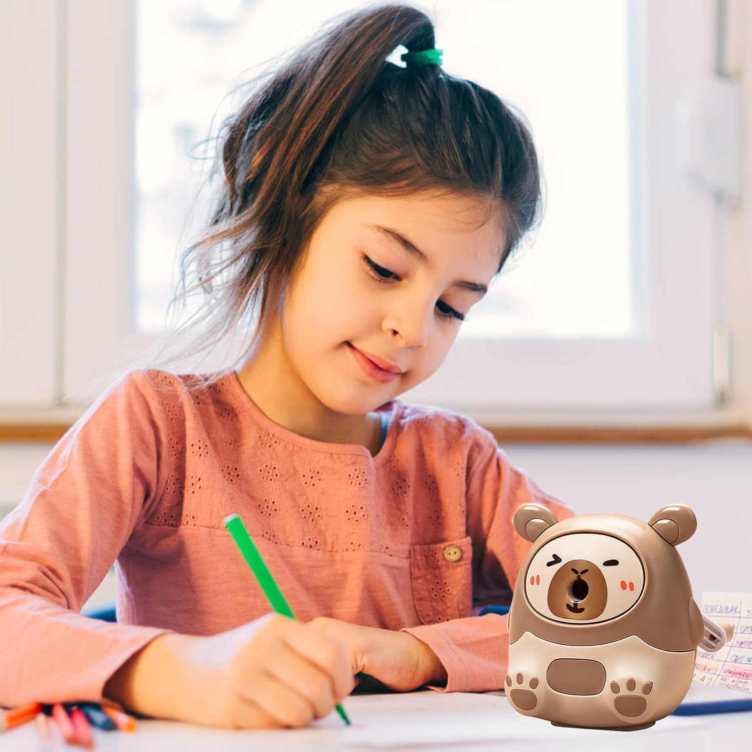 4. Caricamento Automatico: La funzione auto-feed gestisce con facilità matite da 6-8mm, minimizzando lo sforzo durante l'uso. Il tagliente in lega rimovibile garantisce un'affilatura efficace per una lunga durata del temperamatite, ideale per un utilizzo quotidiano. Stabilità Migliorata: I gommini morbidi sul fondo assicurano funzionamento fluido e stabile, offrendo massima sicurezza durante l'affilatura per una presa comoda e controllata Pulizia facile: Dotato di un meccanismo antiversamento sicuro e un ampio cassetto per i trucioli, questo temperamatite semplifica la pulizia, aiutando i bambini a mantenere un ambiente ordinato con minimo impegno Materiale resistente: Grazie alla composizione in ABS, questo temperamatite assicura una lunga durata con proprietà antiurto e robustezza, fornendo strumento solido per le esigenze quotidiane di temperatura delle matite dei bambini Scelta carina e funzionale: Affilamatite dalla forma simpatica di carpincho, ideale per studenti che cercano un accessorio utile ma anche divertente per rendere lo studio e il lavoro più piacevoli