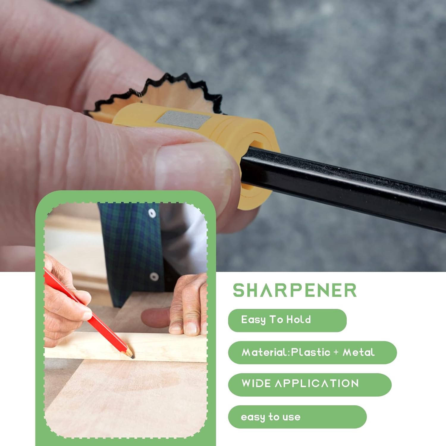 [4 CONFEZIONE] - La confezione include 4 temperamatite portatili con foro singolo per matite piatte, con dimensioni 55 mm x 28 mm / 2,16 pollici x 1,1 pollici [ALTA QUALITÀ] - Affilacoltelli da carpentiere realizzati in plastica di alta qualità + metallo, leggeri, impermeabili, antiruggine, indeformabili per una maggiore durata [FACILE DA USARE] - Temperamatite piccolo compatto e si adatta perfettamente alla mano, facile da impugnare e abbastanza affilato da puntare una matita, affila delicatamente Riduce la rottura del [AMPIA APPLICAZIONE] - Questo temperamatite per falegnameria è adatto per matite resistenti ed è adatto per ingegneri, falegnami, studenti, costruttori, commercianti, manager ecc. [IMPEGNO PER L'ECCELLENZA] - Temperamatite resistente progettato per una facile affilatura di matite da carpentiere rettangolari e affila matite con precisione.